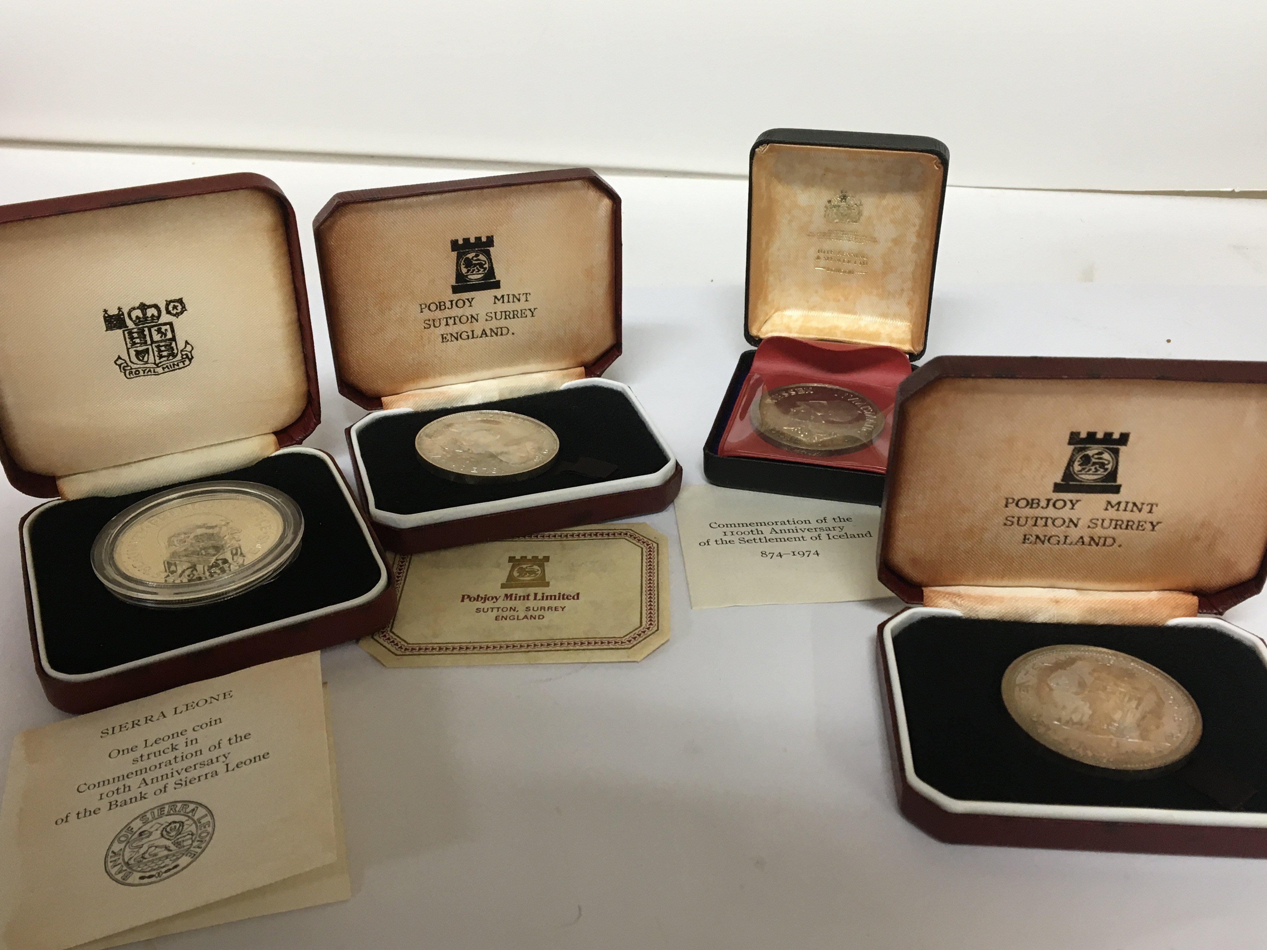 Four silver commemorative coins two centenary of the Horse Tram wessex Nvmismatic Society and Bank of Sierra Leon 1964-74 (4)