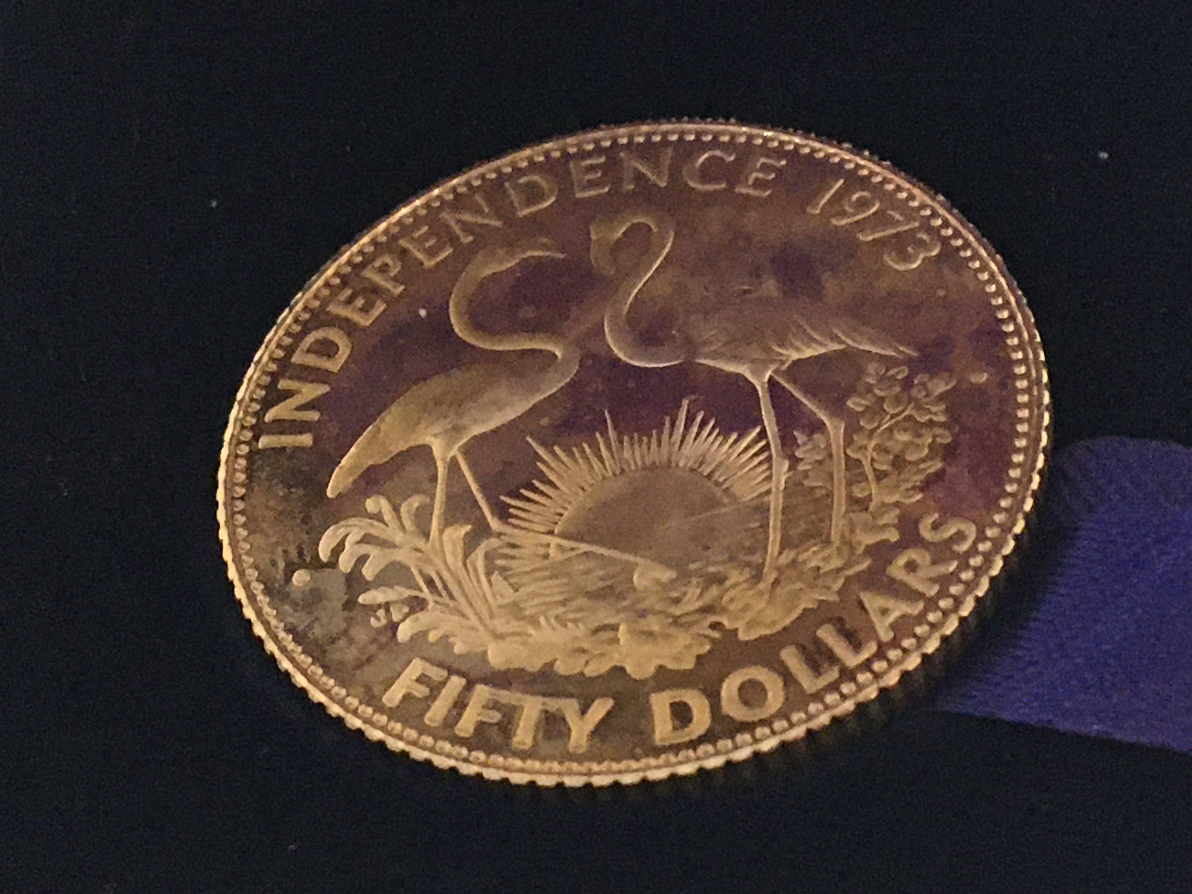 A 12carat gold fifty dollar coin the 1973 Independence of the Bahamas.