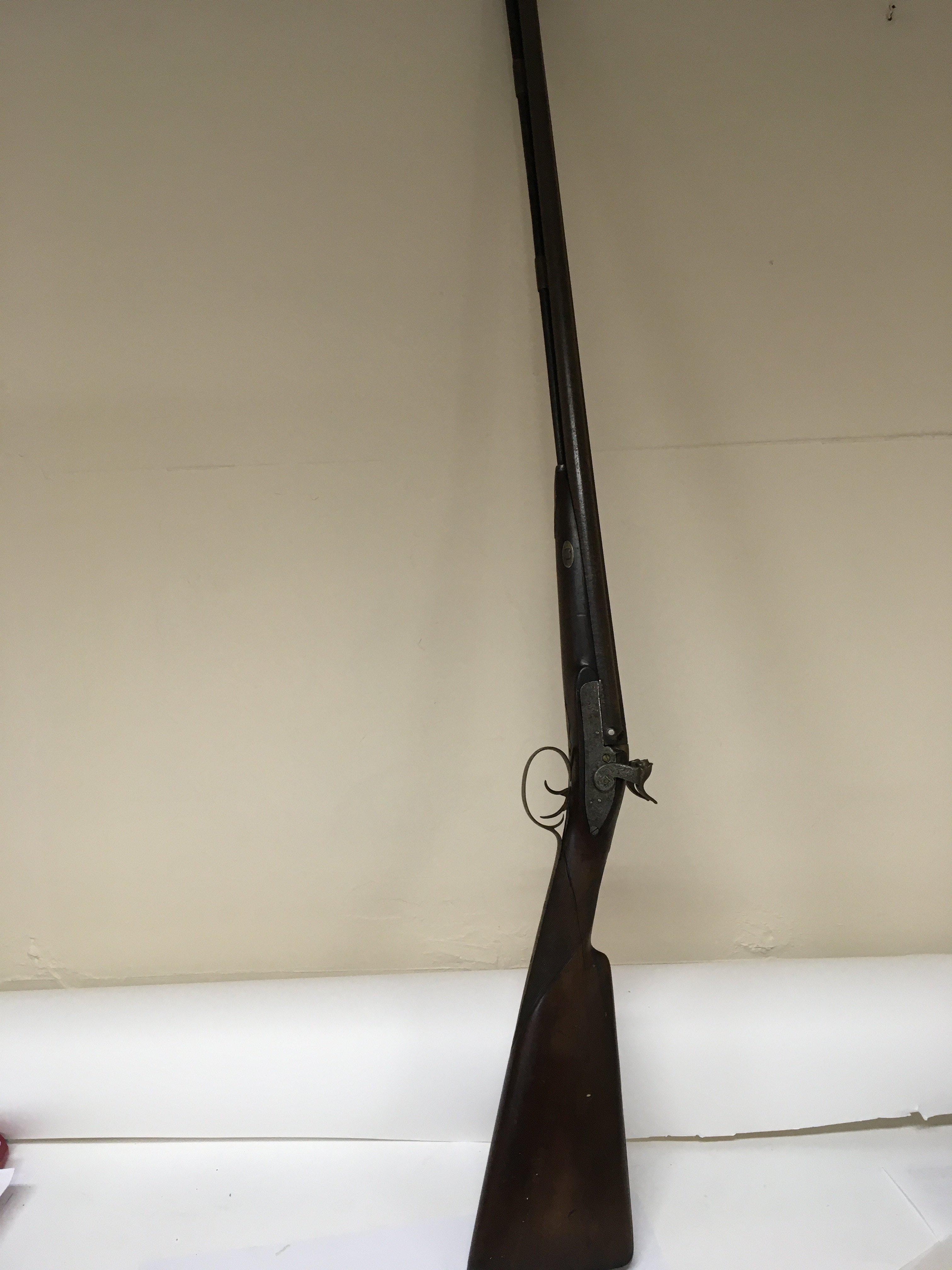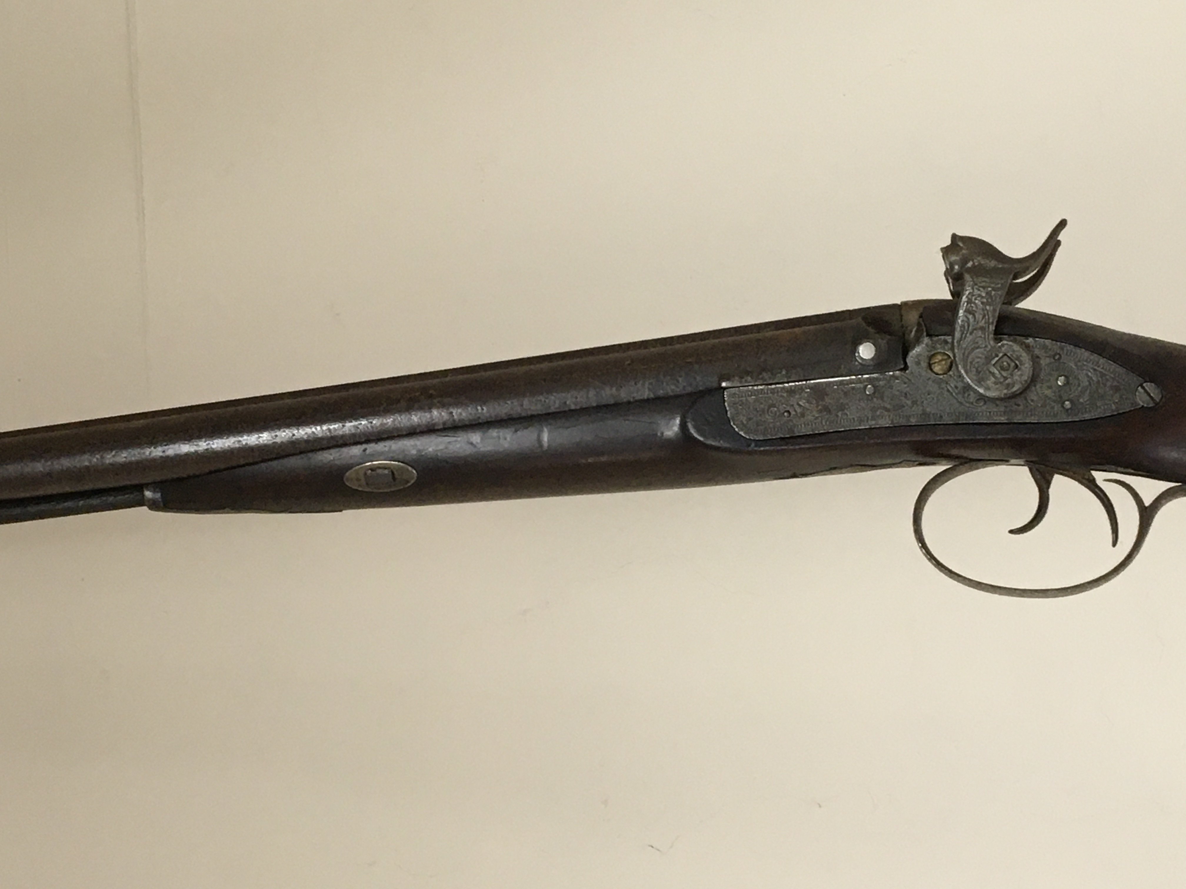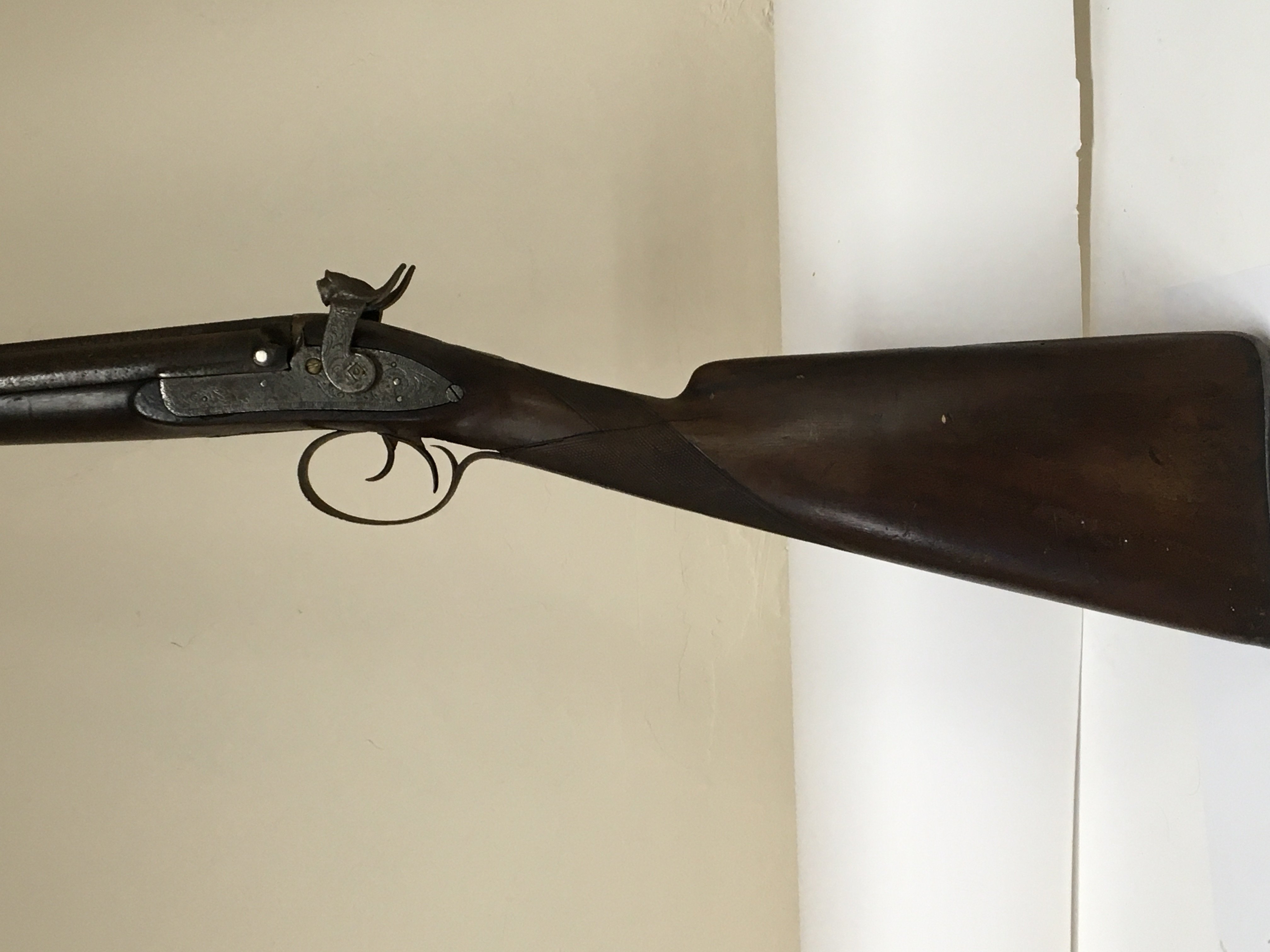 An Antique muzzle load Percussion double barrel sporting gun no license required.