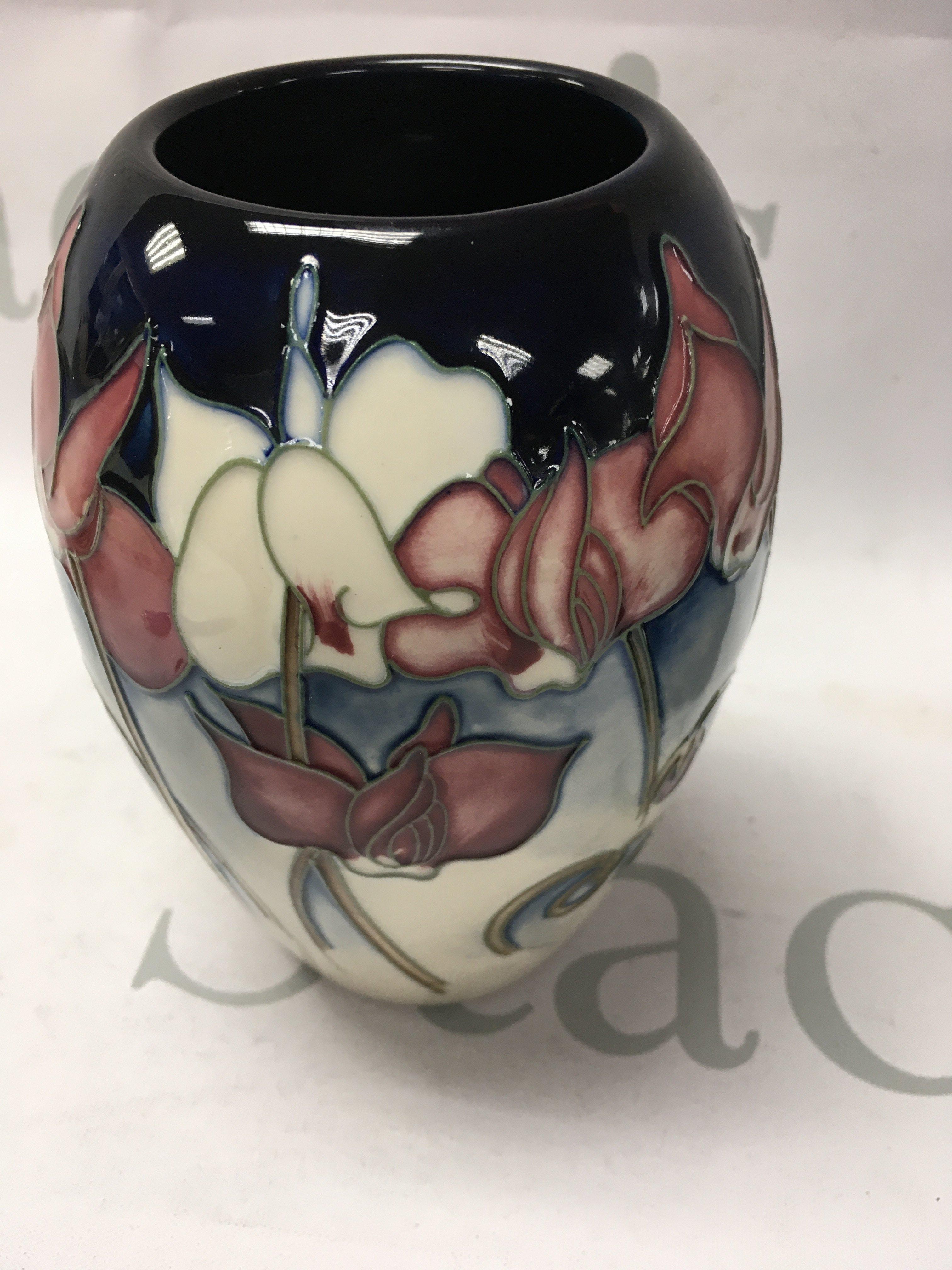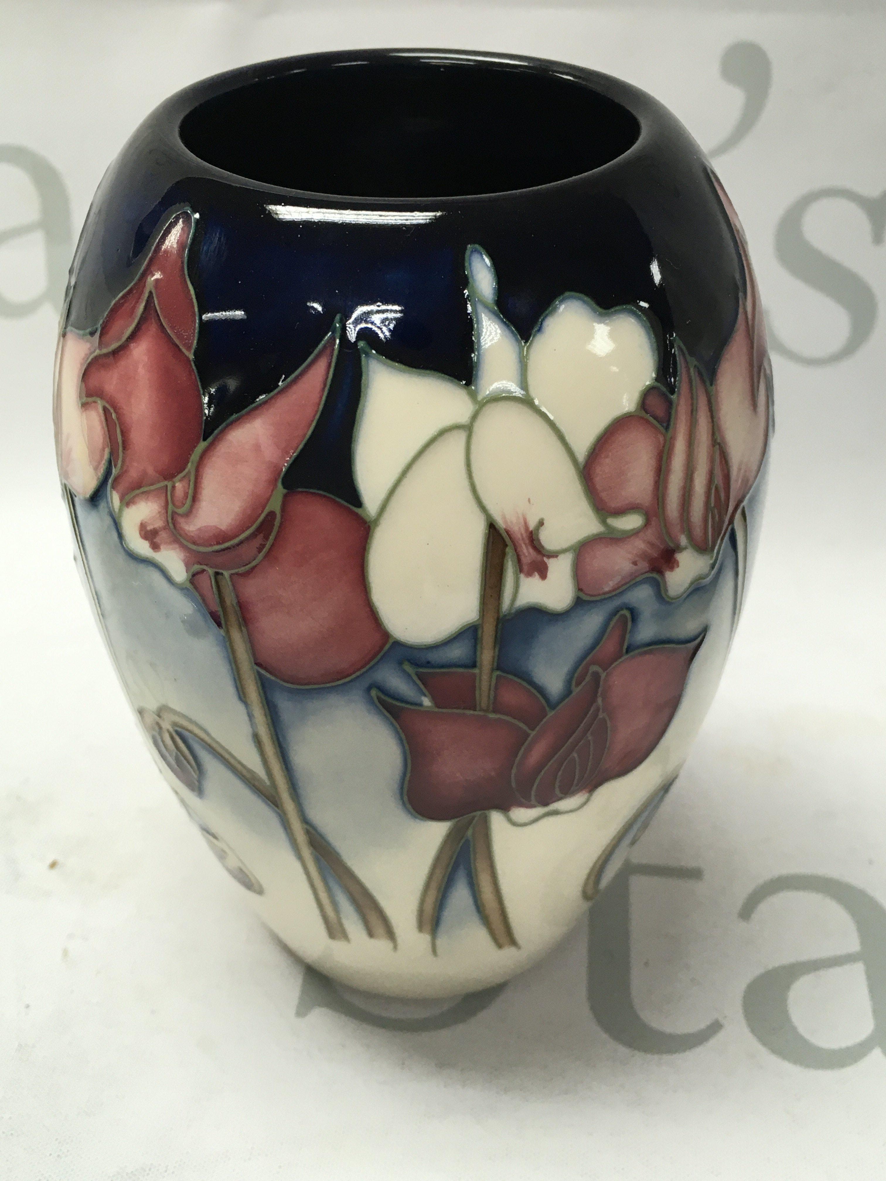 A Moorcroft wild cyclamen pattern vase 14 cm