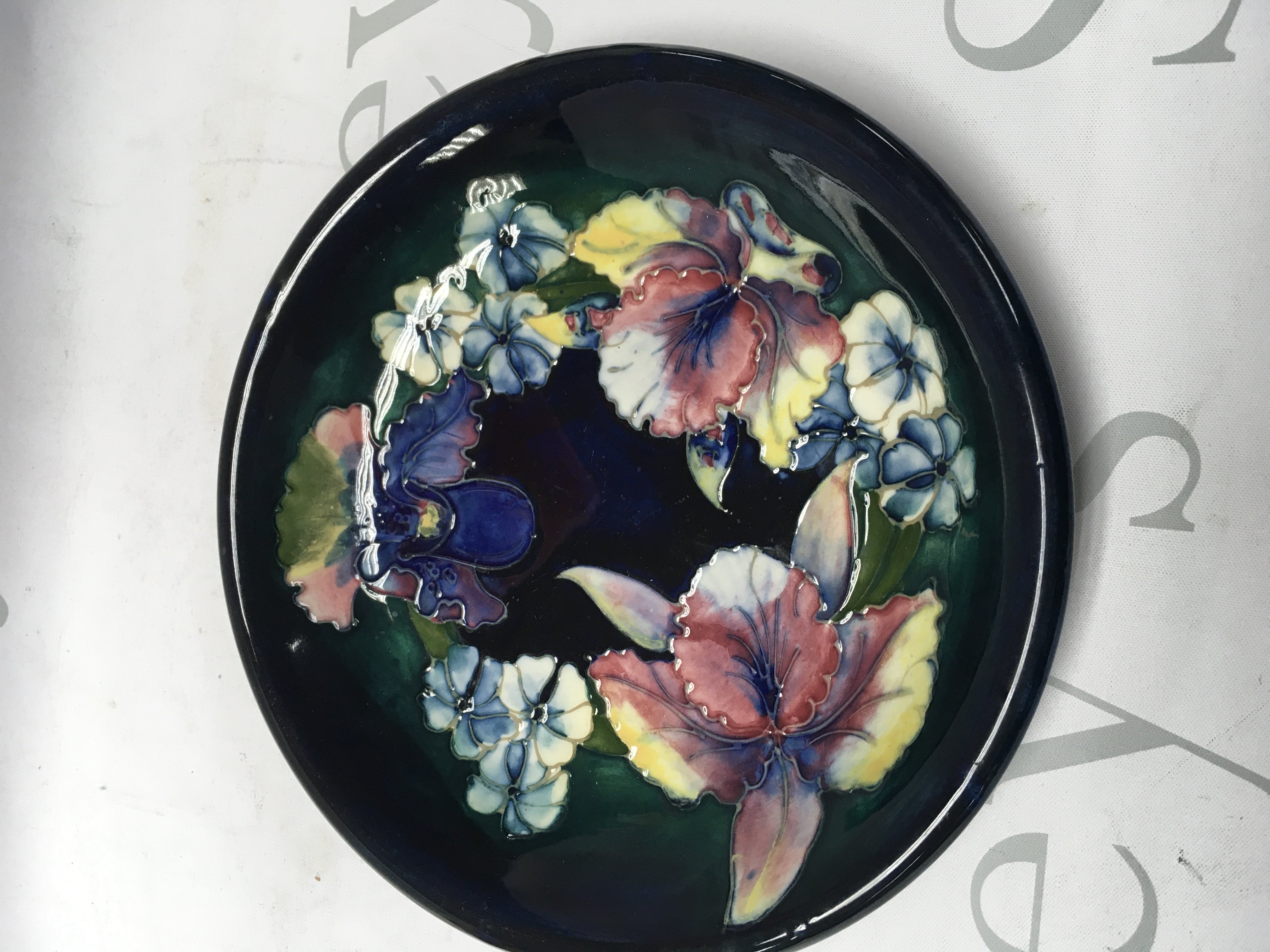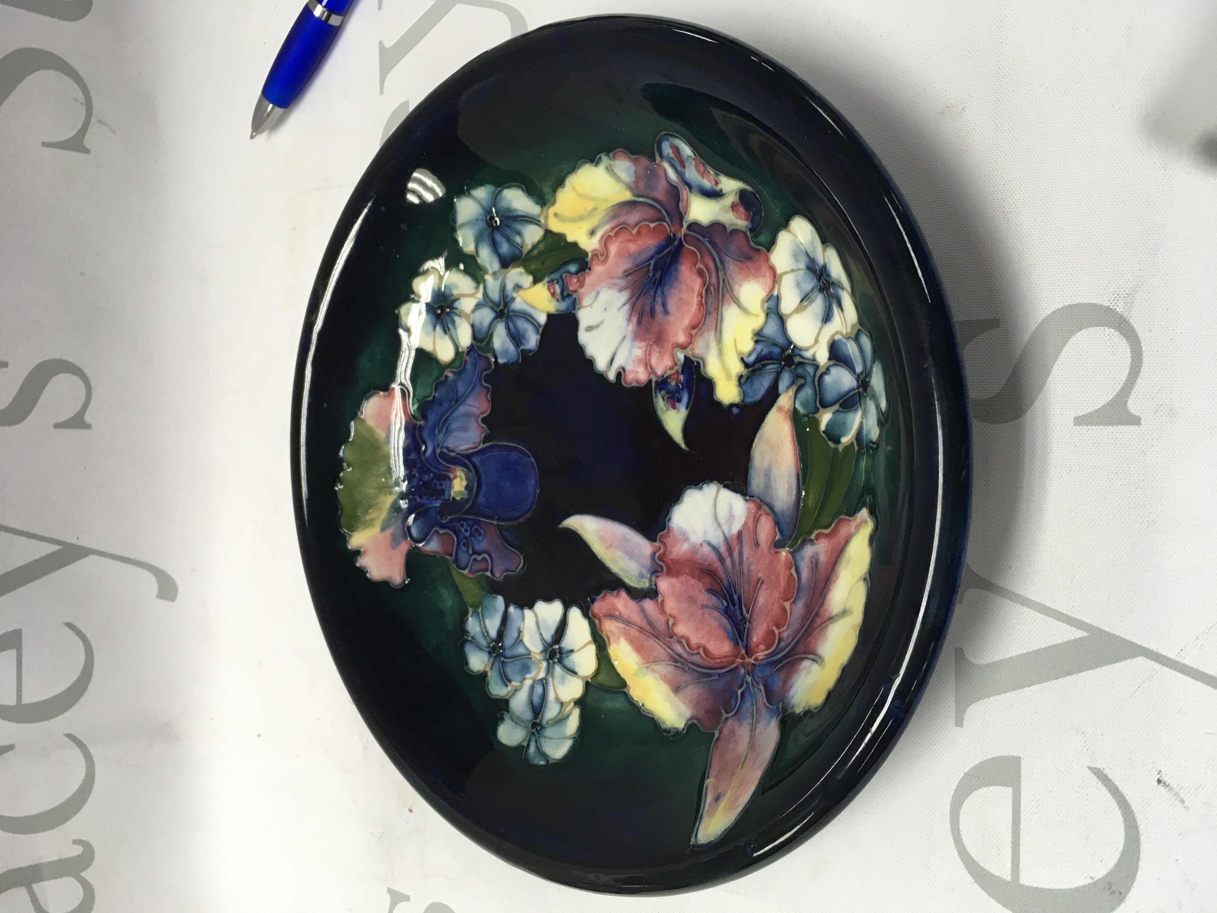 A Moorcroft dish decorated with Hybiscus flowers and foliage 21 cm No damage or restoration.