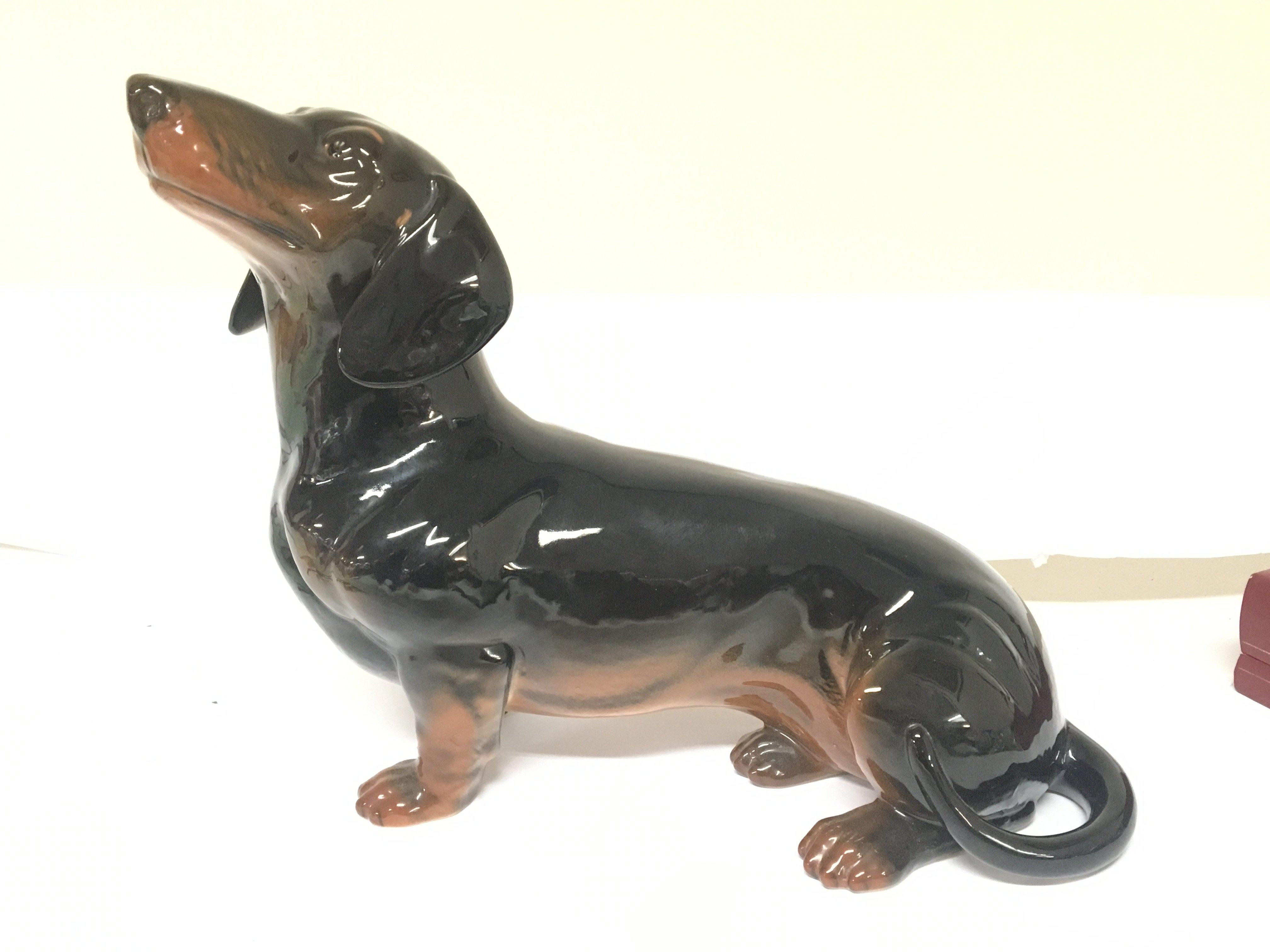 A large size Beswick ceramic figure of a Dachshund dog. No obvious damage or restoration length 38cm approximately.