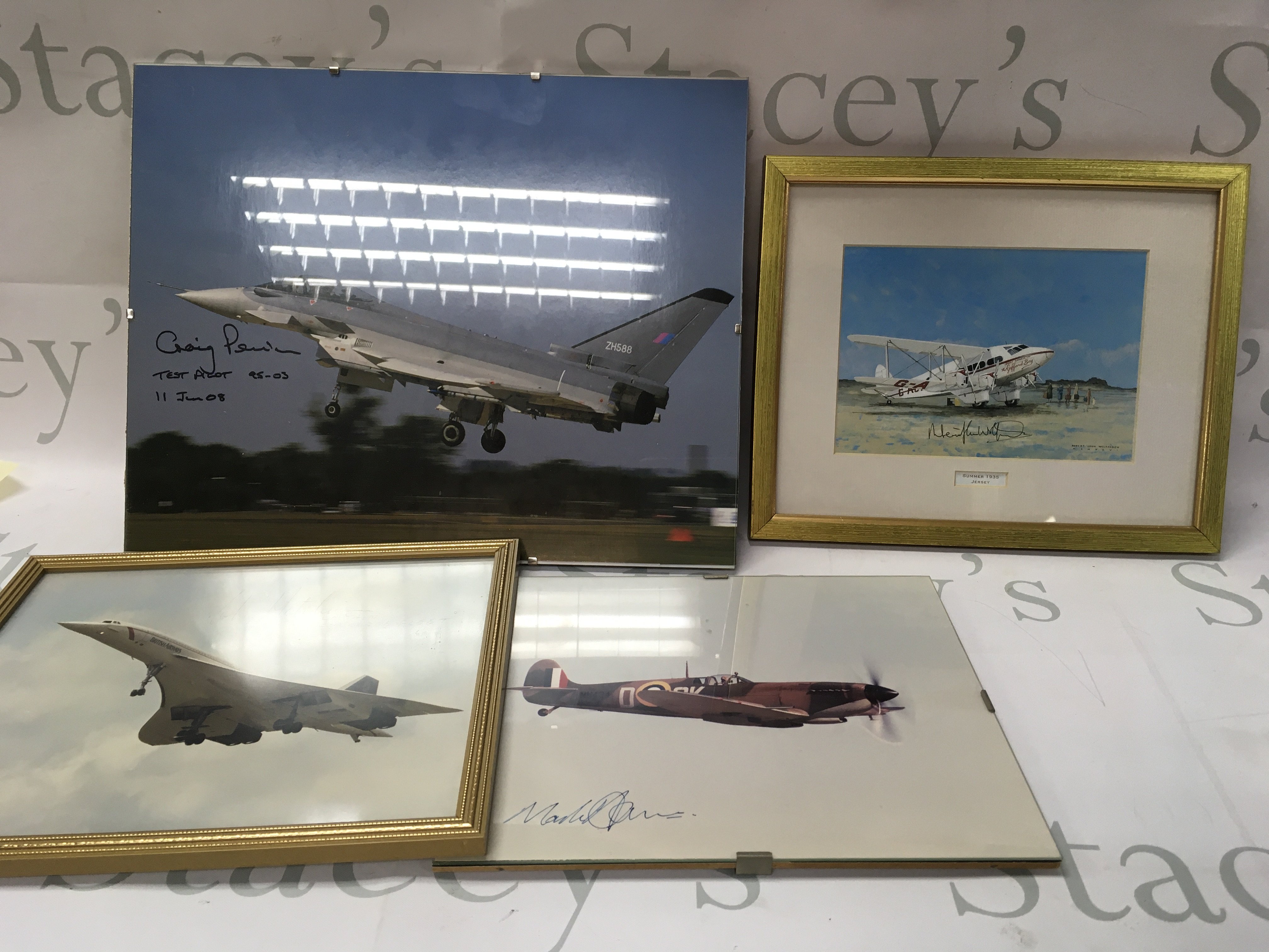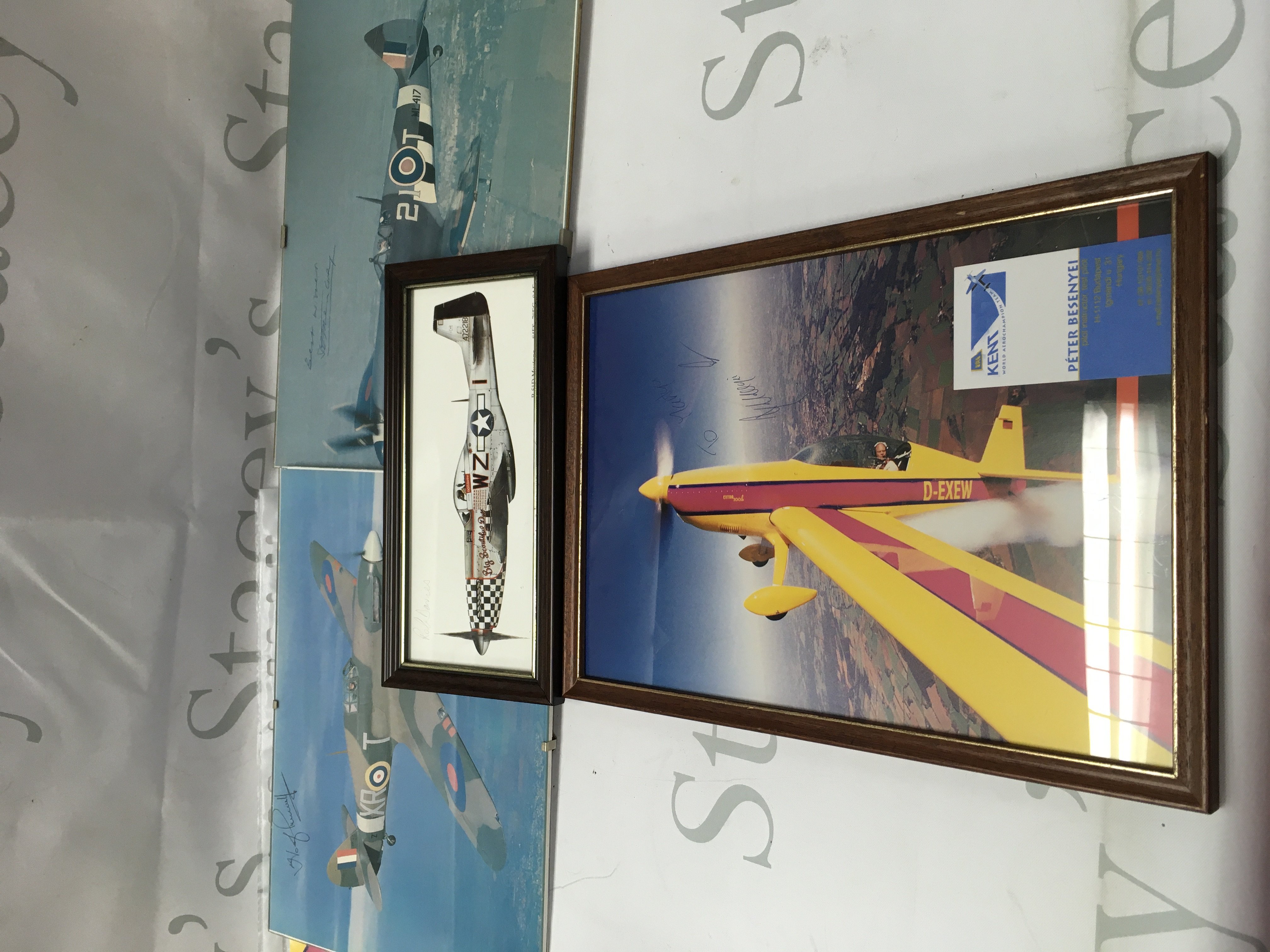 A mixed collection of prints of wartime aircraft’s from different periods and some other reputable aircraft’s signed and framed.