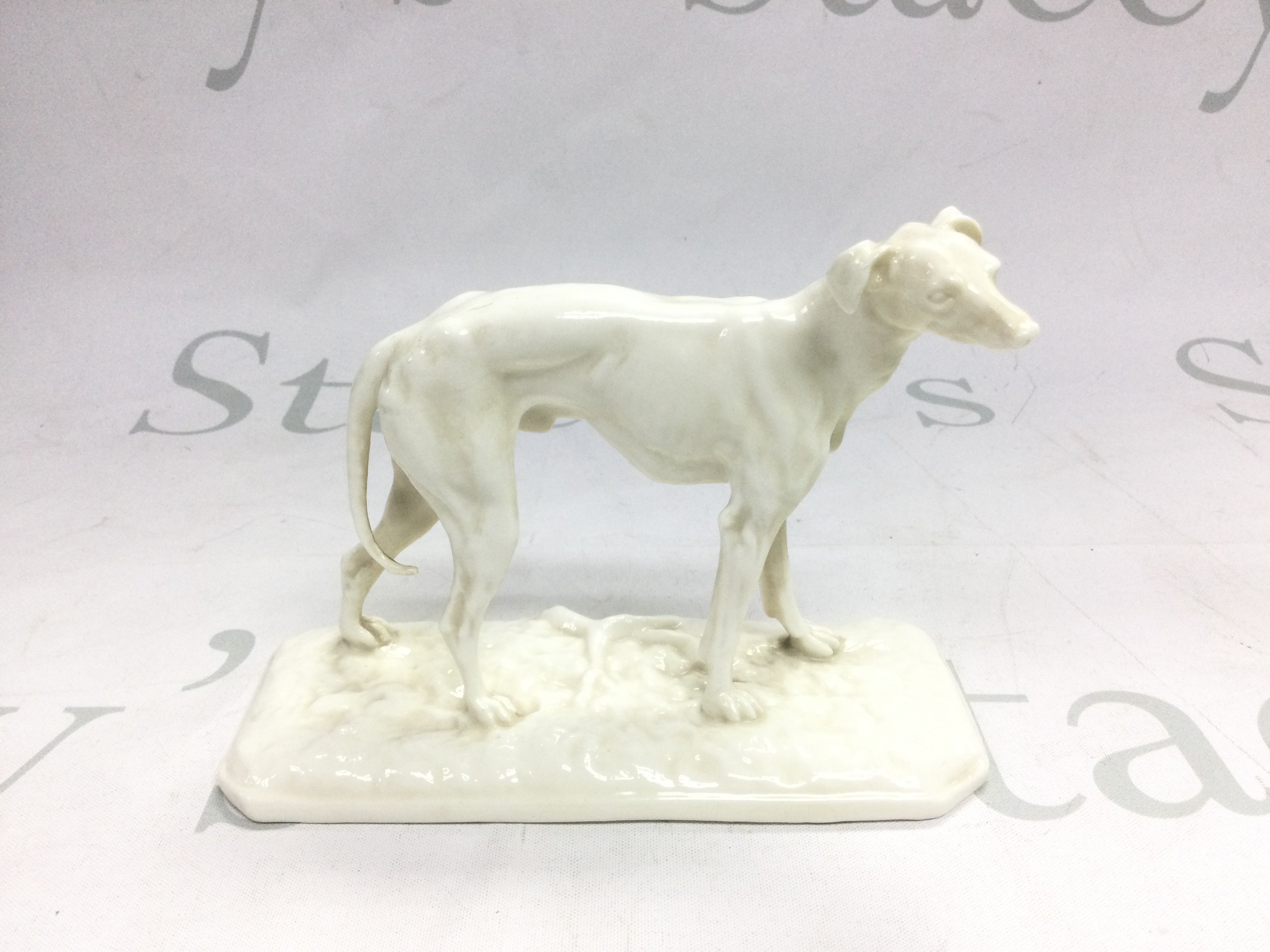 A 19th Century Nymphenburg porcelain figure of a greyhound, approx height 11cm. Shipping category D.