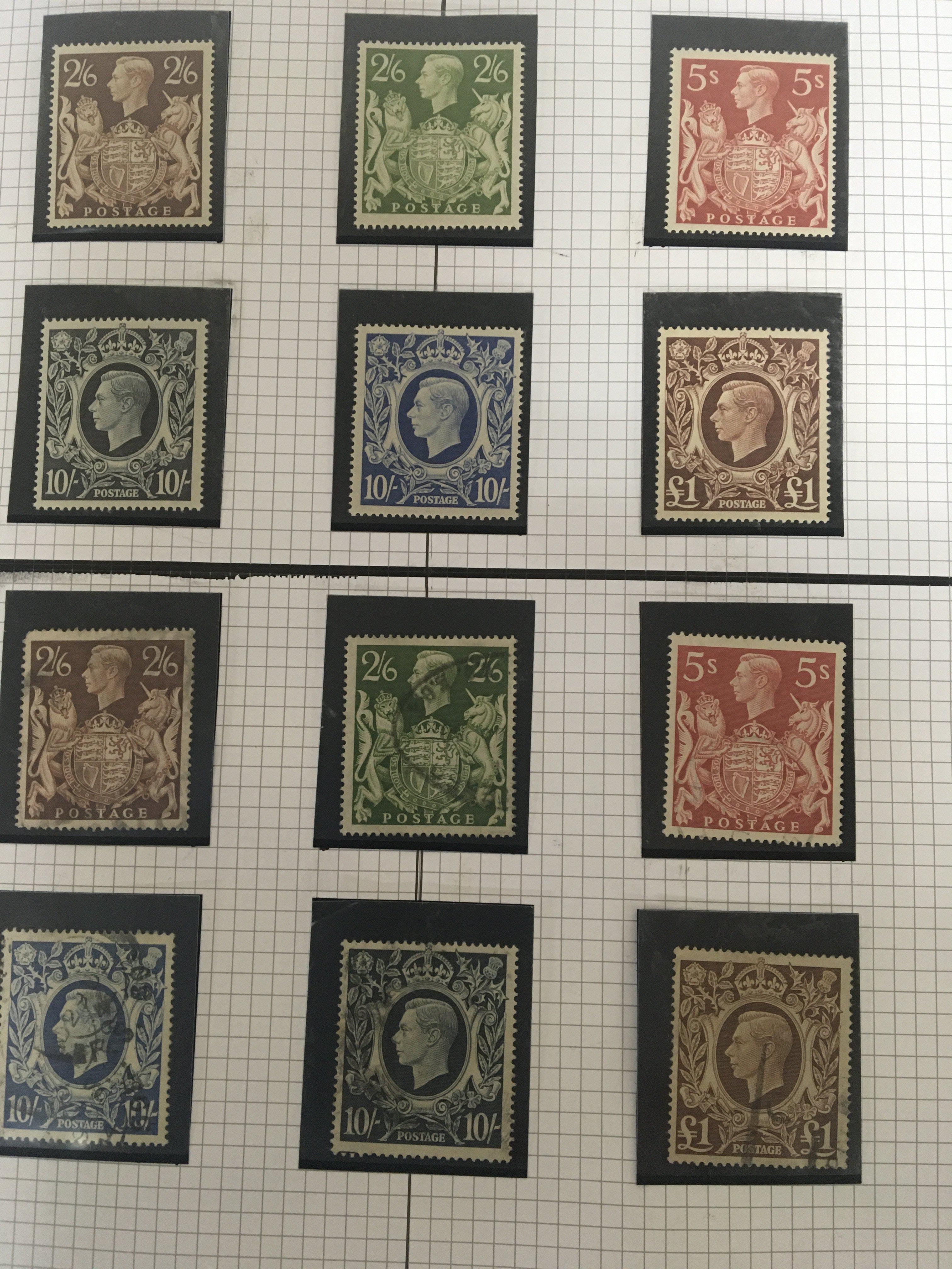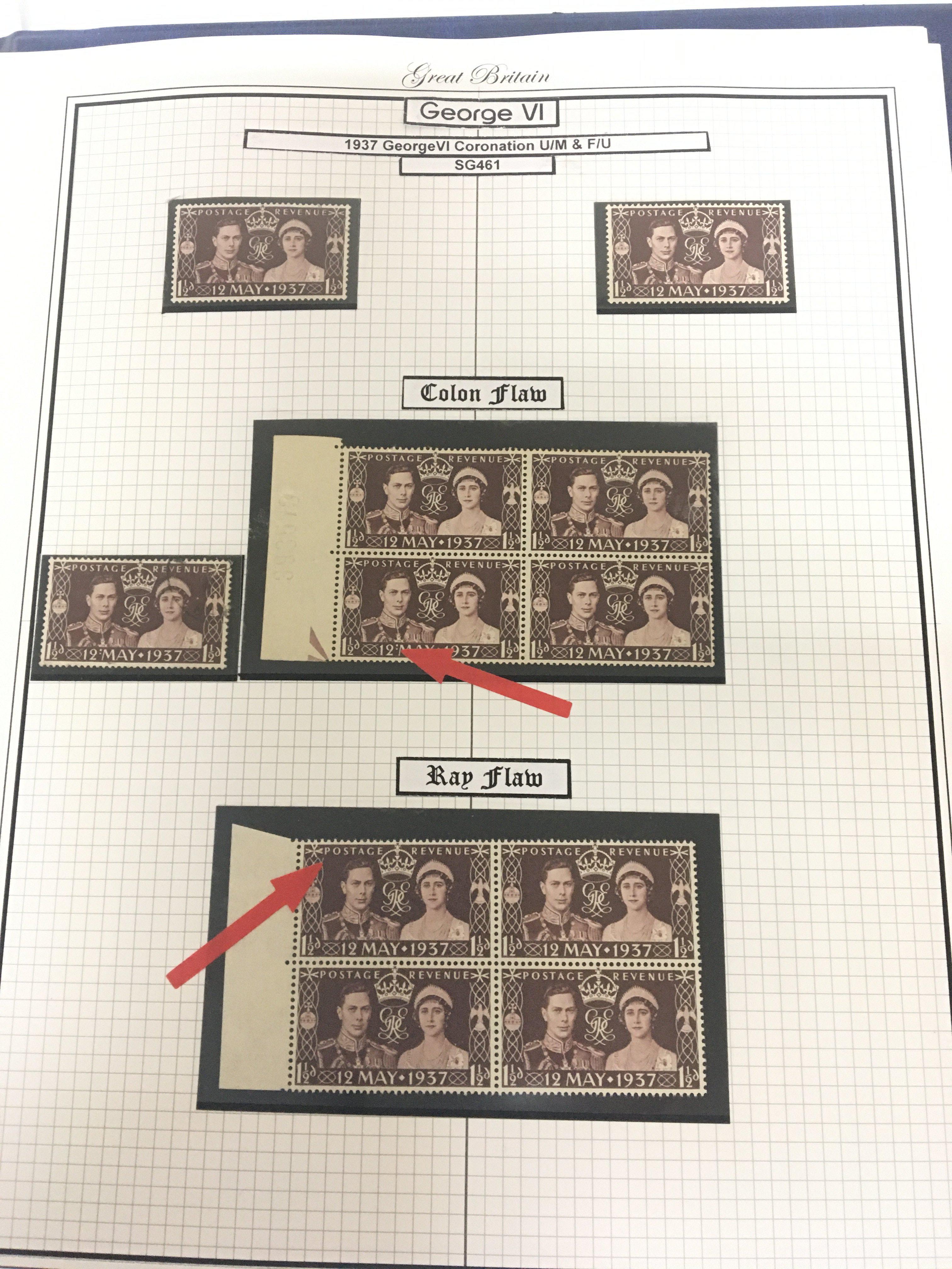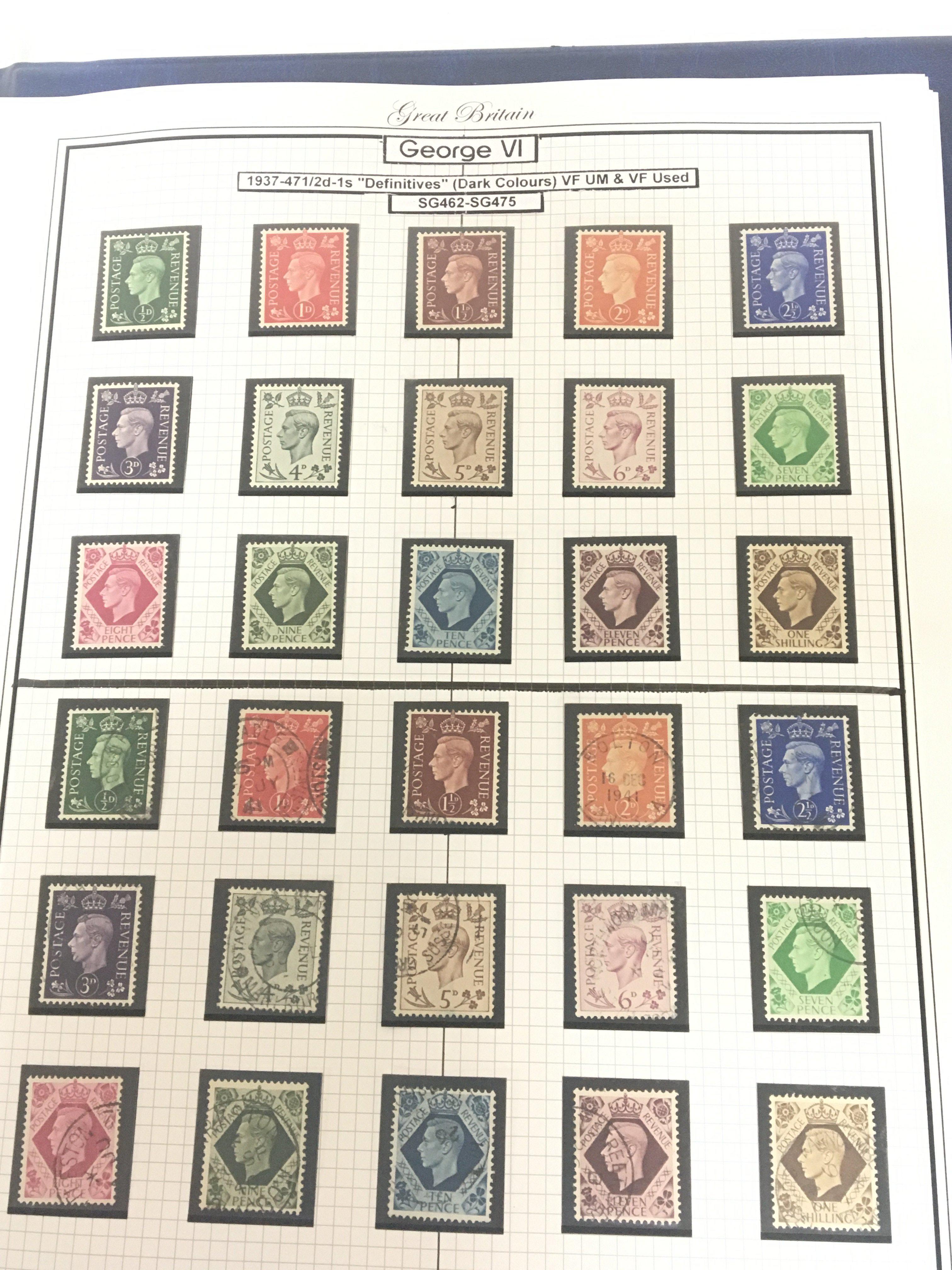 A well presented blue album of stamps including Edward VII and a very good selection of used and unused George VI including flaws and defects some unused blocks and a collection of sheets of stamps. British Edward VII - George VI