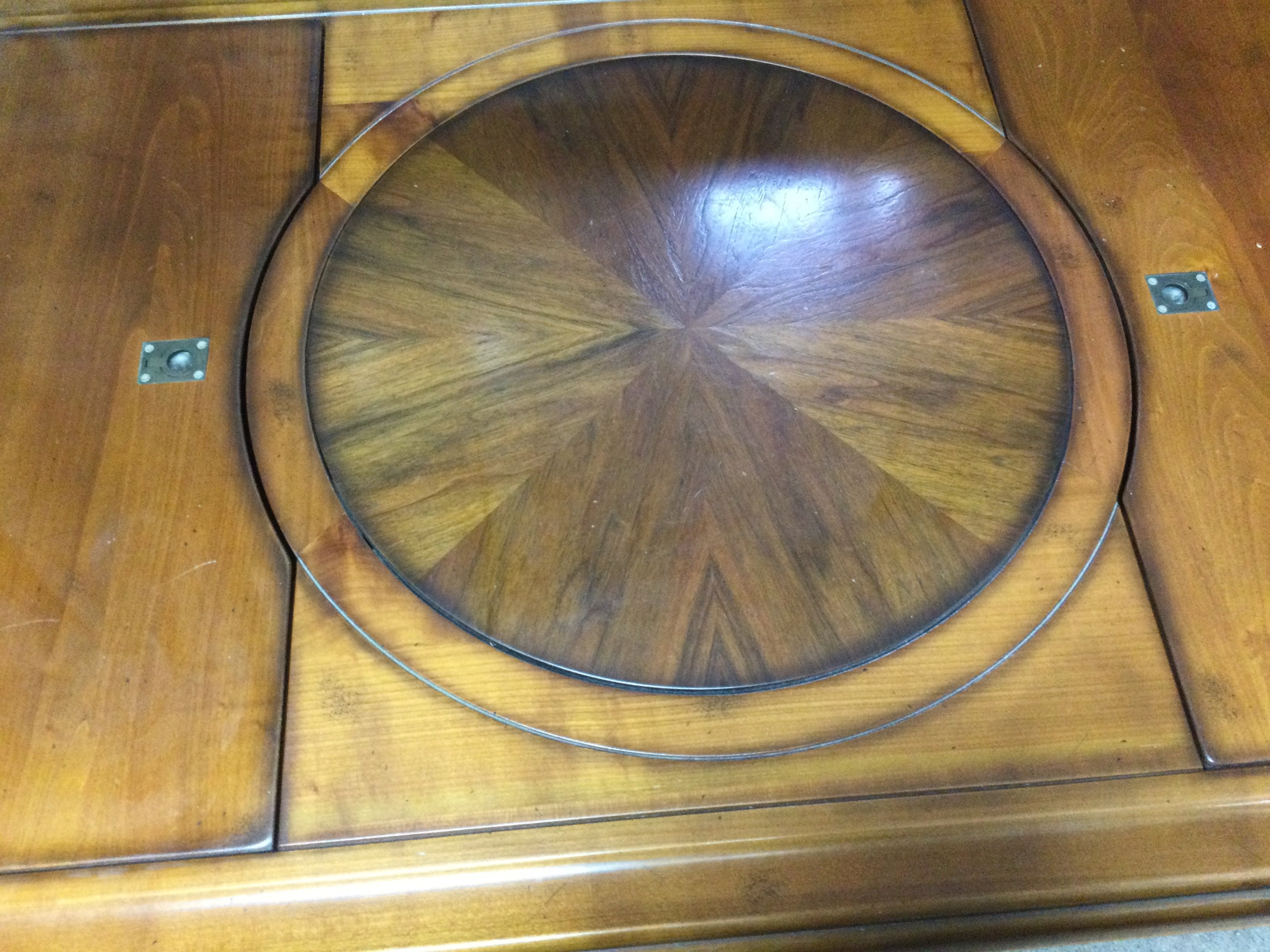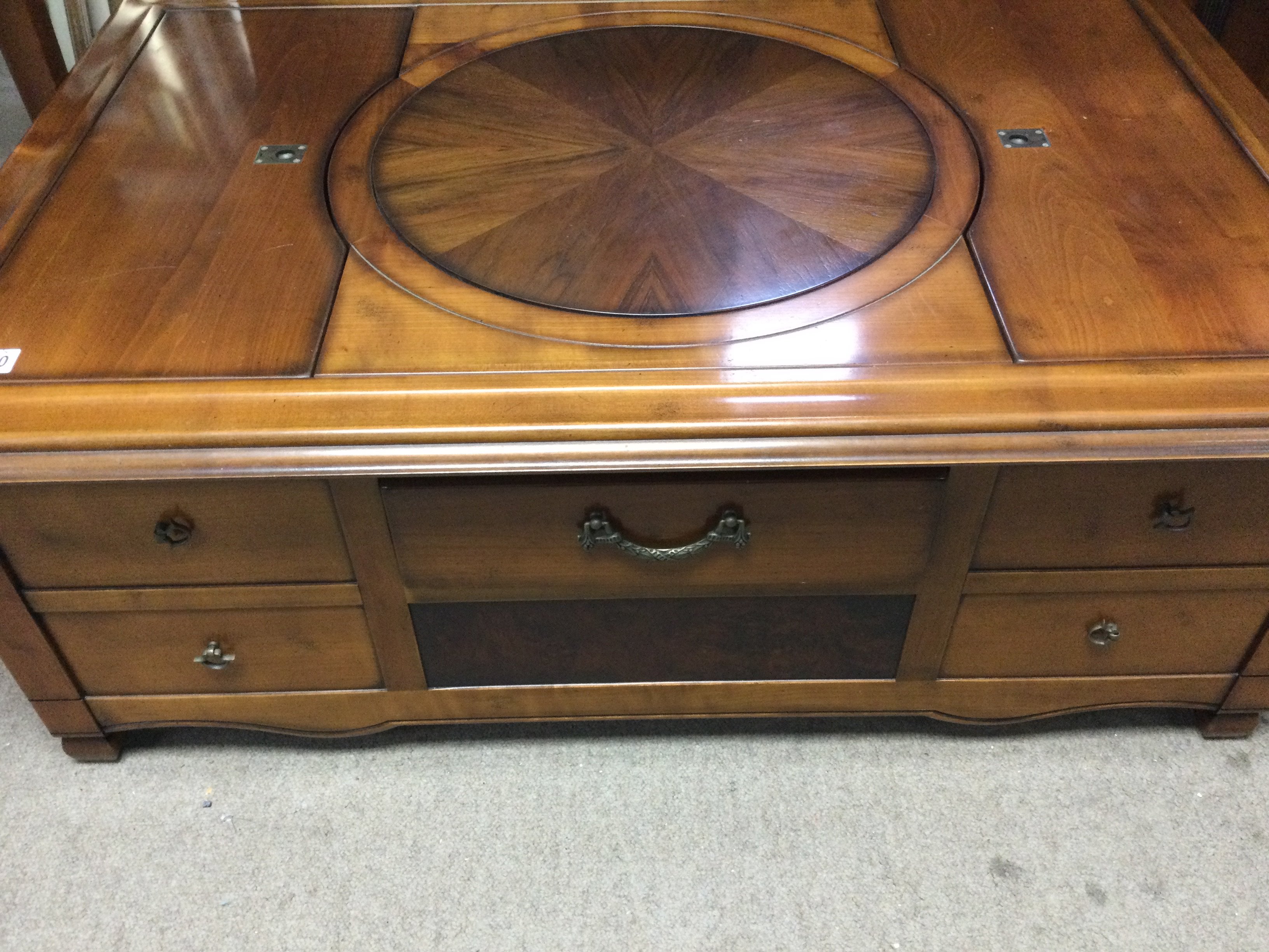 A low occasional table the centre with a reverse centre inset with five drawers.