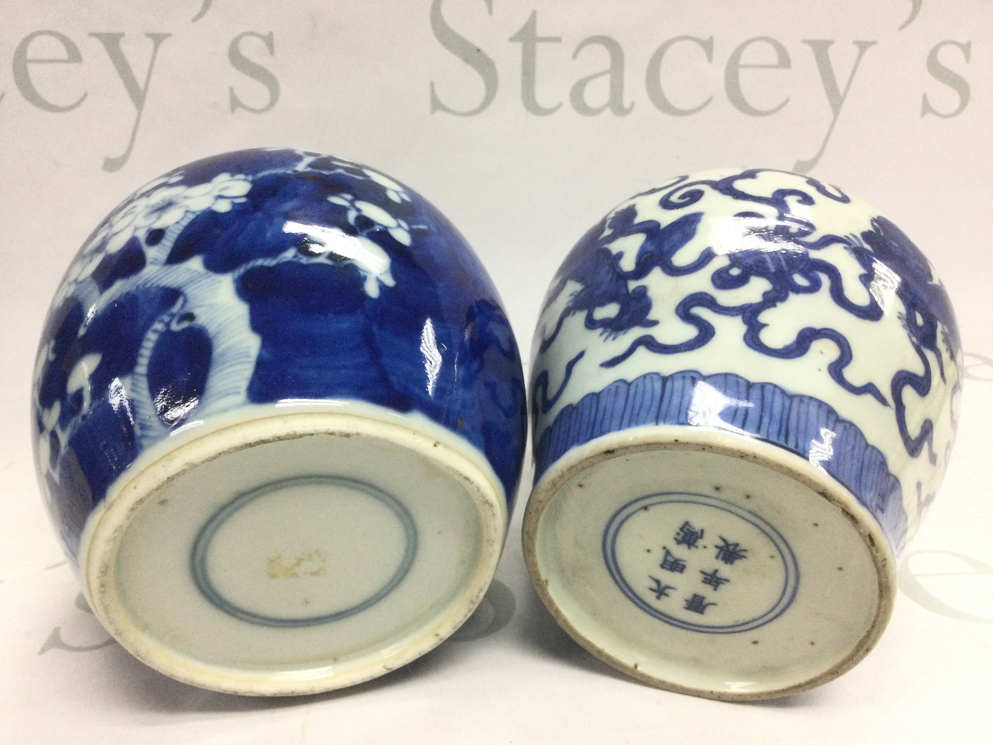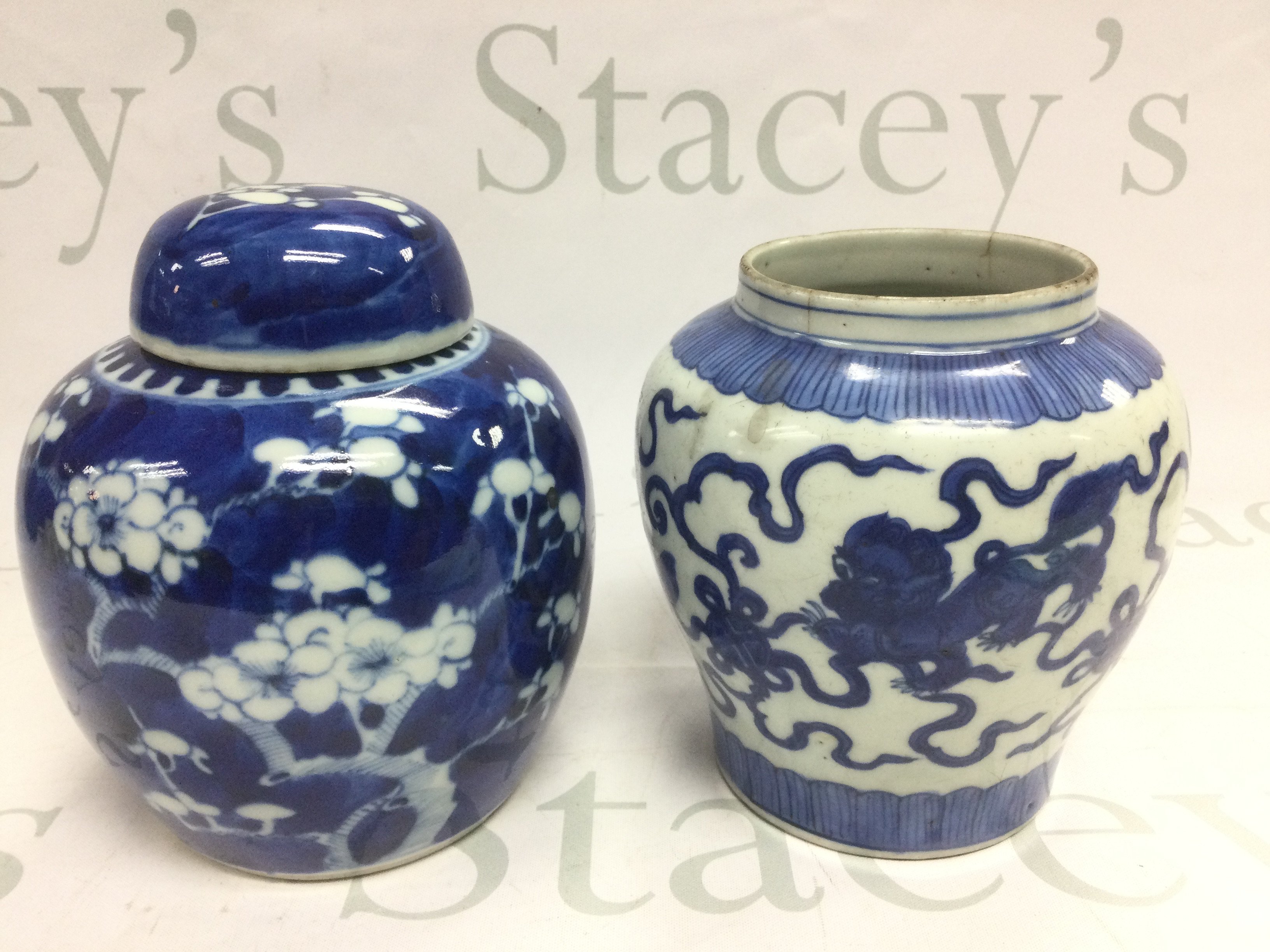 A Chinese blue and white ginger jar, approx height 14.5cm and a blue and white vase (2). Shipping category D.