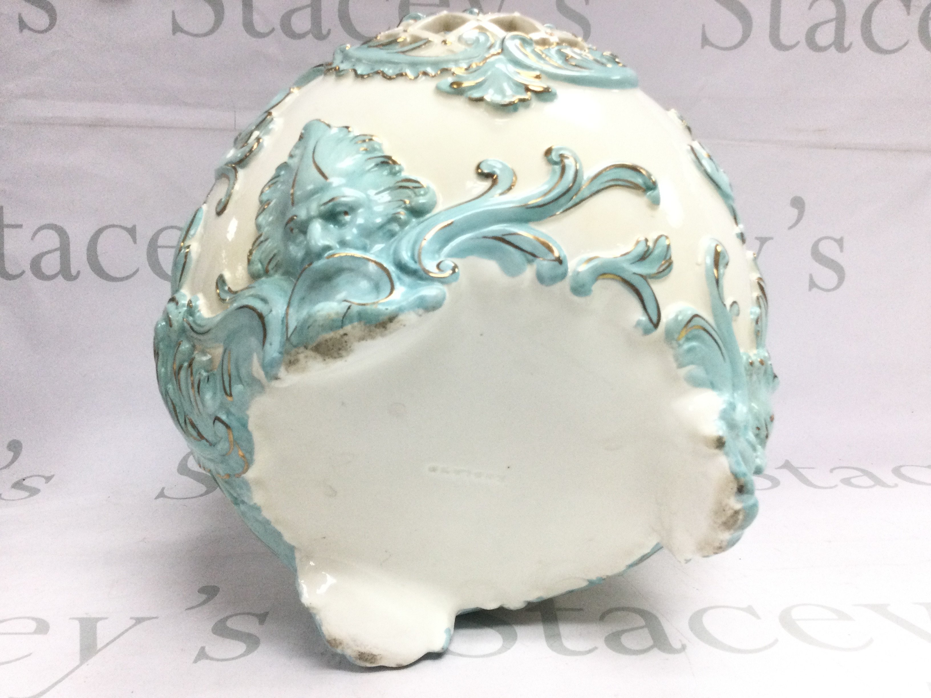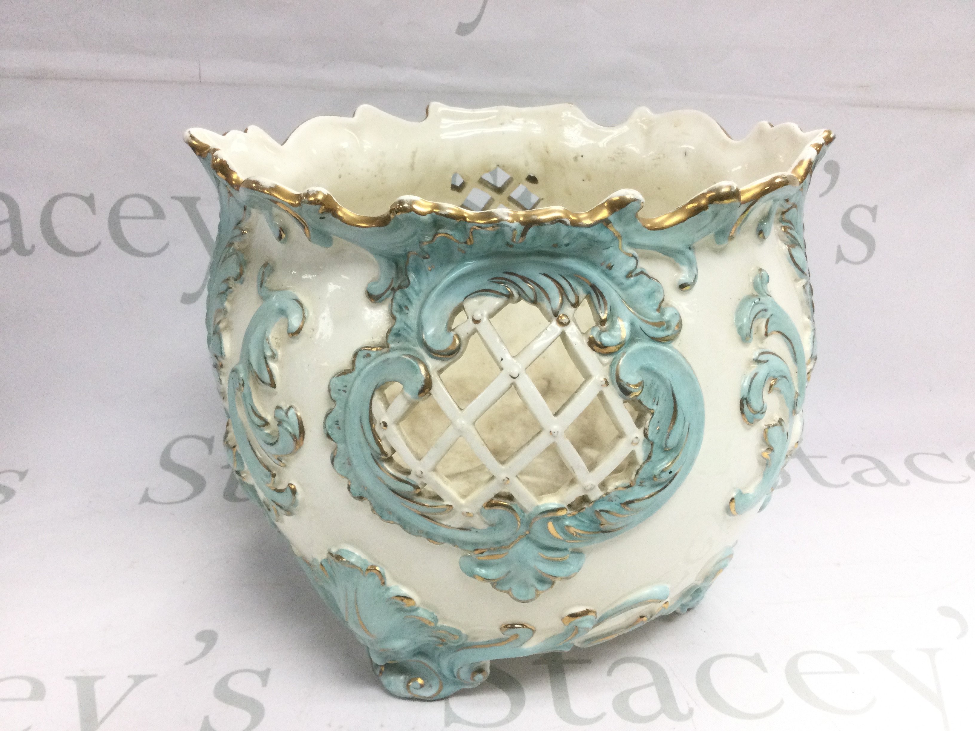 An English pottery jardiniere piercework and applied decoration, approx height 22.5cm. Shipping category D.