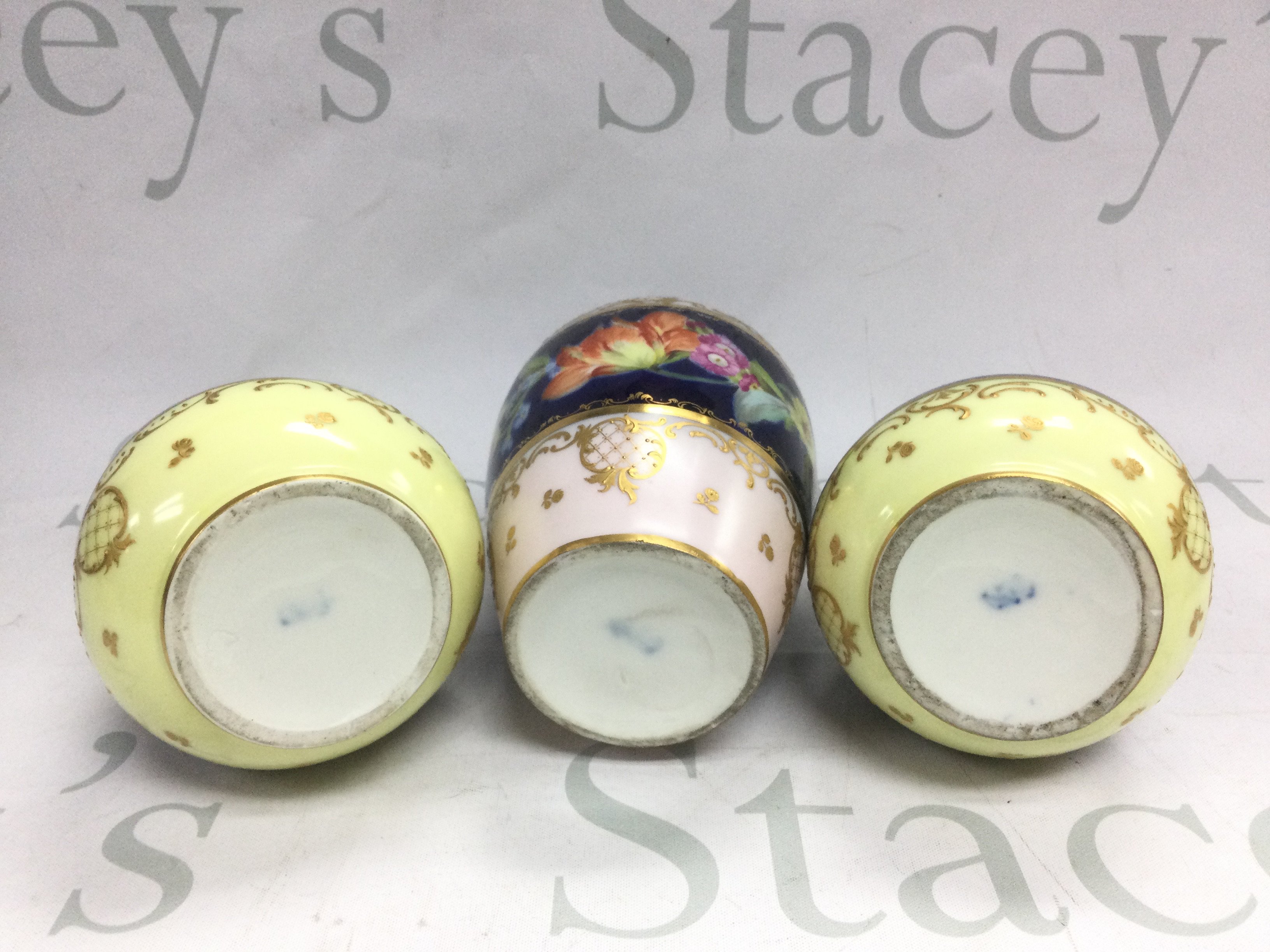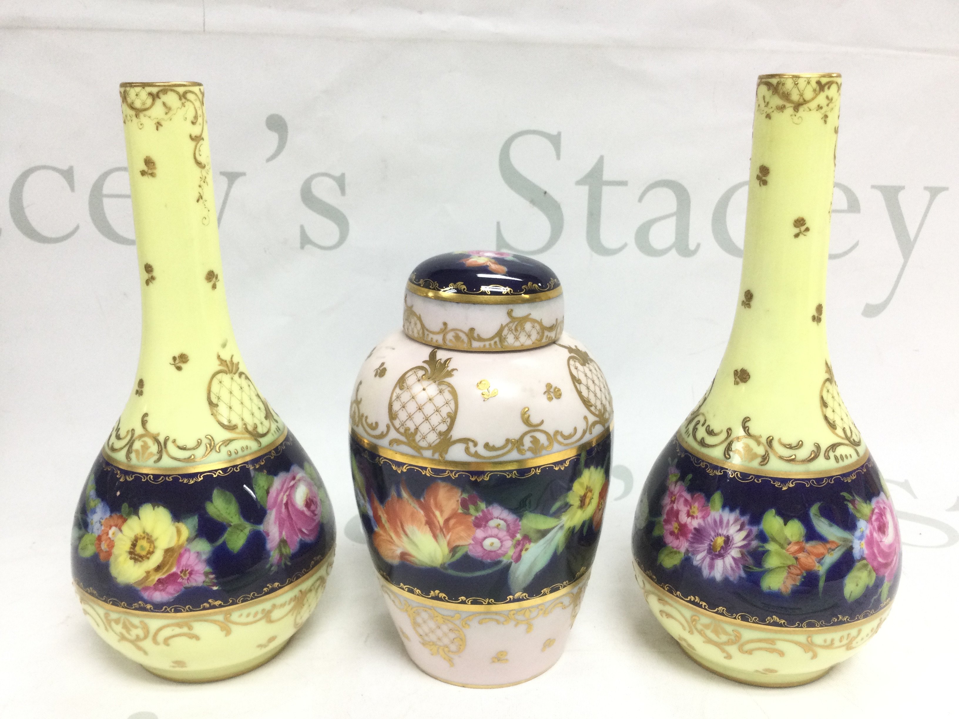 Three German porcelain vases with hand painted floral decoration, tallest approx 20cm. Shipping category D.