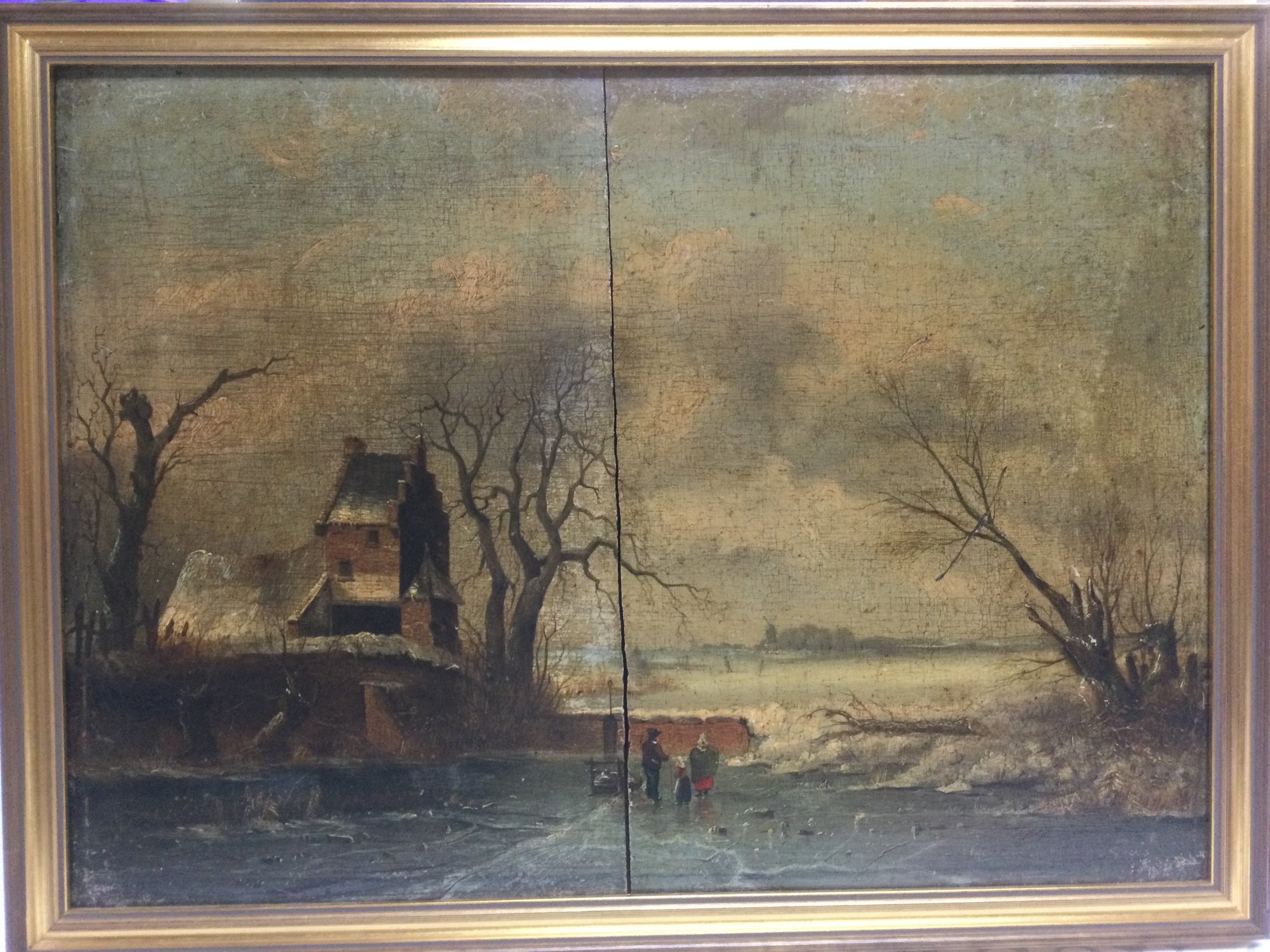 A 19th Century oil on panel of a Dutch scene in winter, unattributed, approx 64cm x 48cm. Shipping category D.