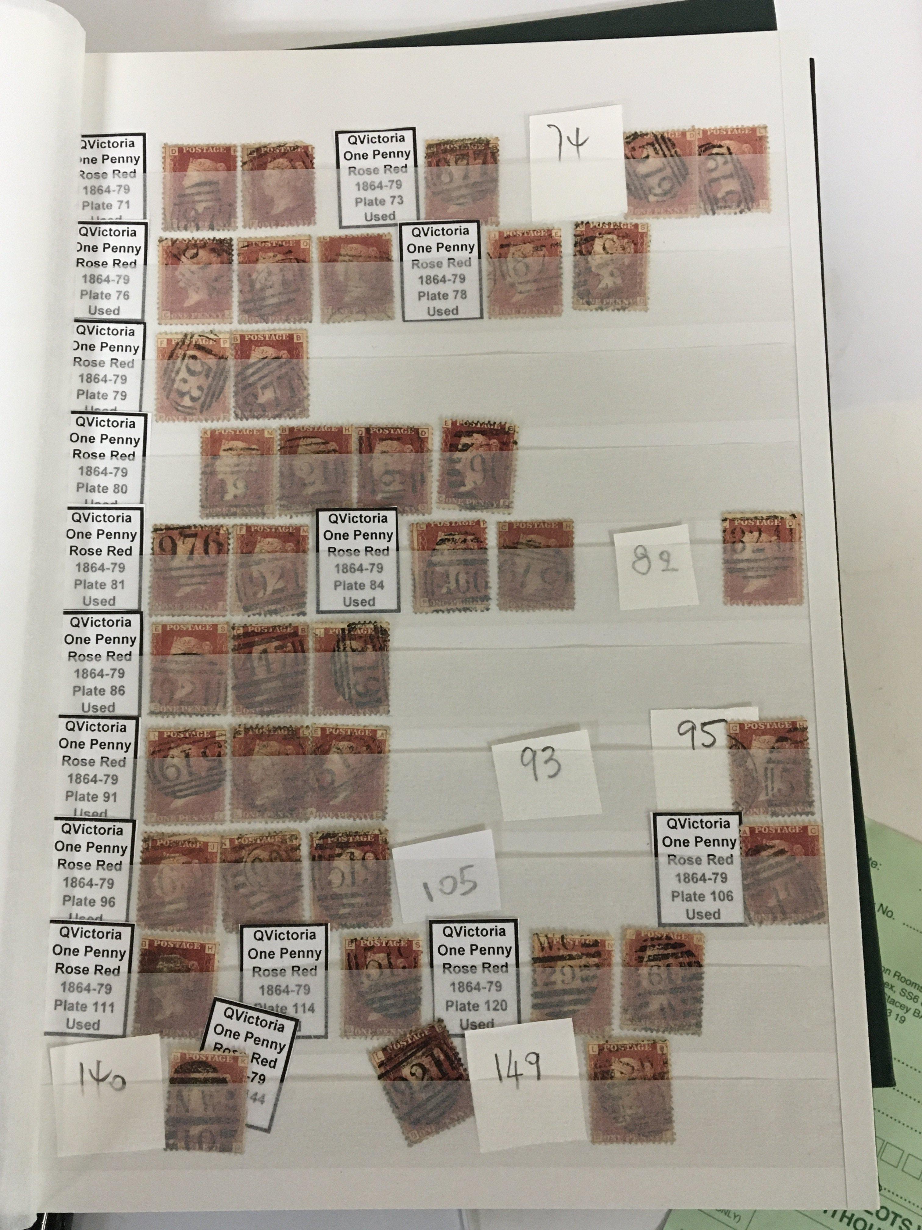 An album containing a well presented selection of Victorian Penny reds only two pages one other album again containing two pages of stamps Victorian reds and other Victorian stamps and an album containing a page of well presented George V stamps.
