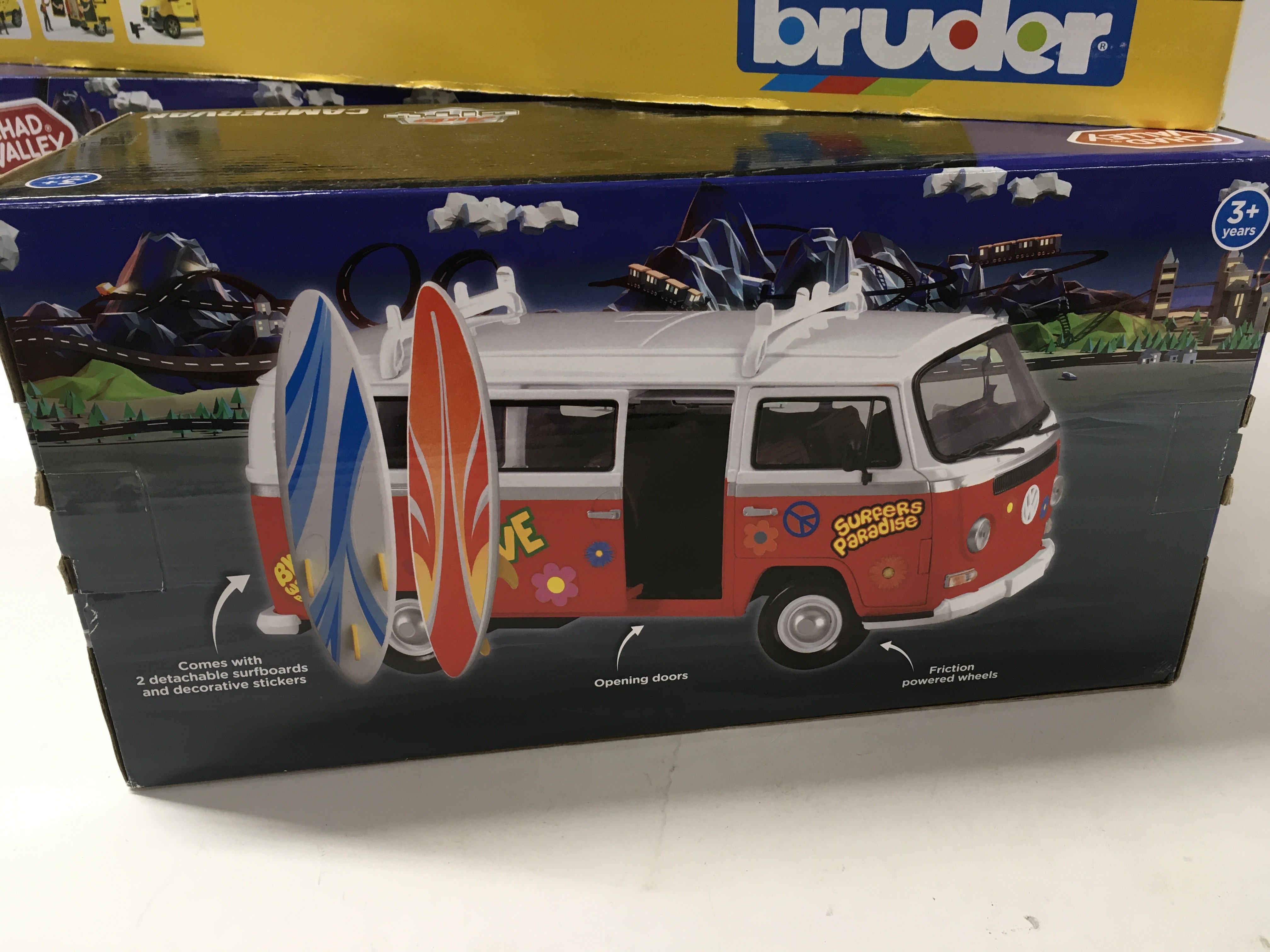 A group of 3 boxed model vehicles 2 x Volkswagen Campervans by Chad Valley and a Mercedes van in DHL livery by Bruner. No reserve