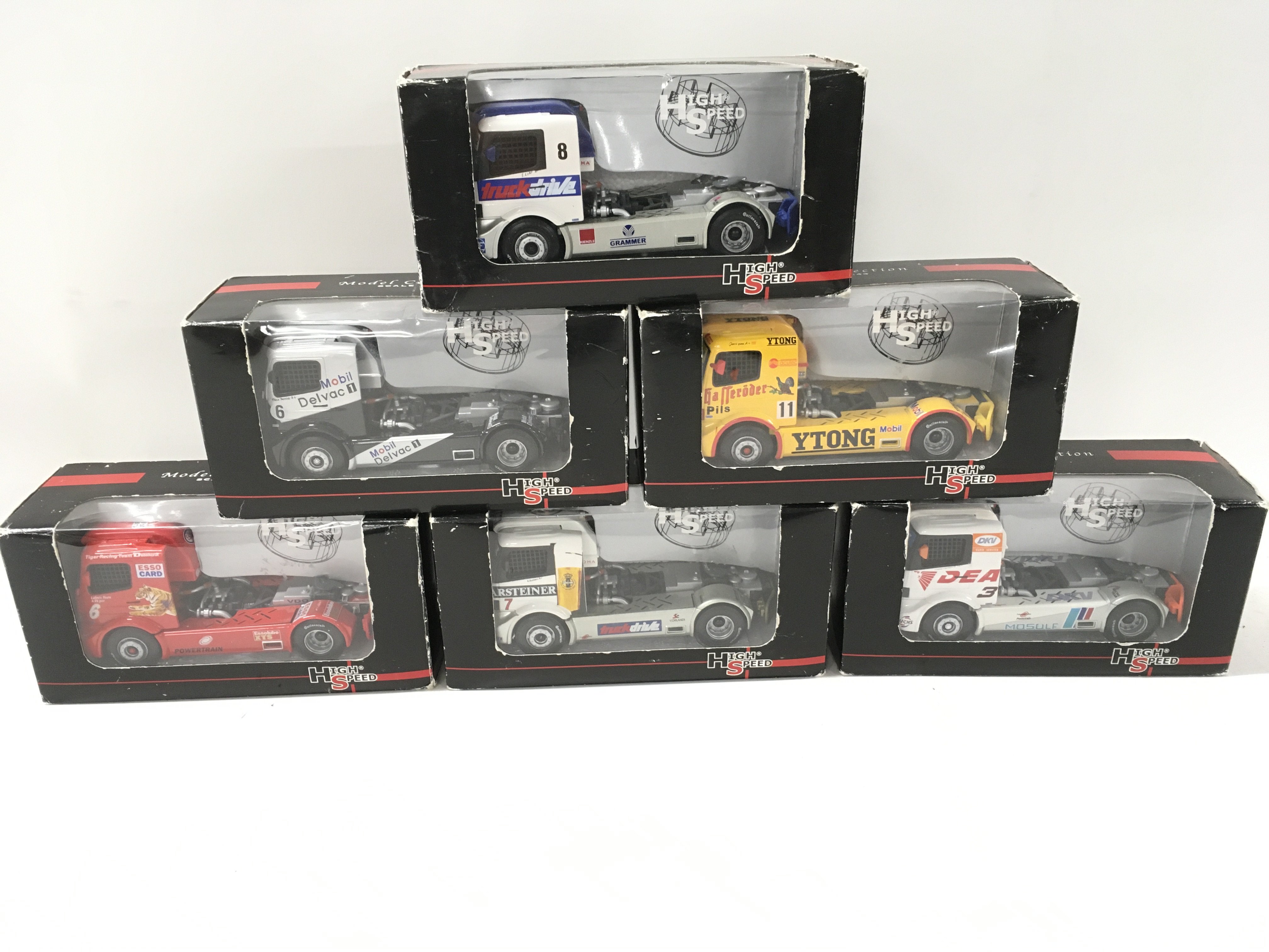 A collection of 6 unopened boxed High Speed racing Artic cabs 1:43 scale. No reserve