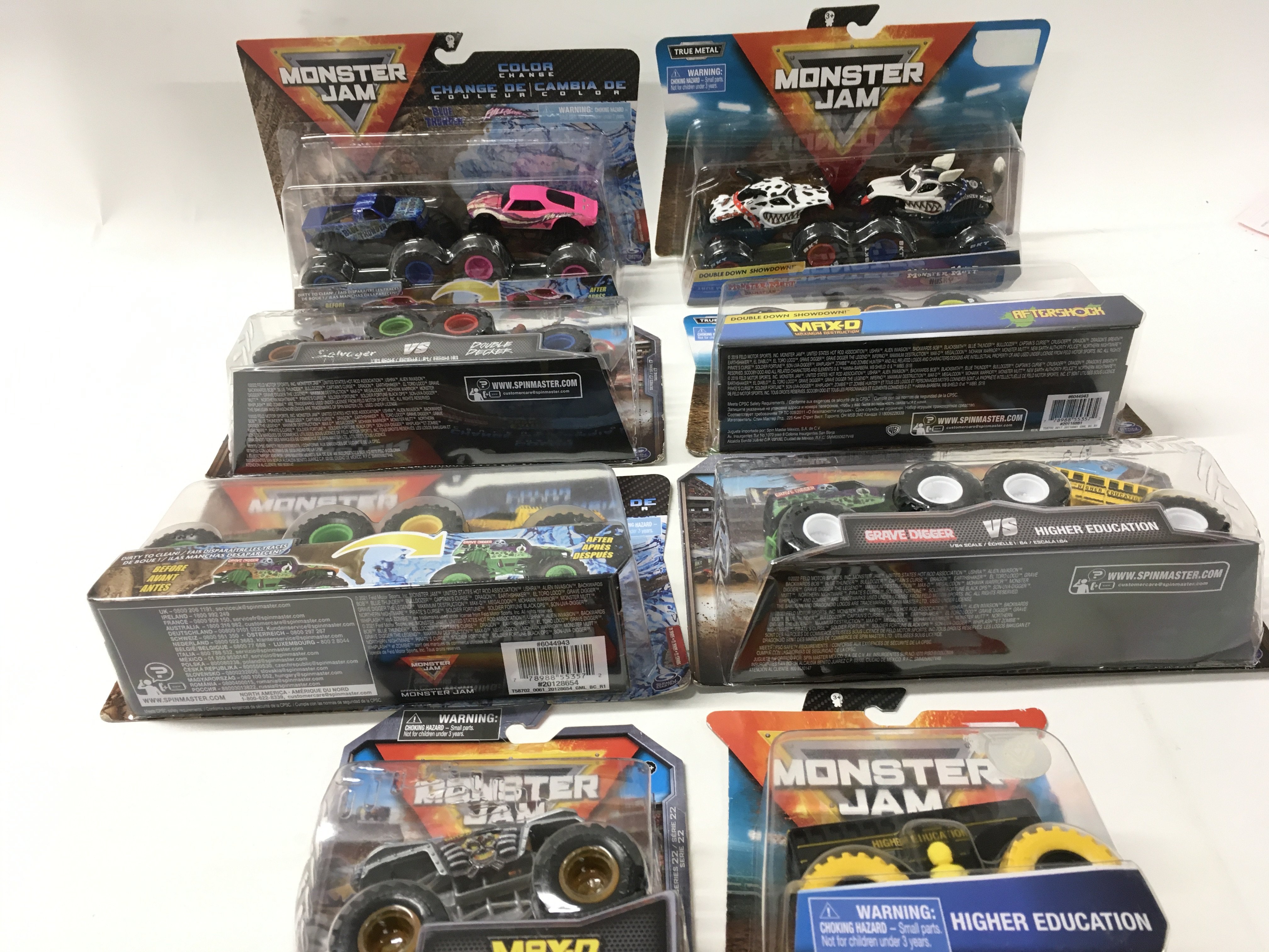 A collection of unopened boxed Monster Jam vehicles, includes 6x double vehicle sets and 2 single. No reserve 1:64 scale