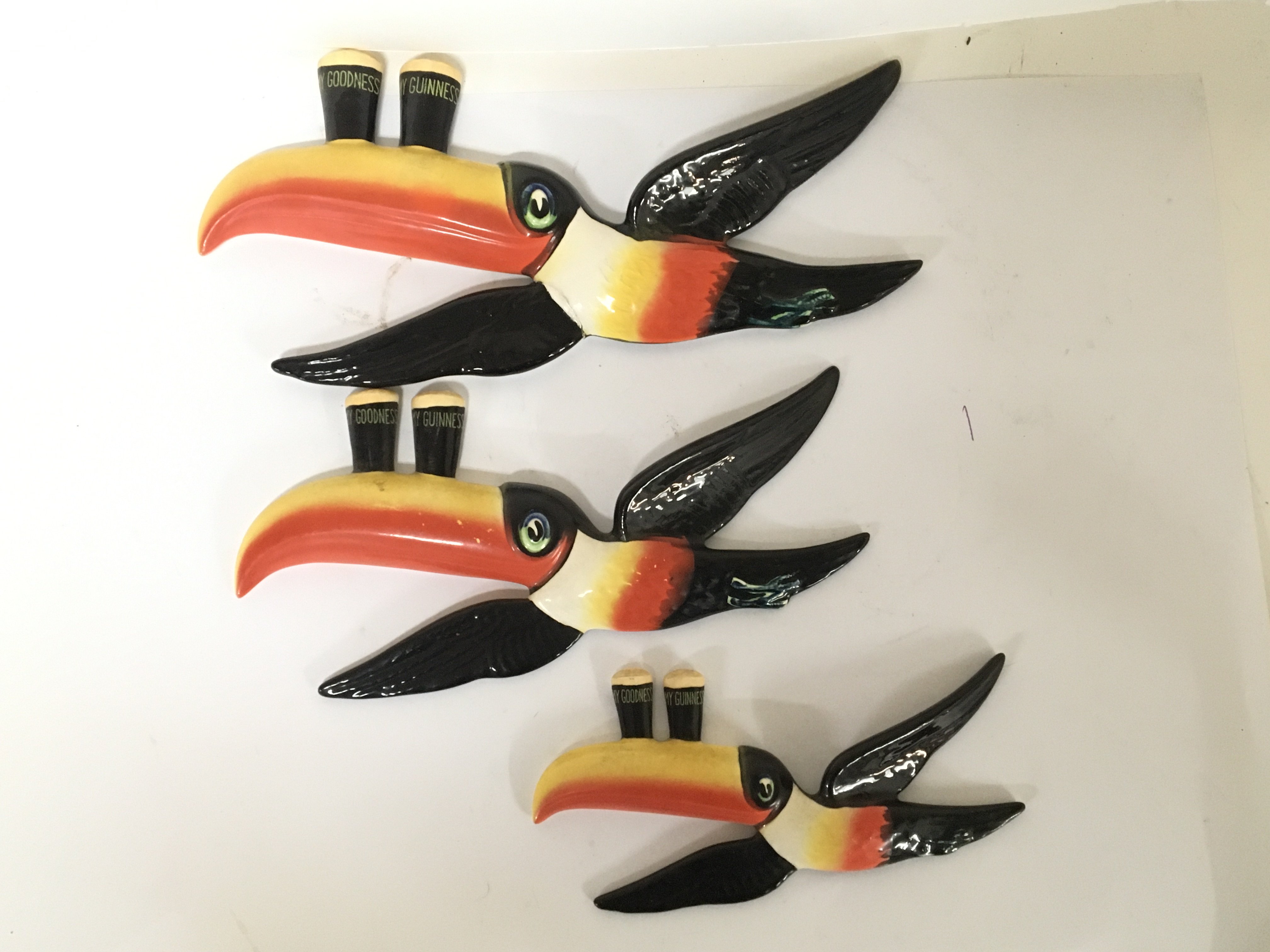 Three graduating Original Carlton Ware Guinness wall hanging Toucans (3)