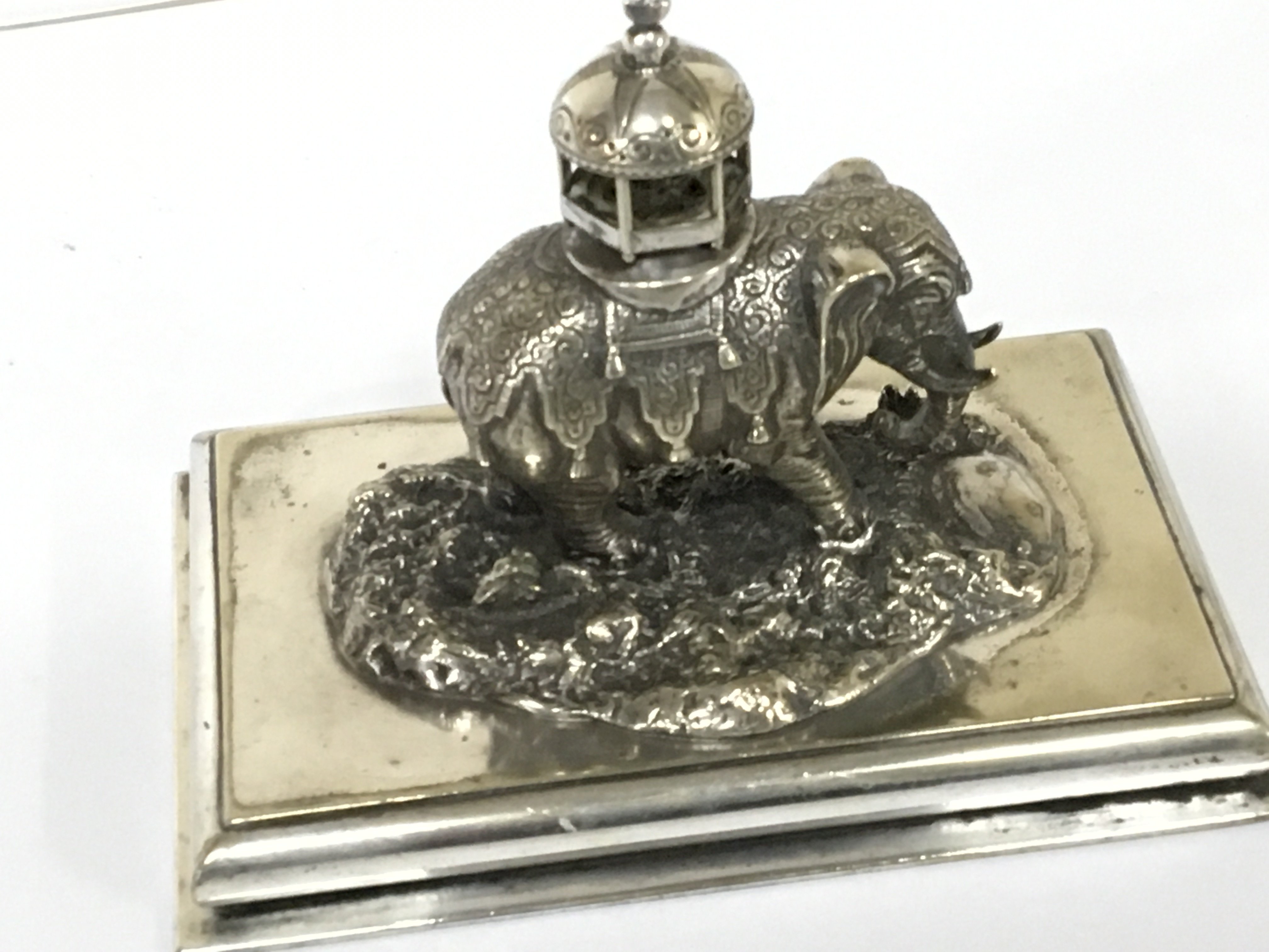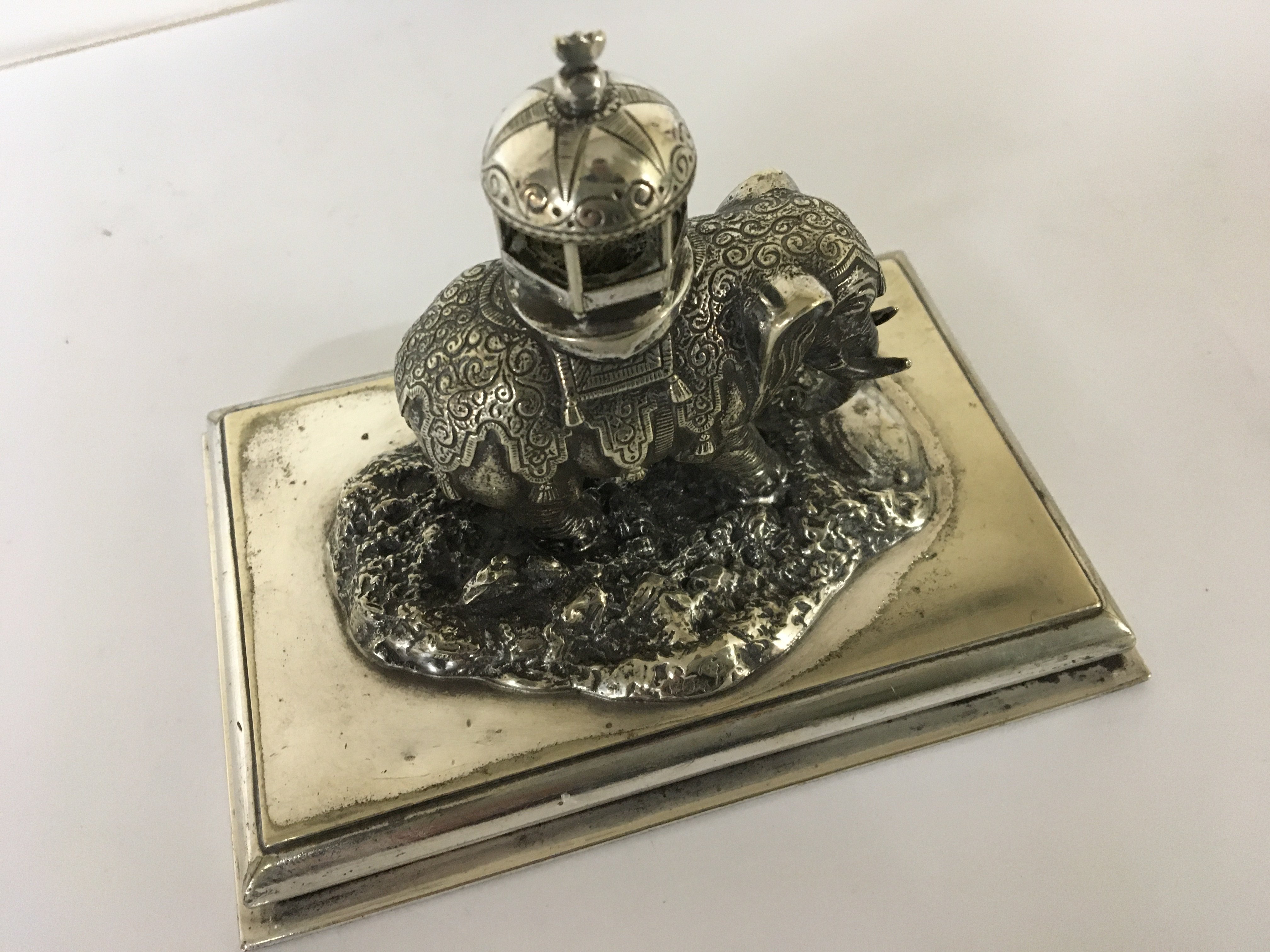 A Quality 19th century Silver plated desk weight in the form of a ceremonial dressed Indian elephant. Height 10cm