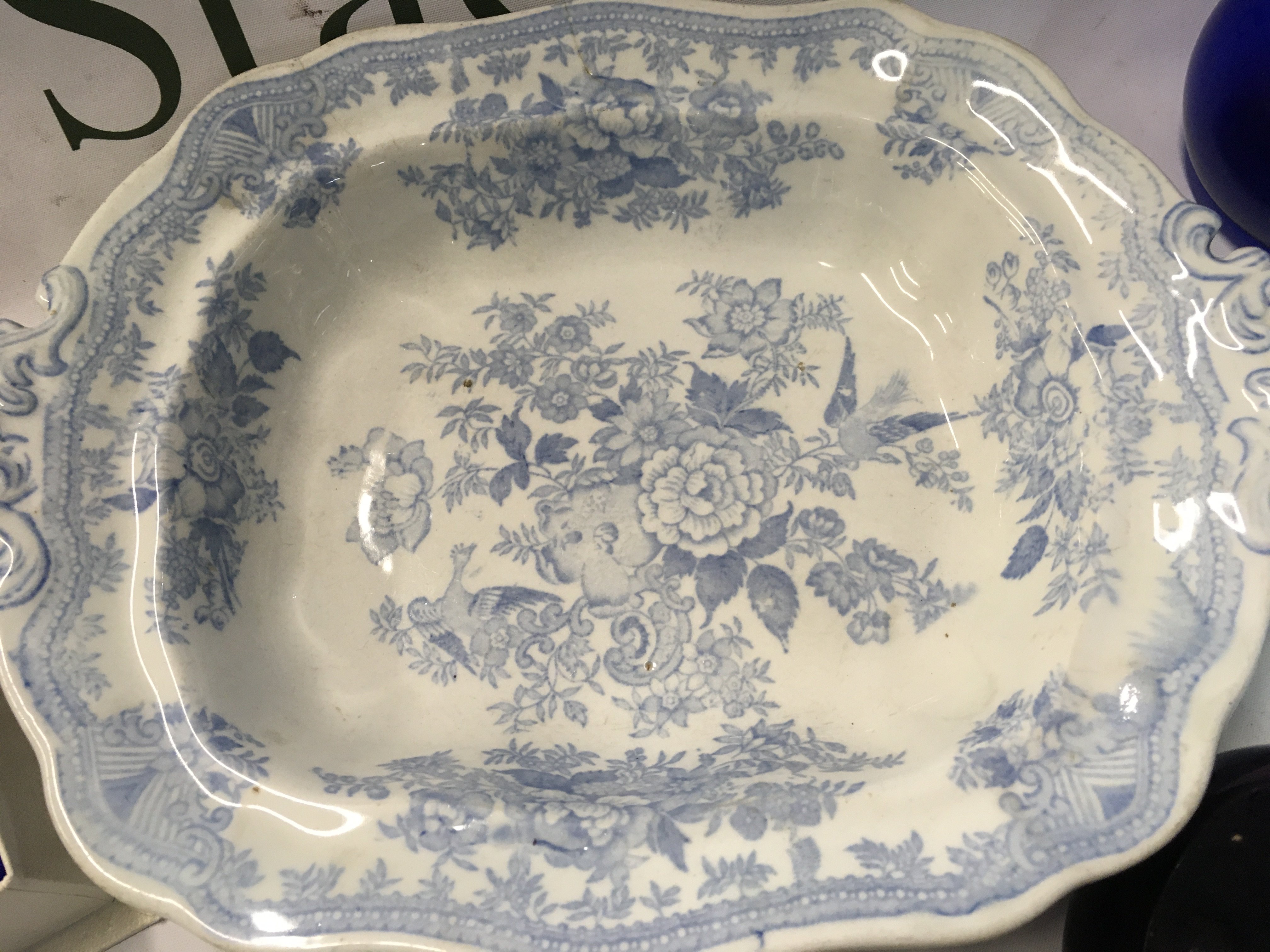 Three late Victorian coloured glass vases, Asiatic Wedgwood pheasant dish