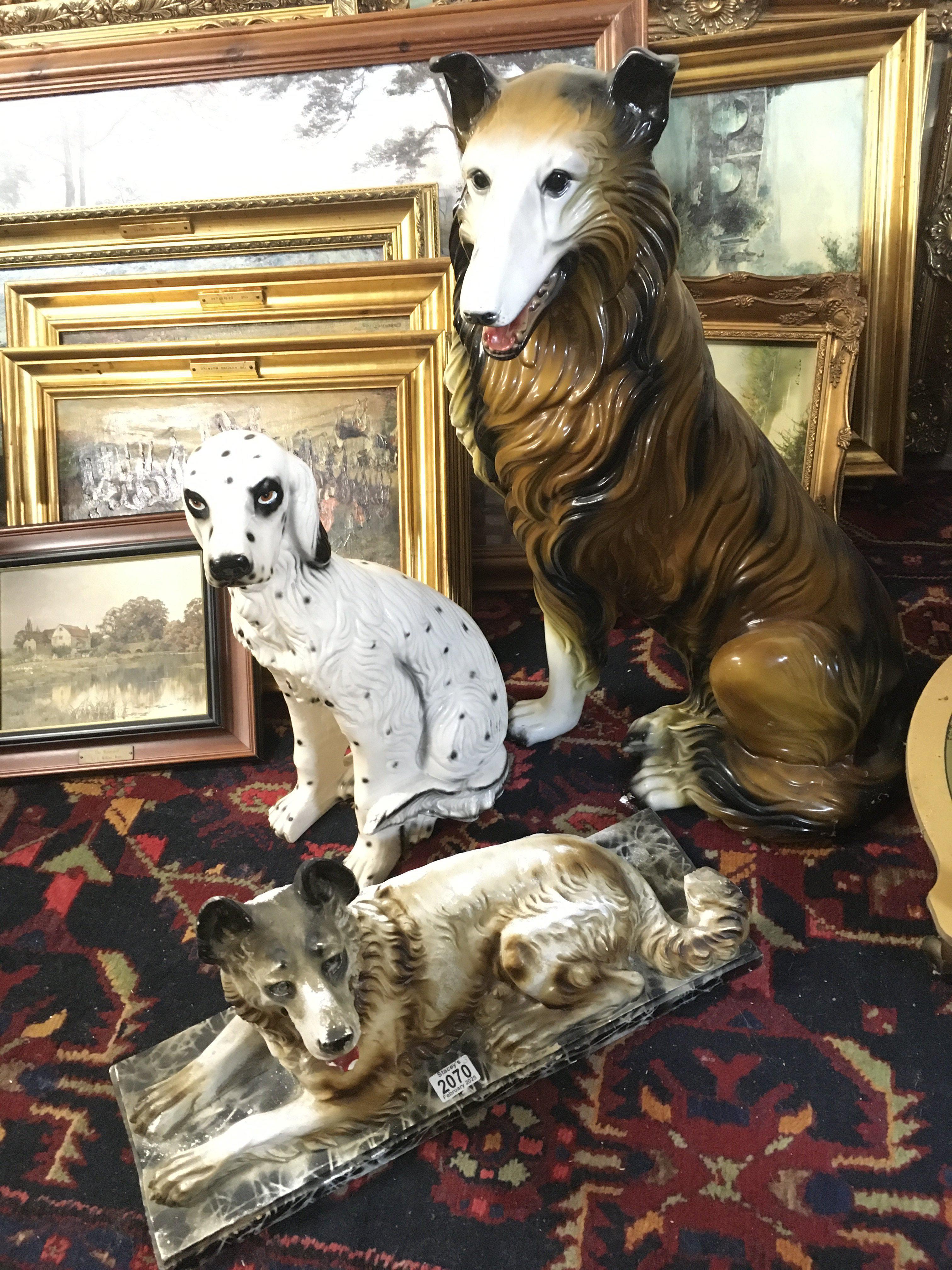 Three large vintage ceramic Dog ornaments ,33 to 69cm tall.