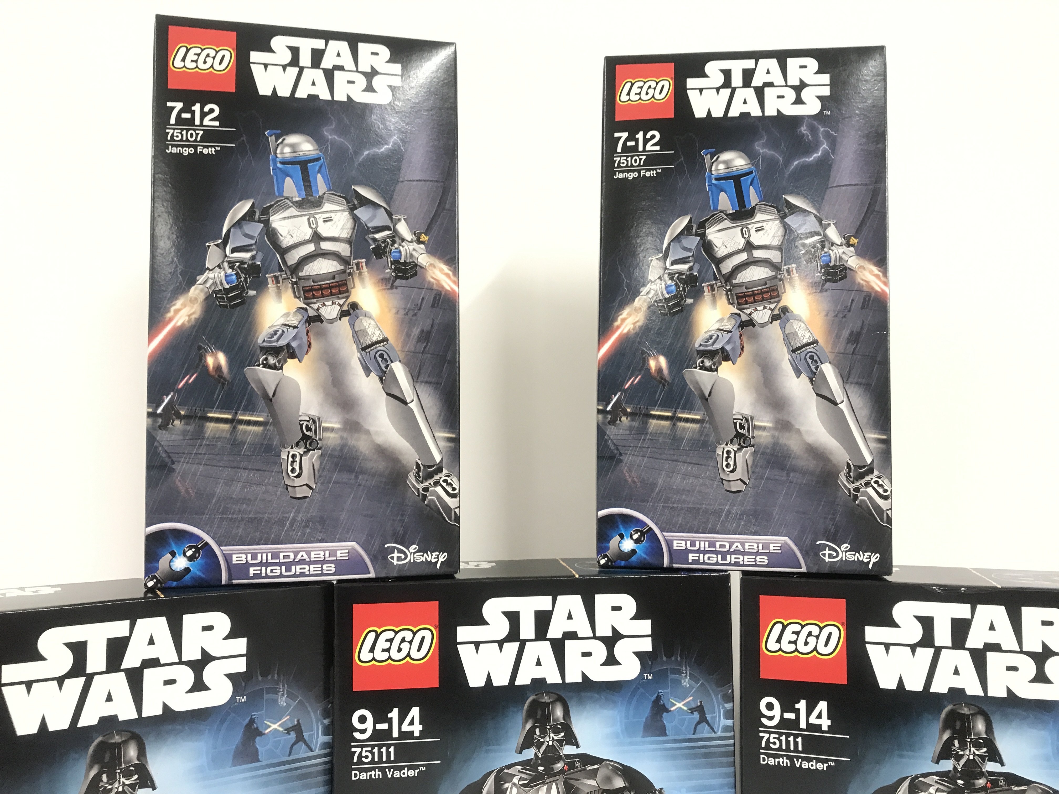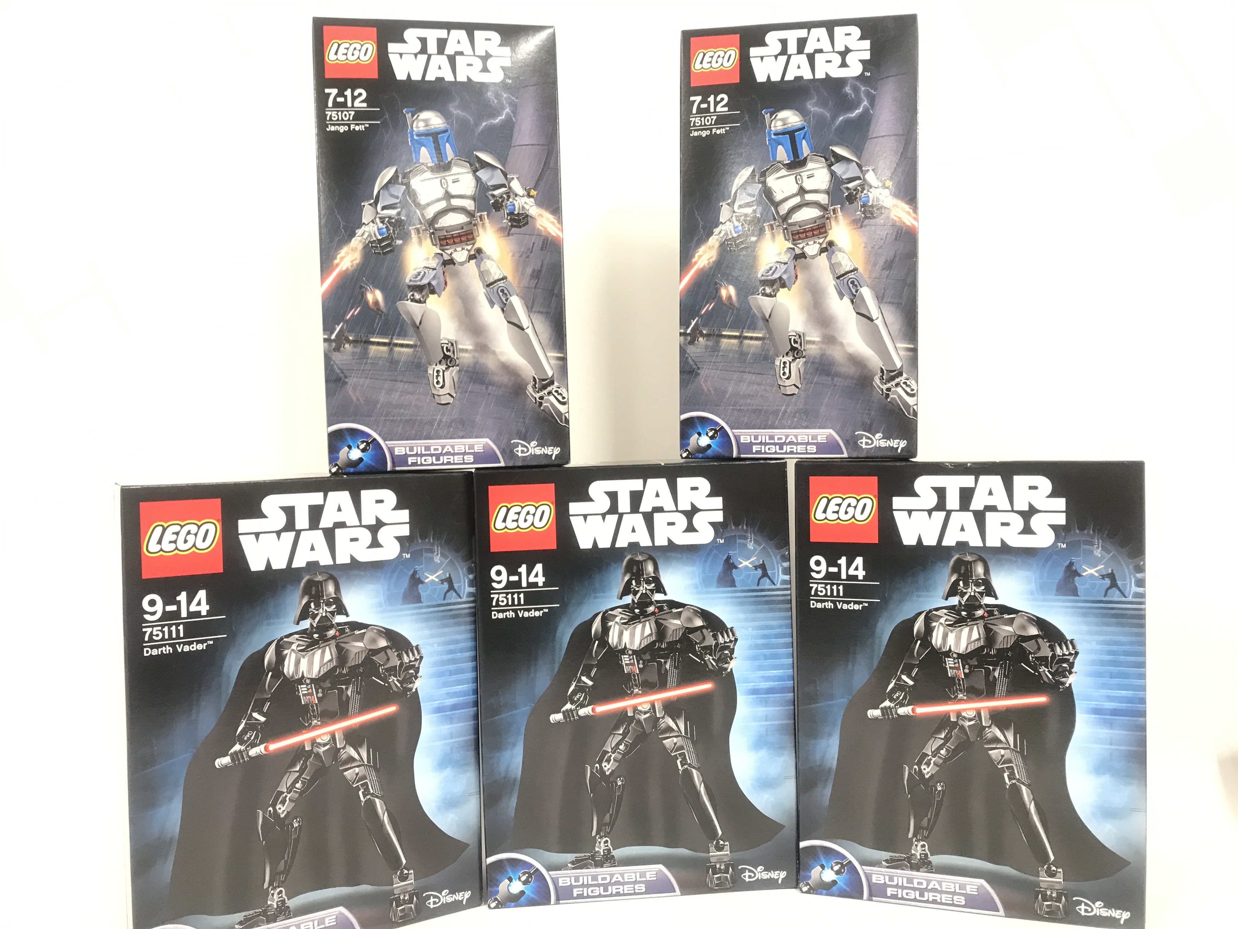 5 X Boxed And Sealed Lego Star Wars building Figures. 3 Darth Vaders and 2 Jango Fetts. #75111 and 75107.