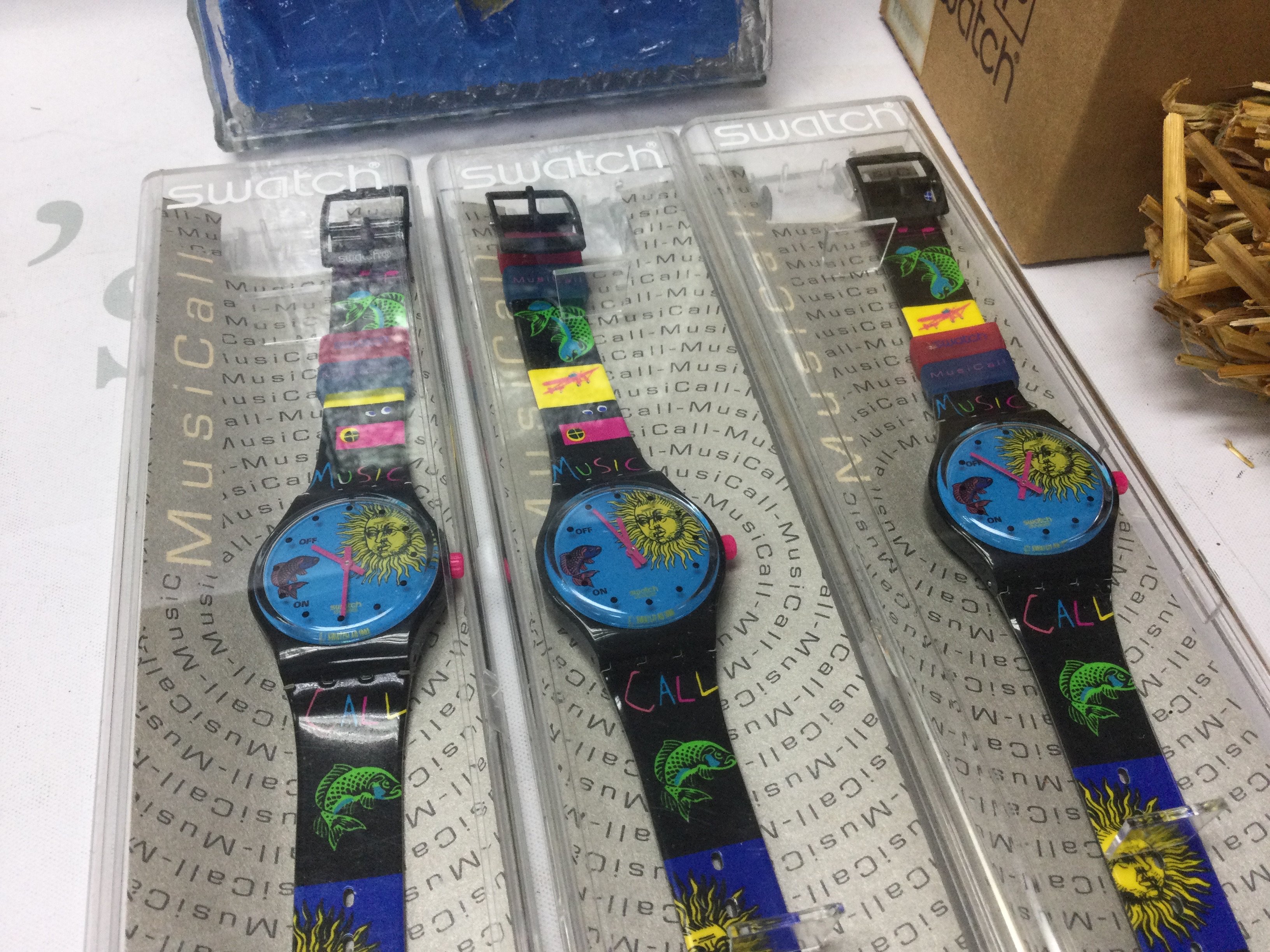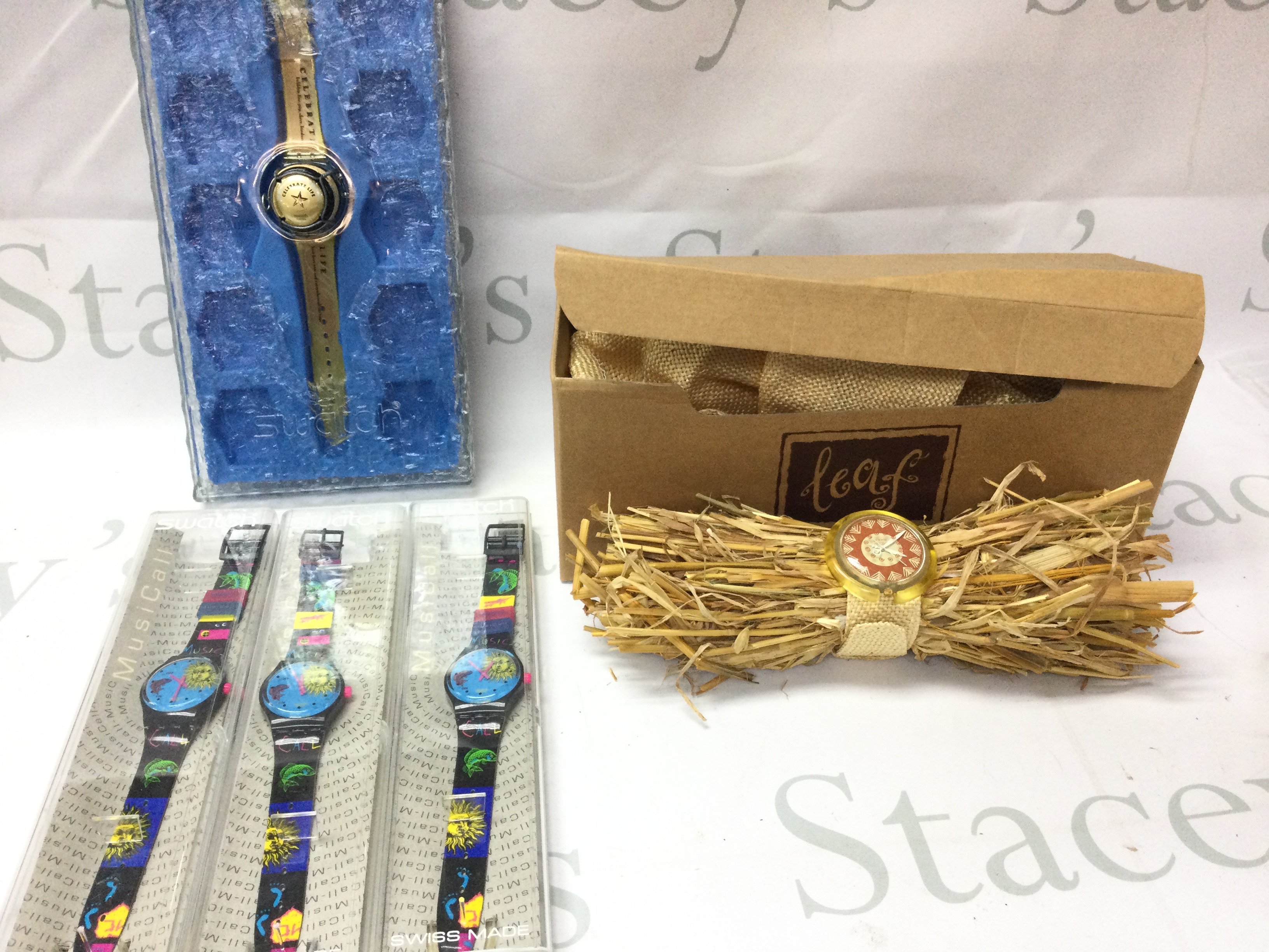 A collection of swatch watches including 1990s leaf and celebrate life swatch etc all with original packaging. Postage B