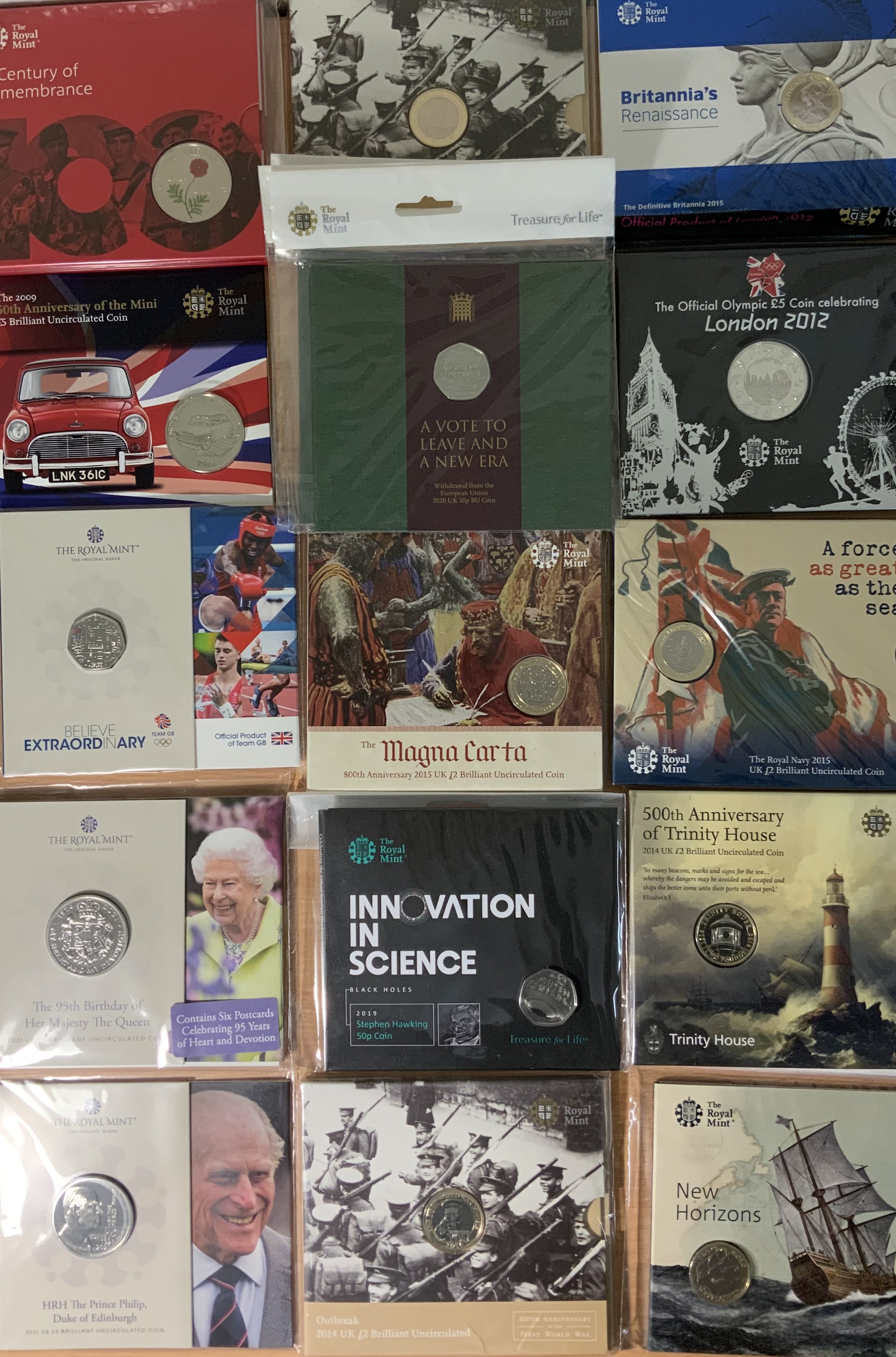 An extensive collection of Royal Mint uncirculated British commemorative coinage.