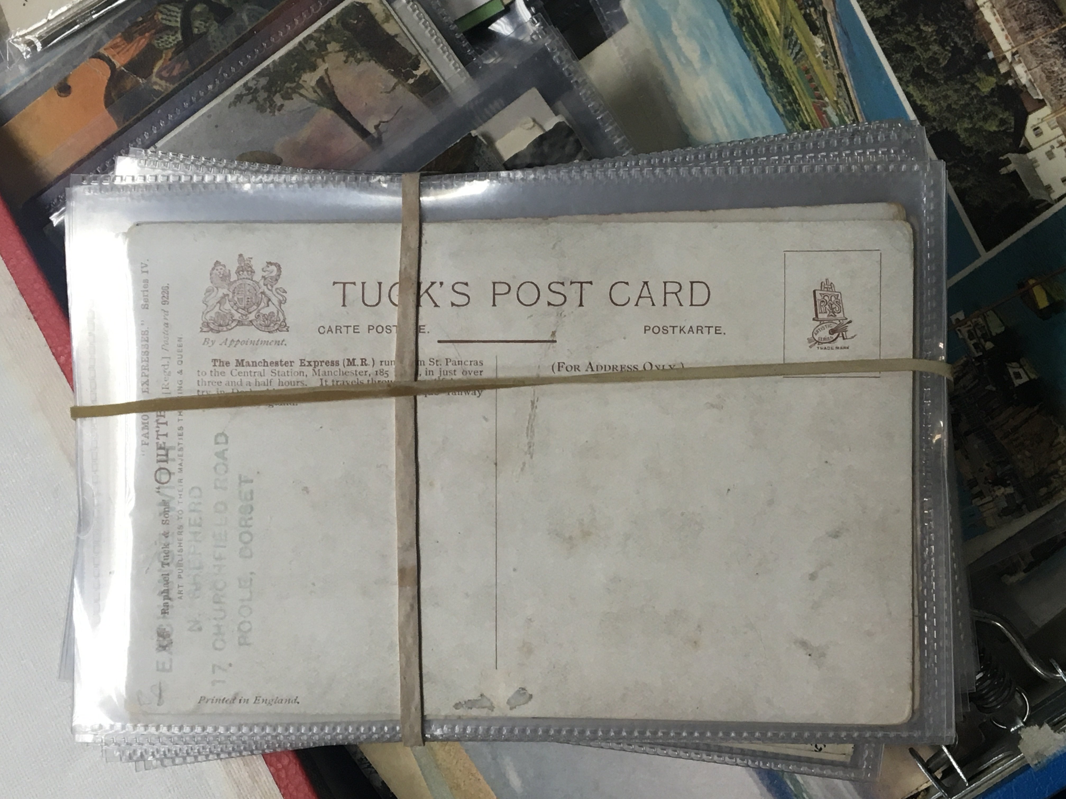Three file boxes containing a large quantity of mixed postcards including a range of Tucks postcards Express locomotives and vintage steam trains and many other post cards (3)