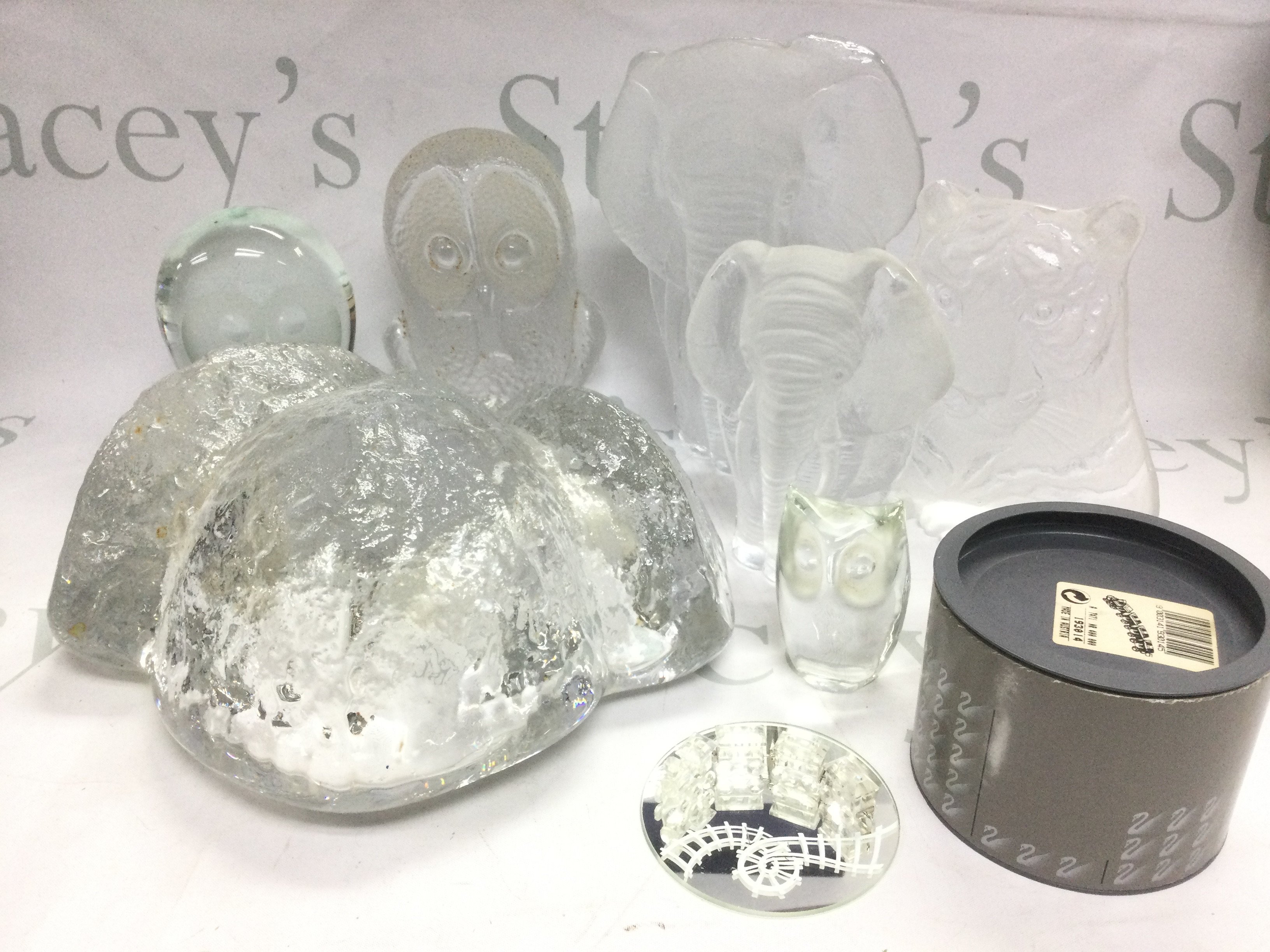 Seven glass sculptures comprising mainly animals plus a Swarovski train (8). Shipping category D.