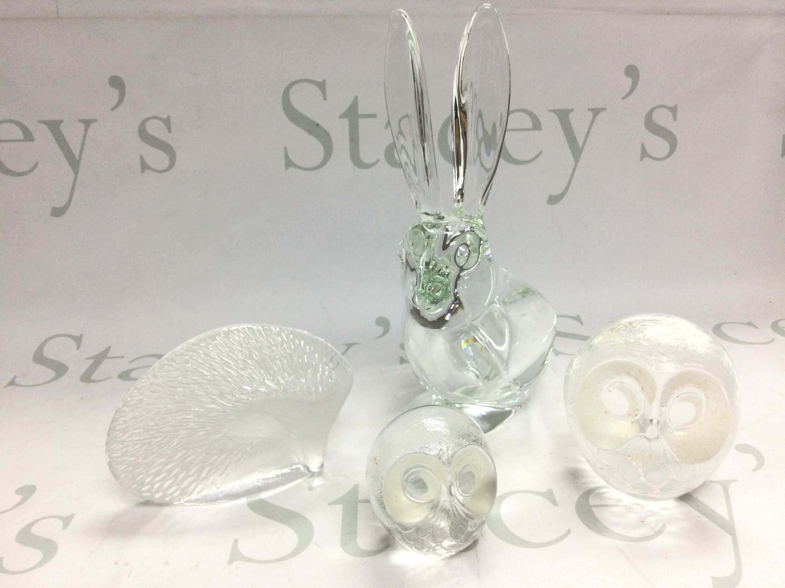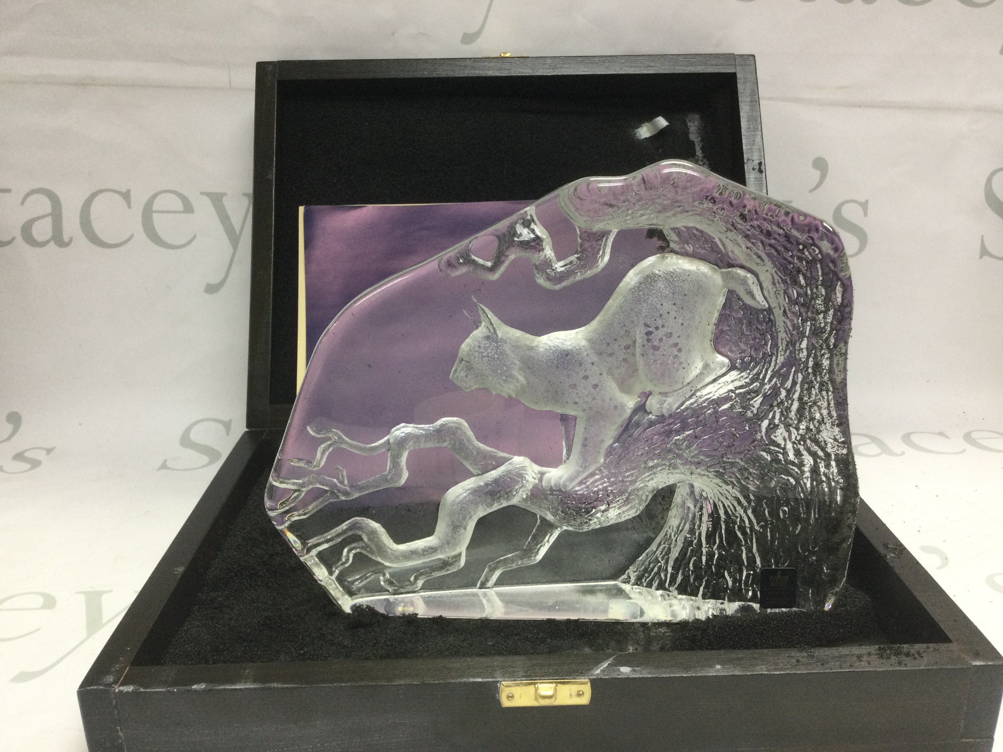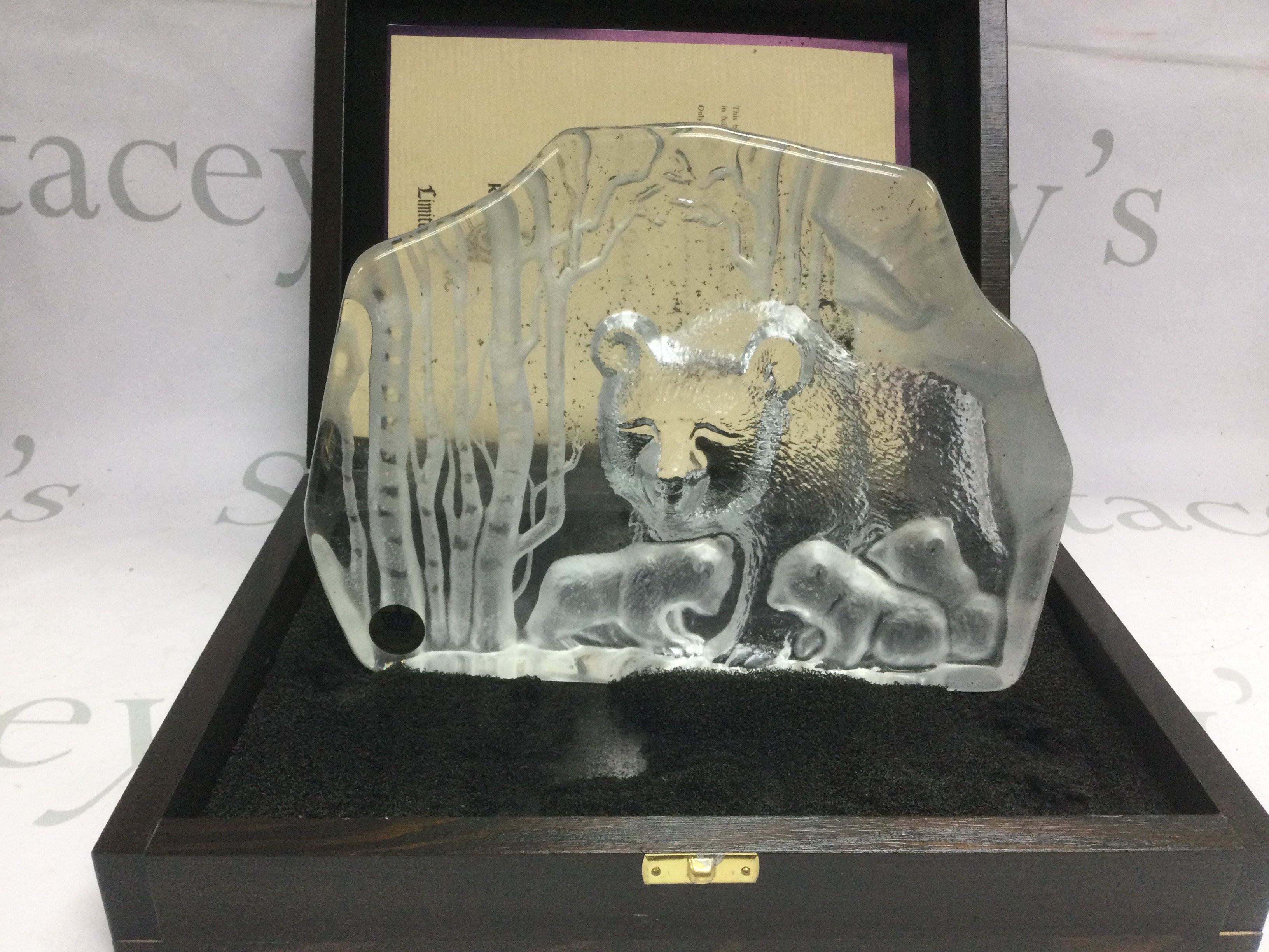 Two boxed limited edition Royal Krona glass sculptures plus four glass animal figures mainly by Mats Jonasson (6). Shipping category D.