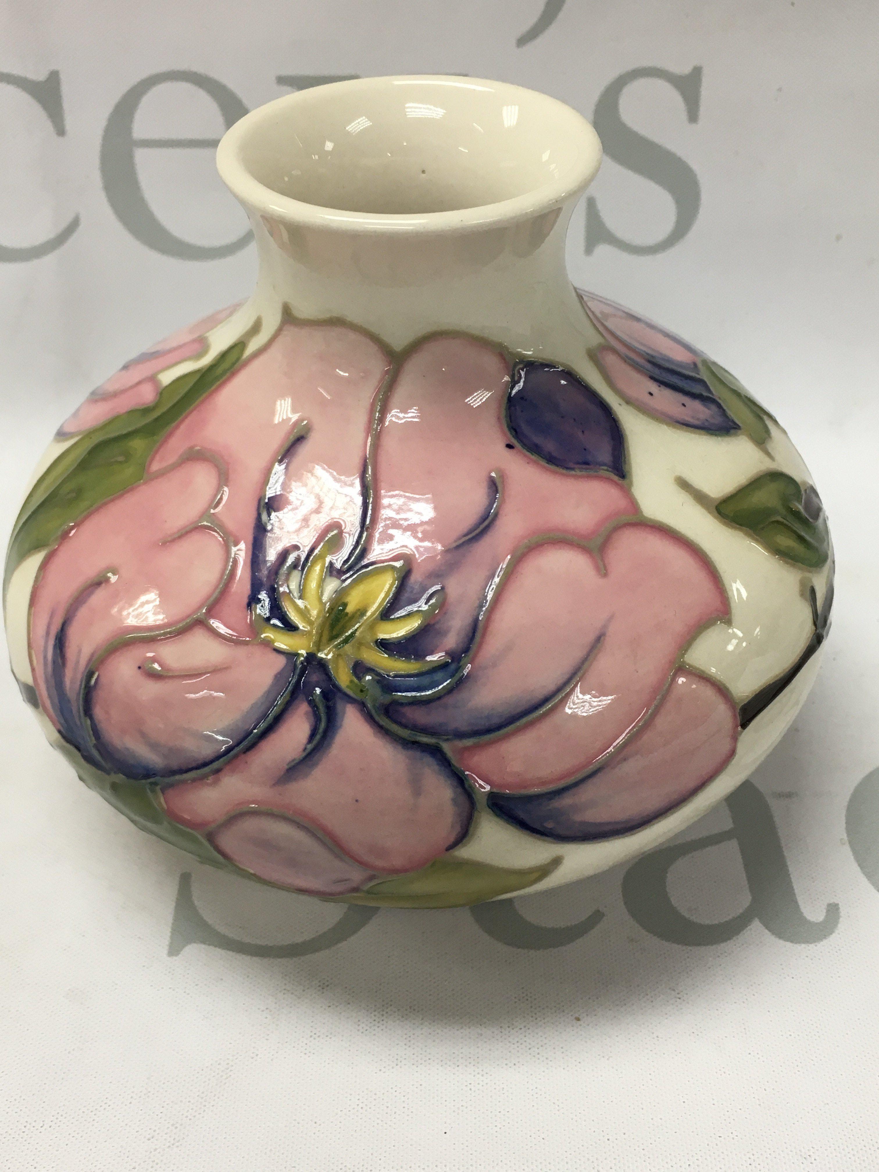A Moorcroft vases decorated with Lily's on a white glazed ground .12 cm .