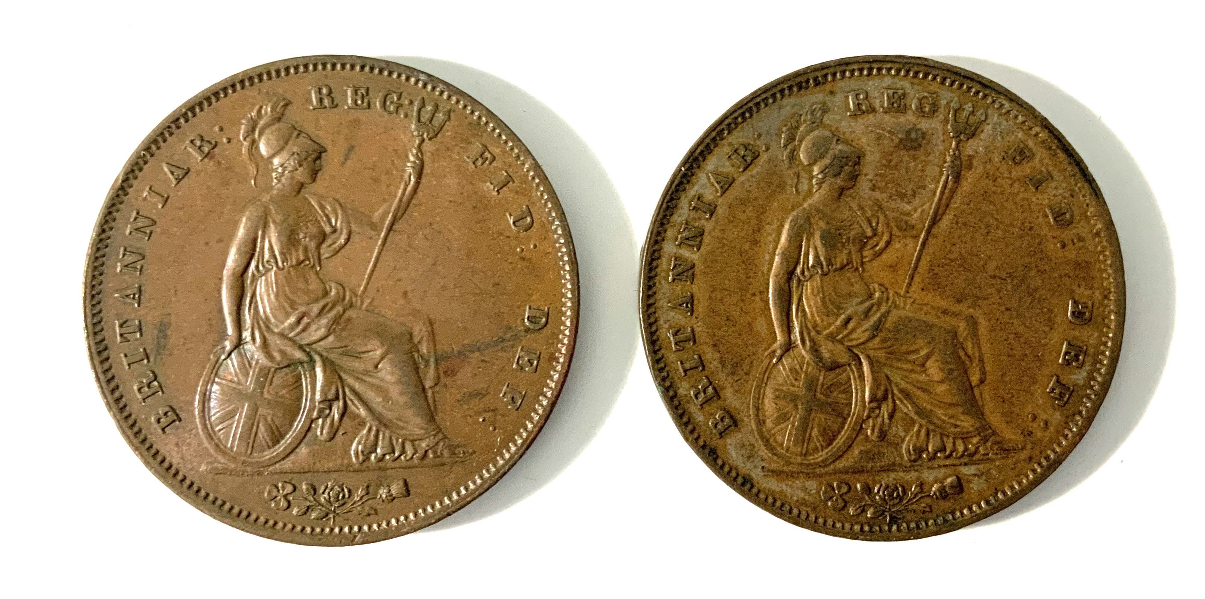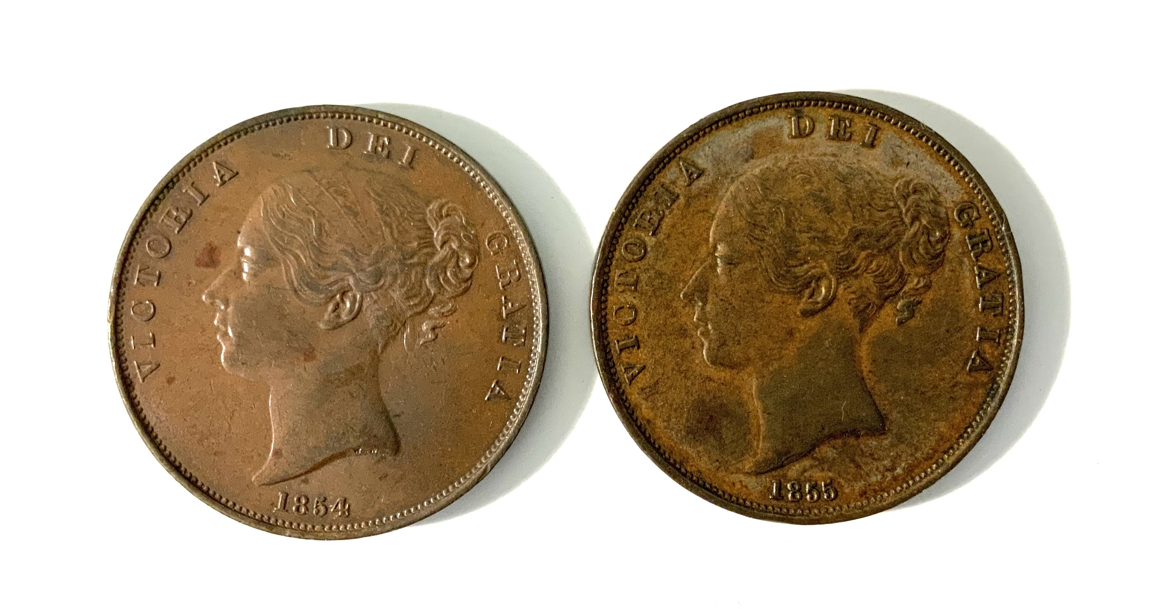A young head 1854 Victoria penny, good definition VF+ / A young head 1855 Victoria penny, good definition VF.