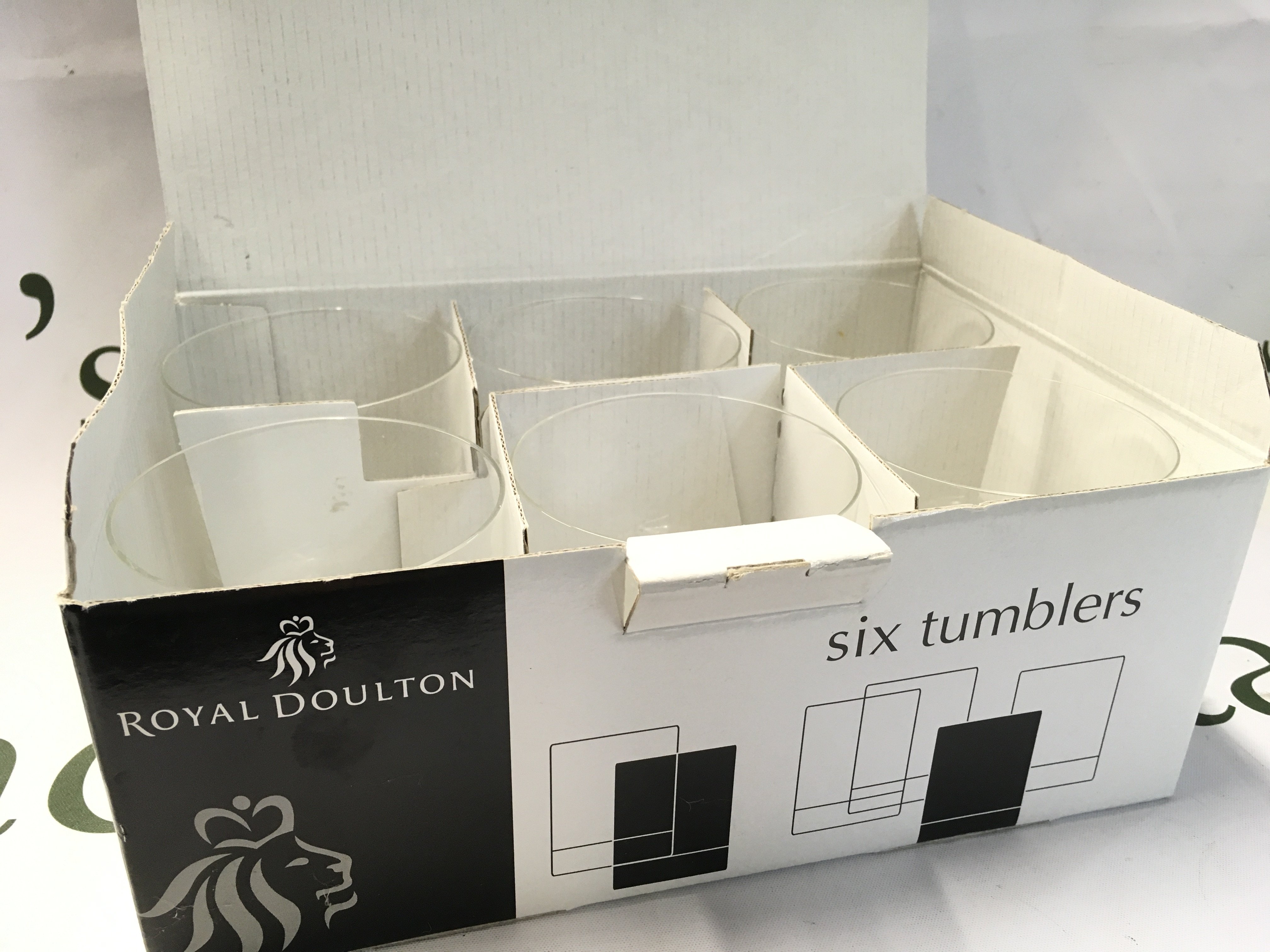 Boxed Da Vinci cut glass and Royal Doulton tumblers , this lot cannot be posted
