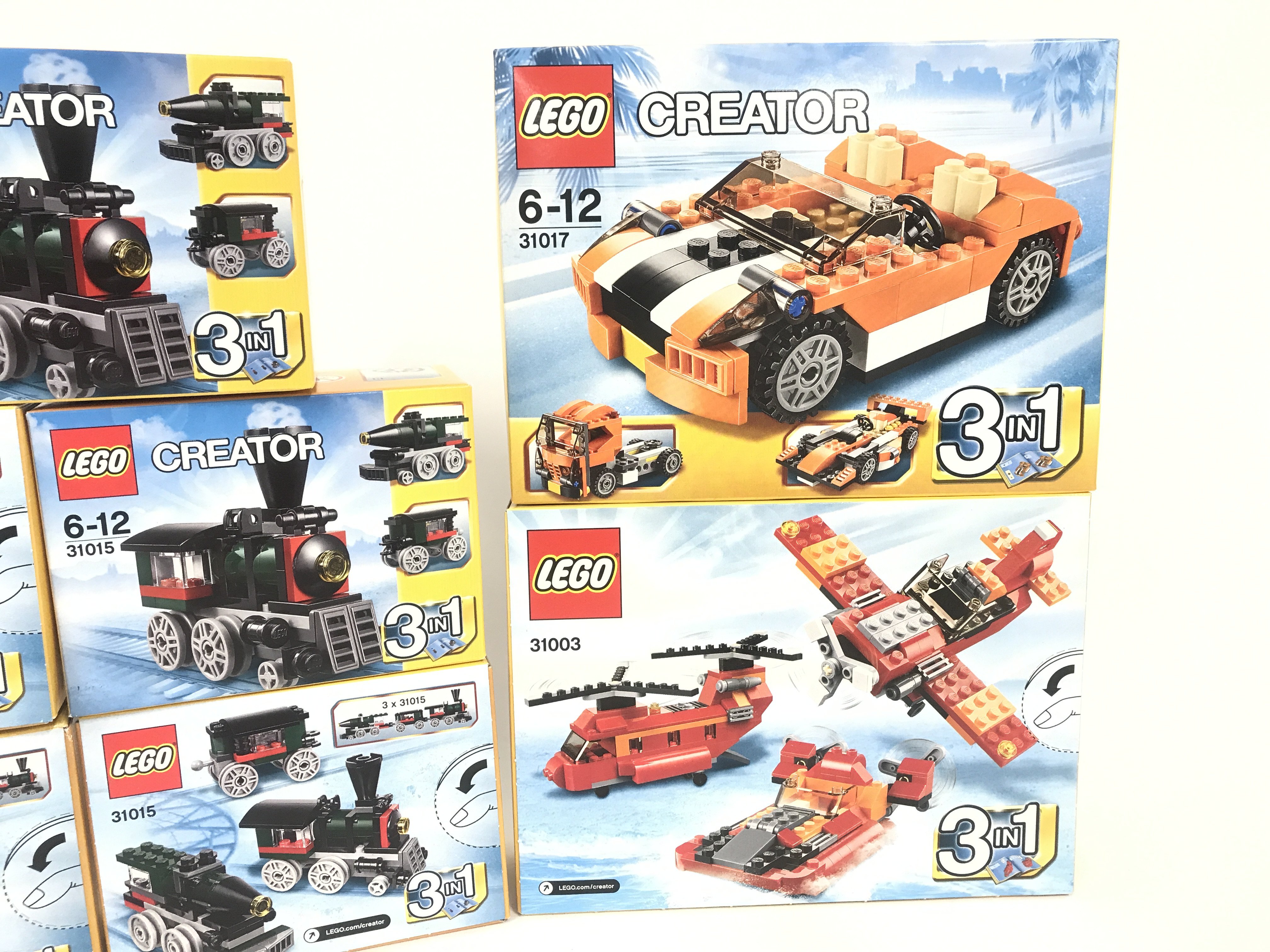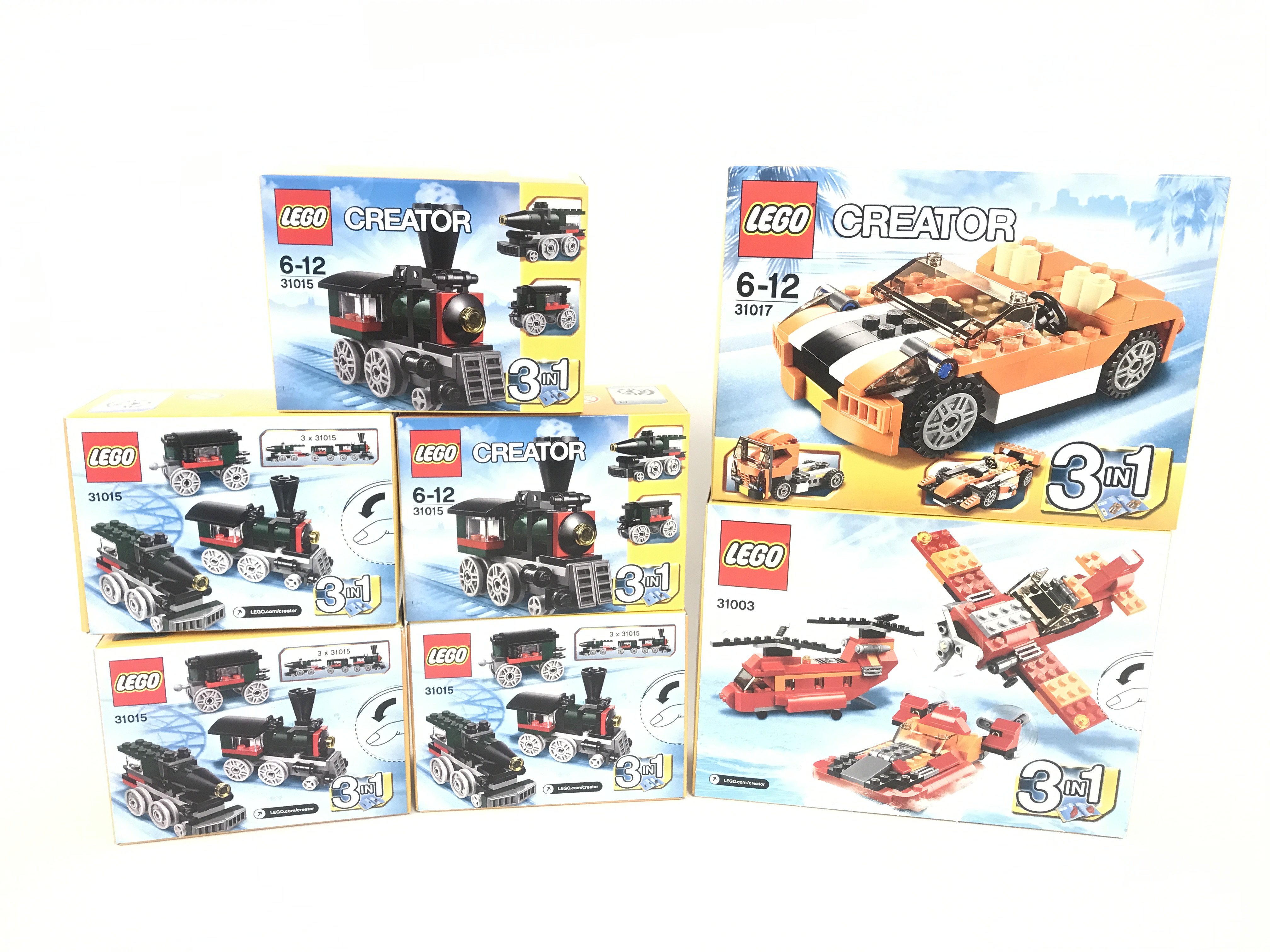 5 X Boxed And Sealed Lego Emerald Express. a Lego Creator Sunset Speeder #31017 and A Red Rotors #31003.