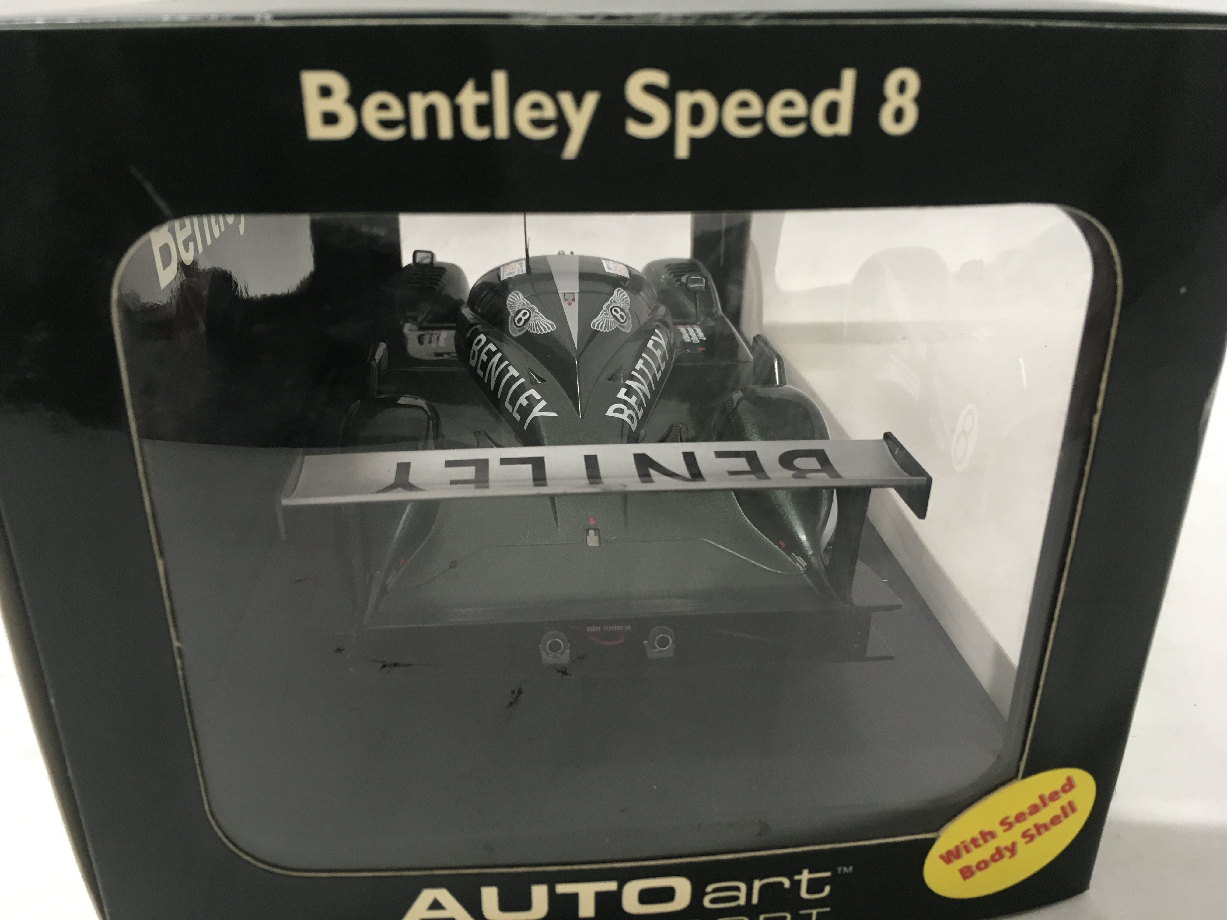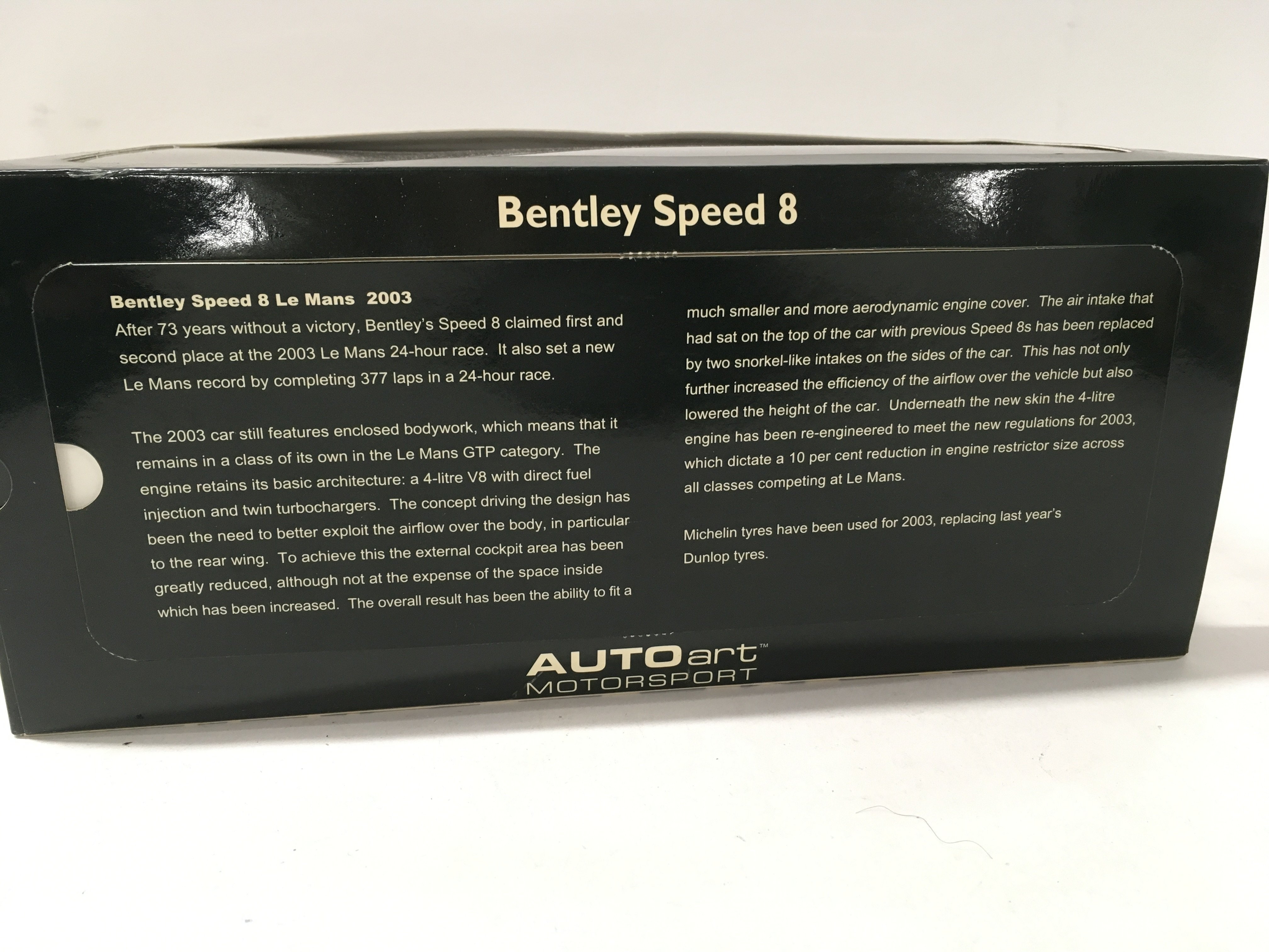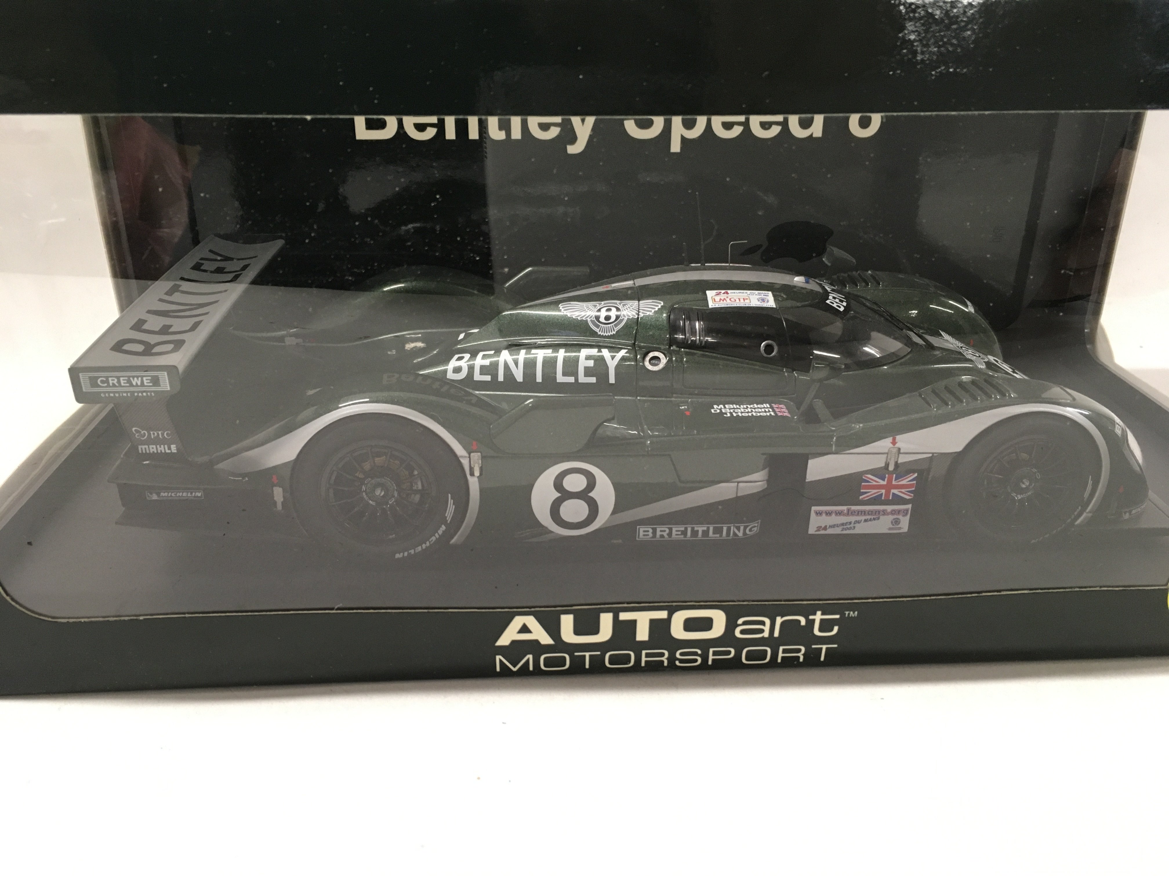 2x Autoart motorsport models includes boxed Bentley Speed 8 Le Mans 2003 with green livery.. Also unboxed Porsche 917K Martini Kyayami no2 in vivid yellow livery. No reserve