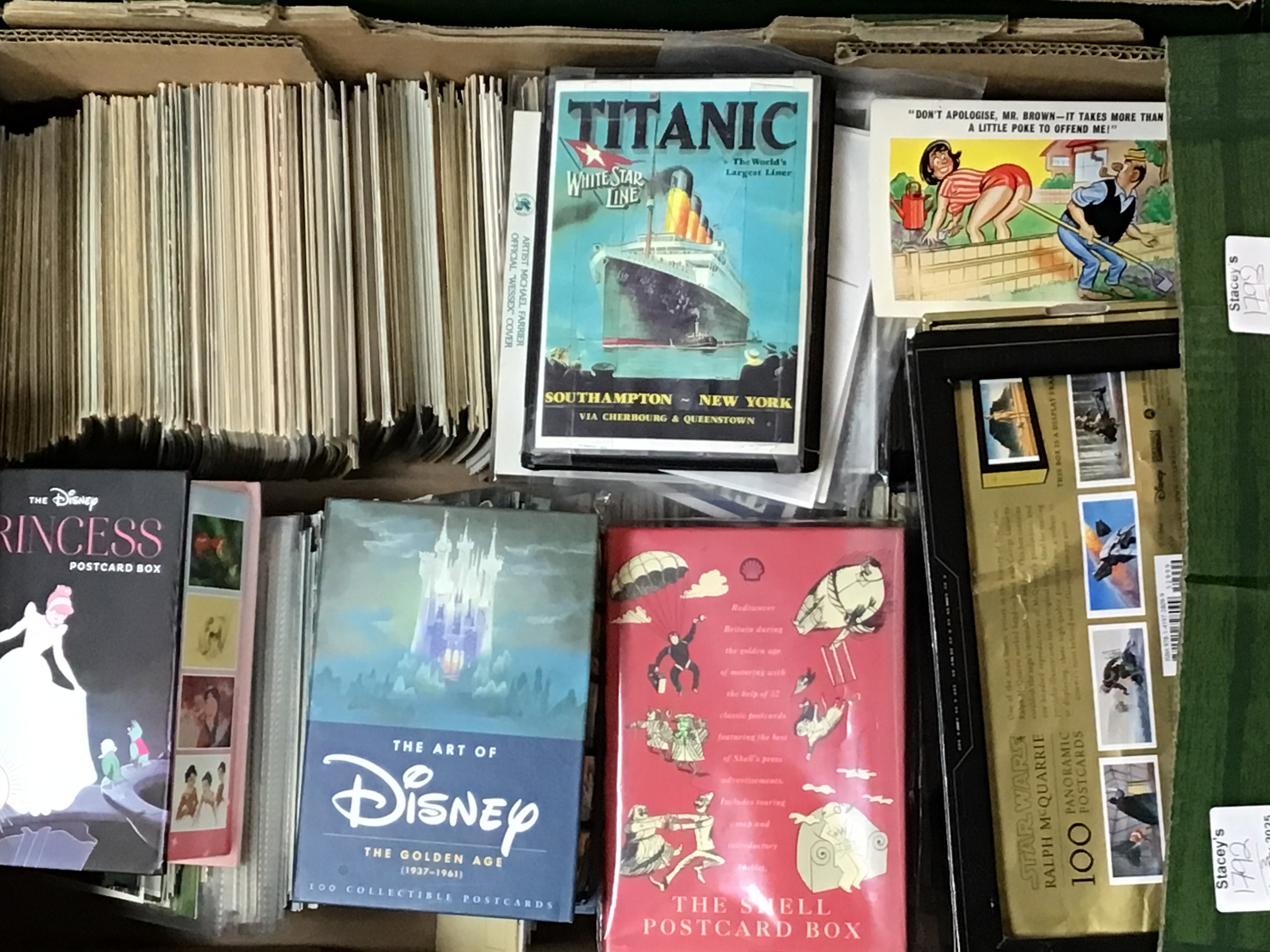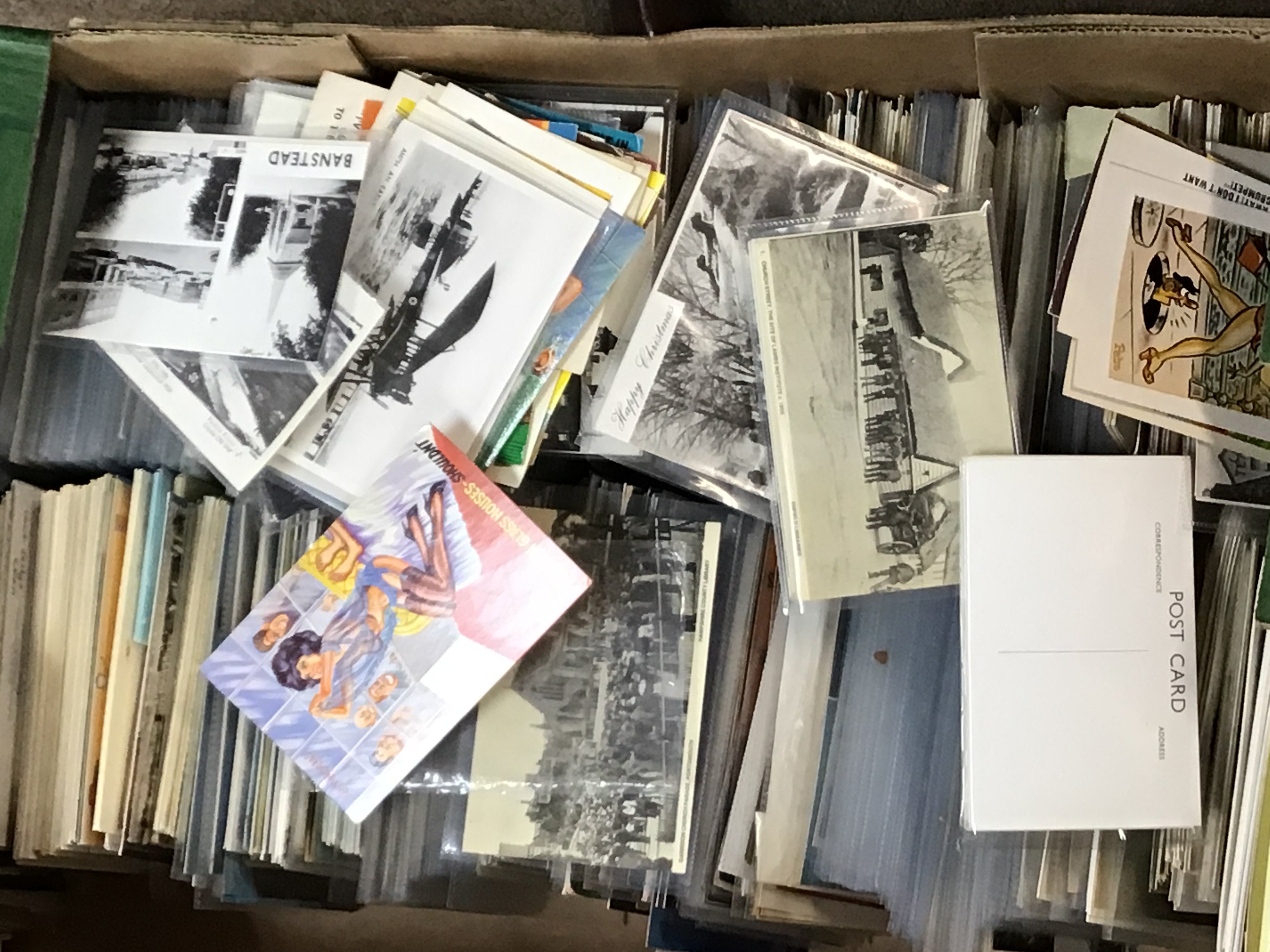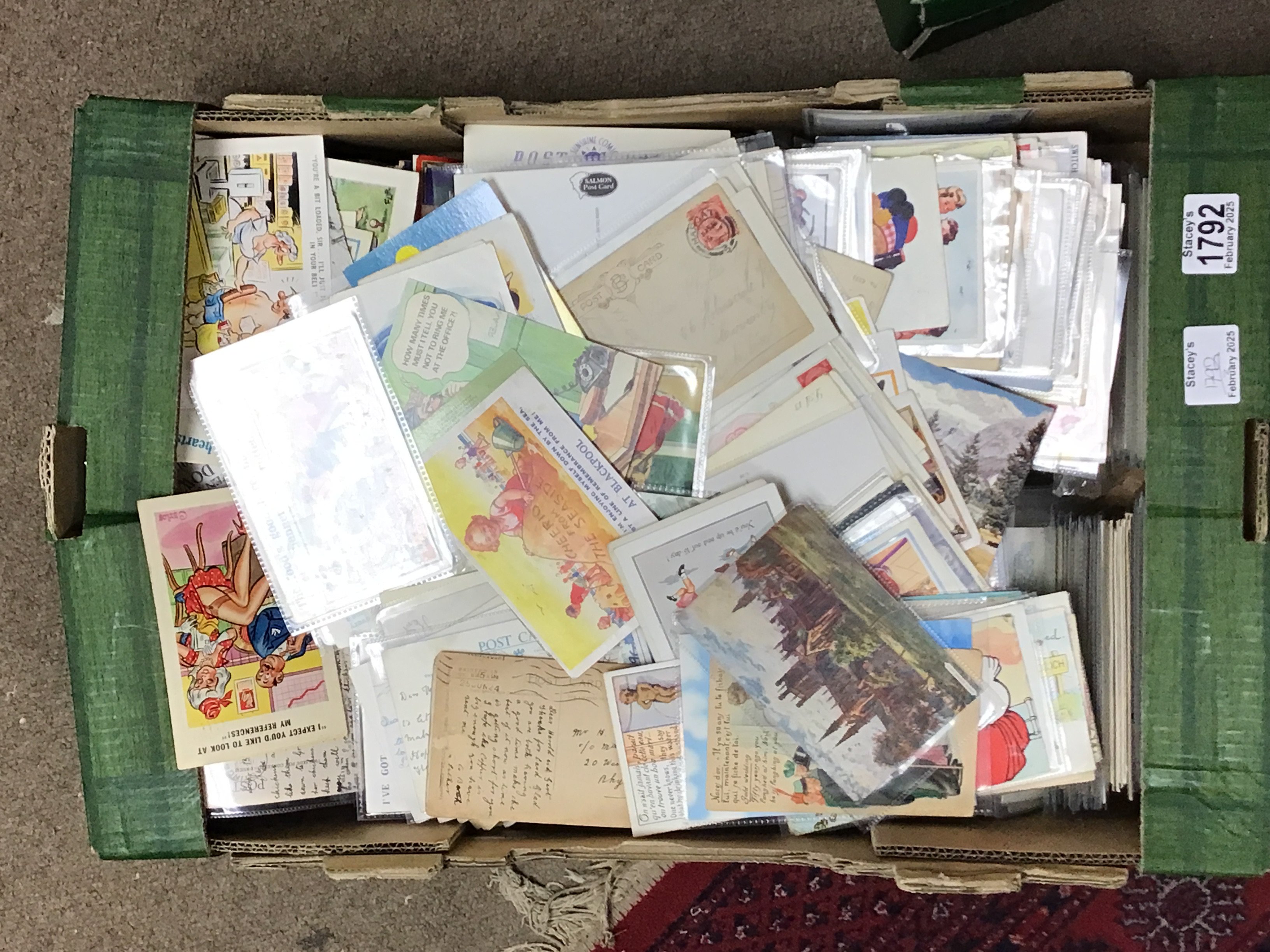 Three boxes Containing a good selection of vintage and comical post cards including some retrospective copys.