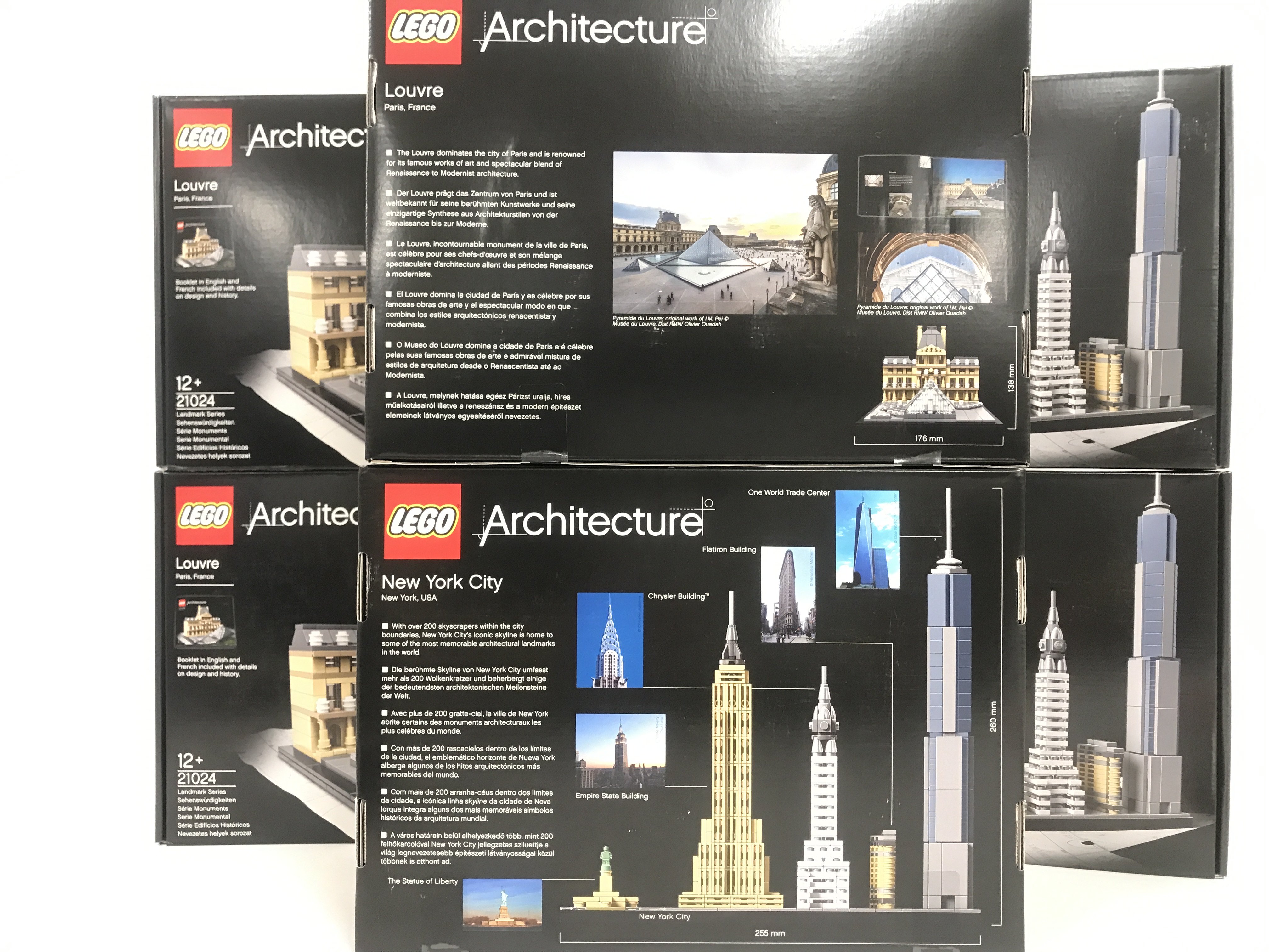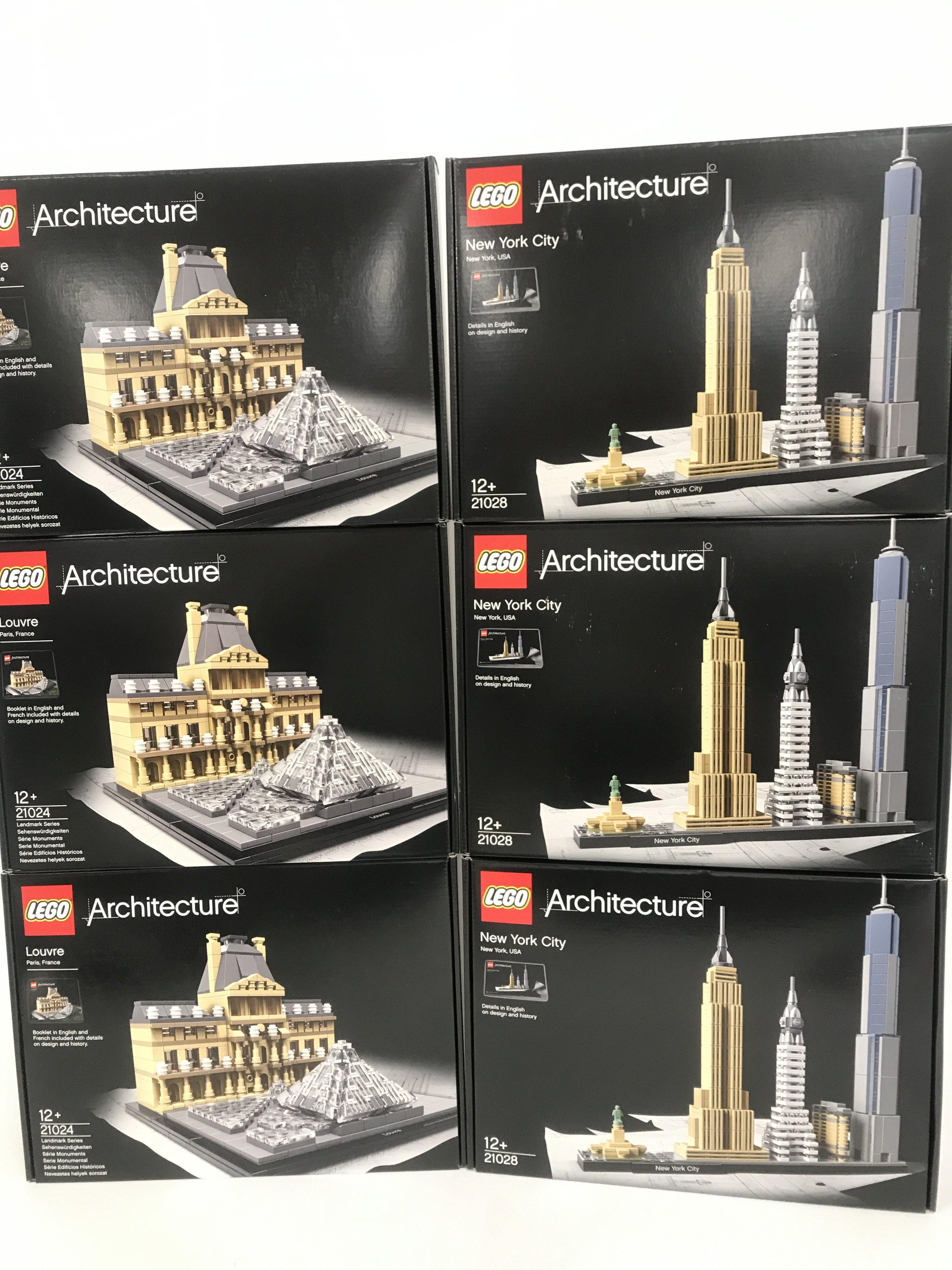6 X Boxed And Sealed Lego Architecture Sets Louvre #21024 and New York City Skyline #21028.