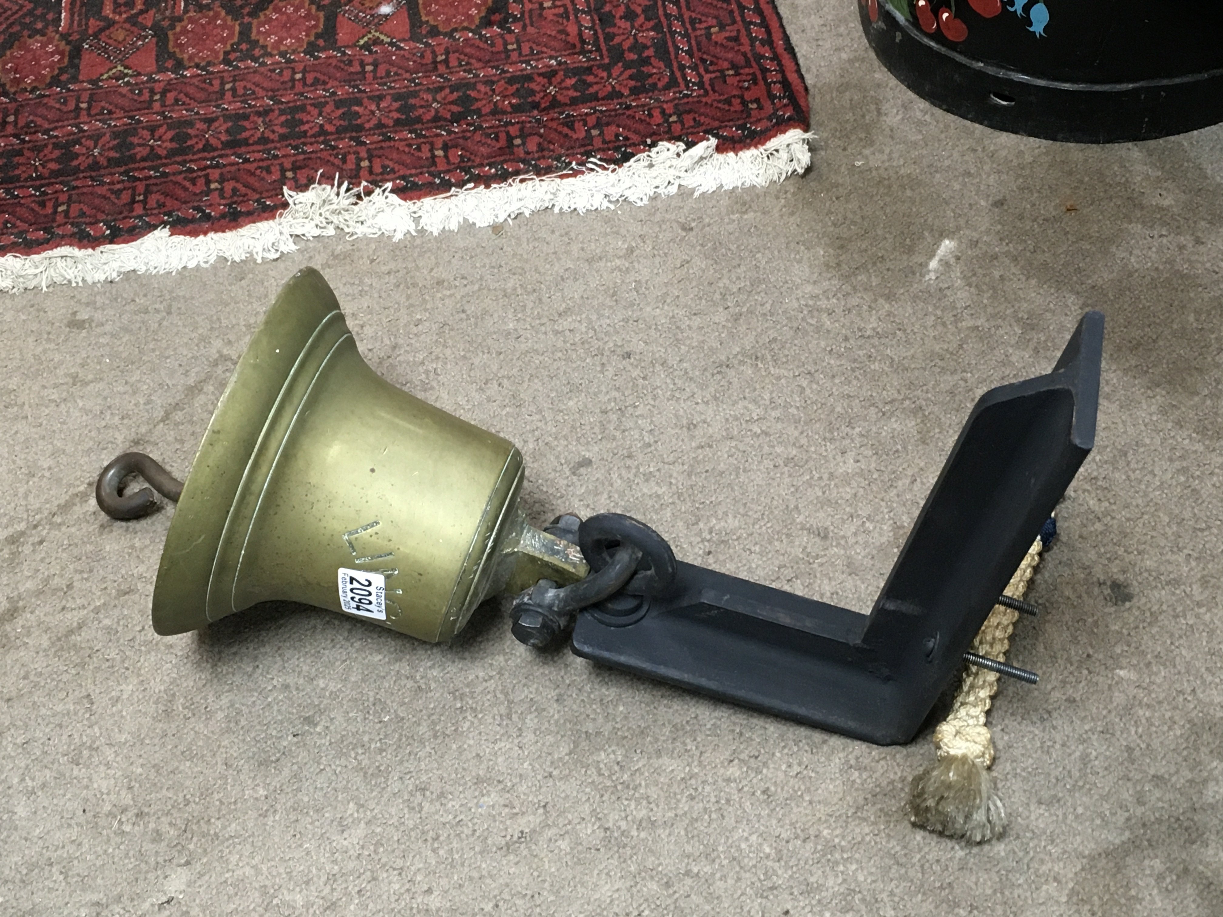 A brass Lincoln bell with a bracket, 20cm tall. Postage category C
