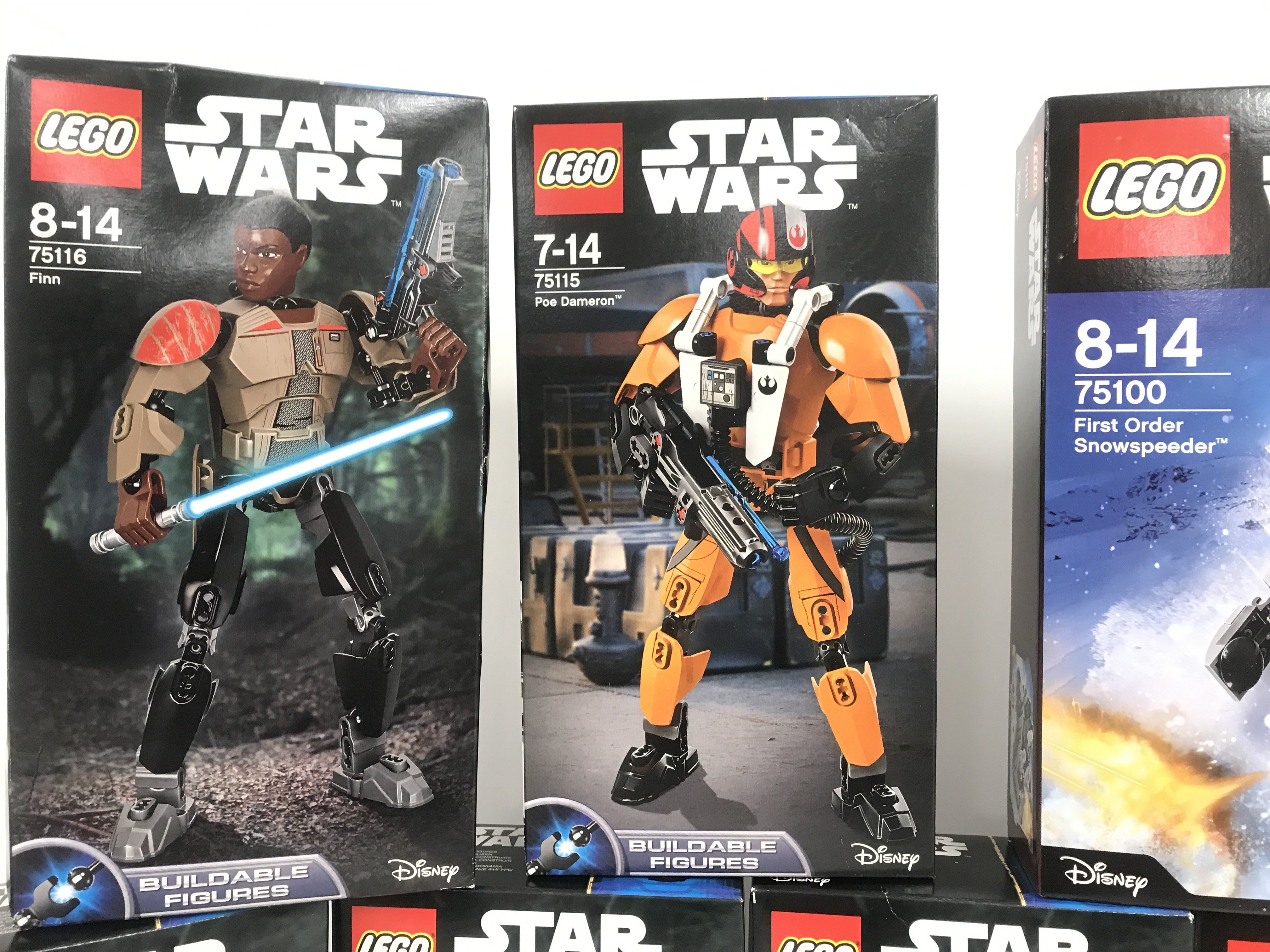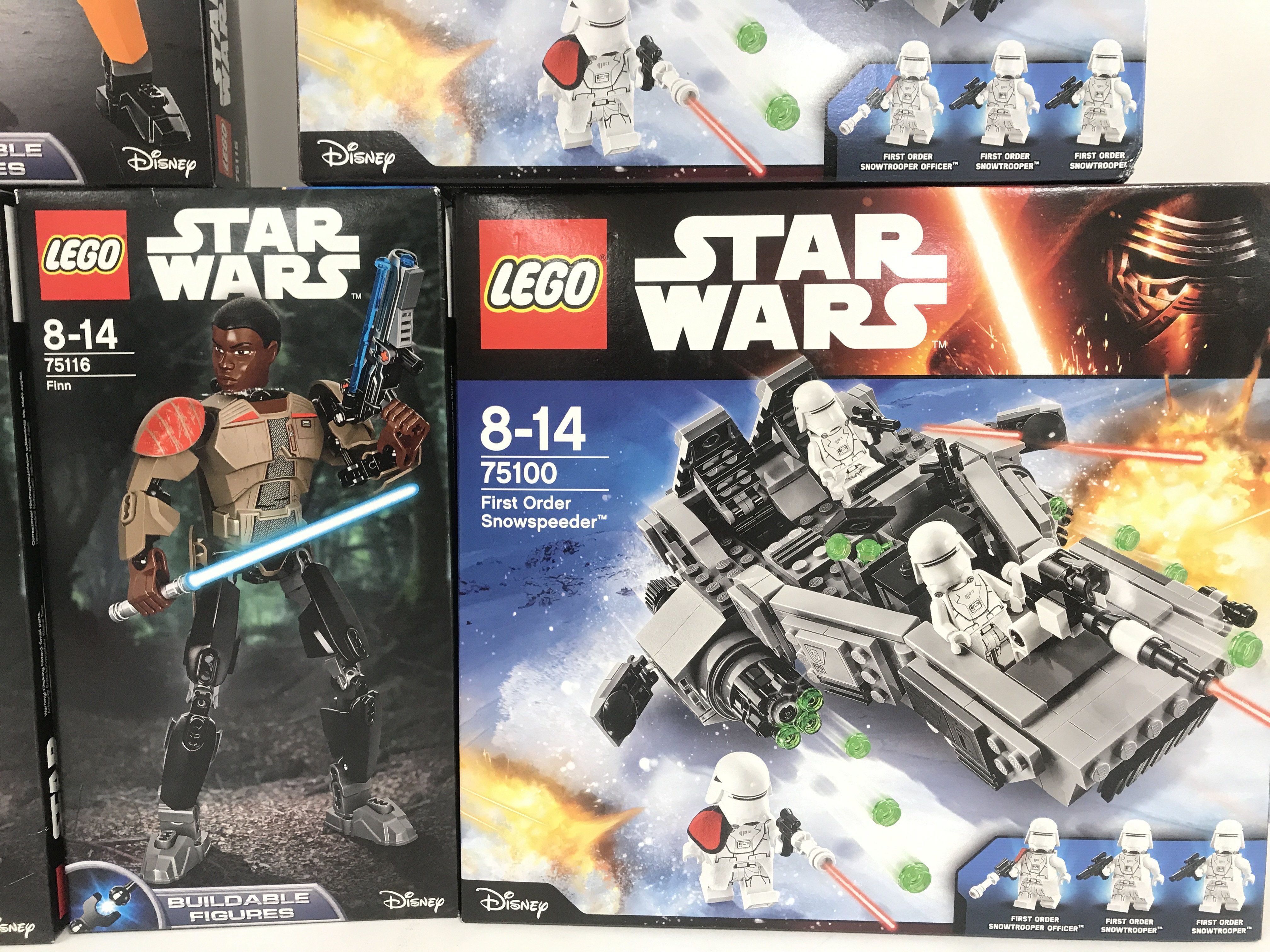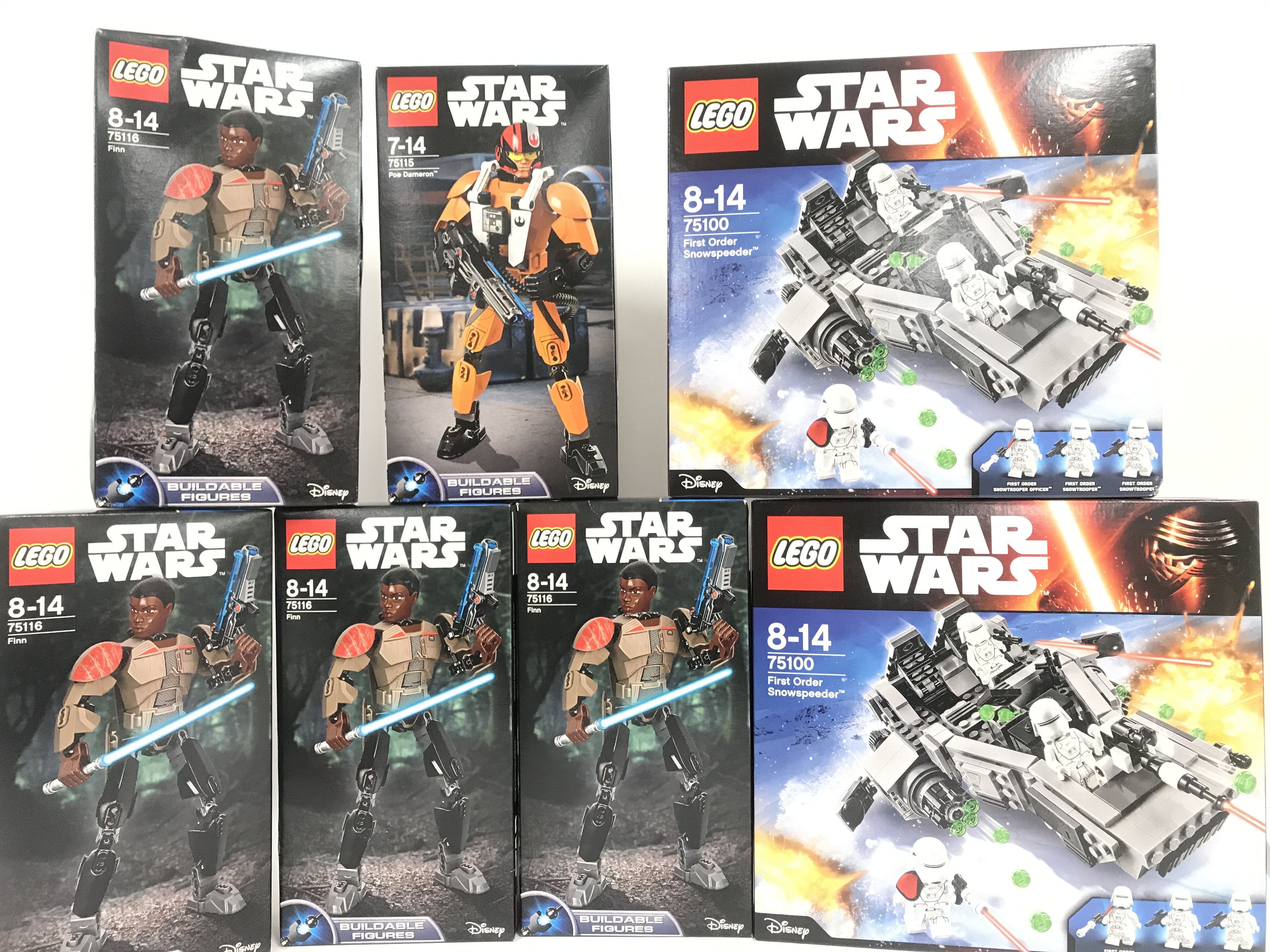 5 X Boxed And Sealed Lego Buildable Figures. Finn #75116 Poe Dameron #75115 and 2 First Order Snowspeeders #75100.