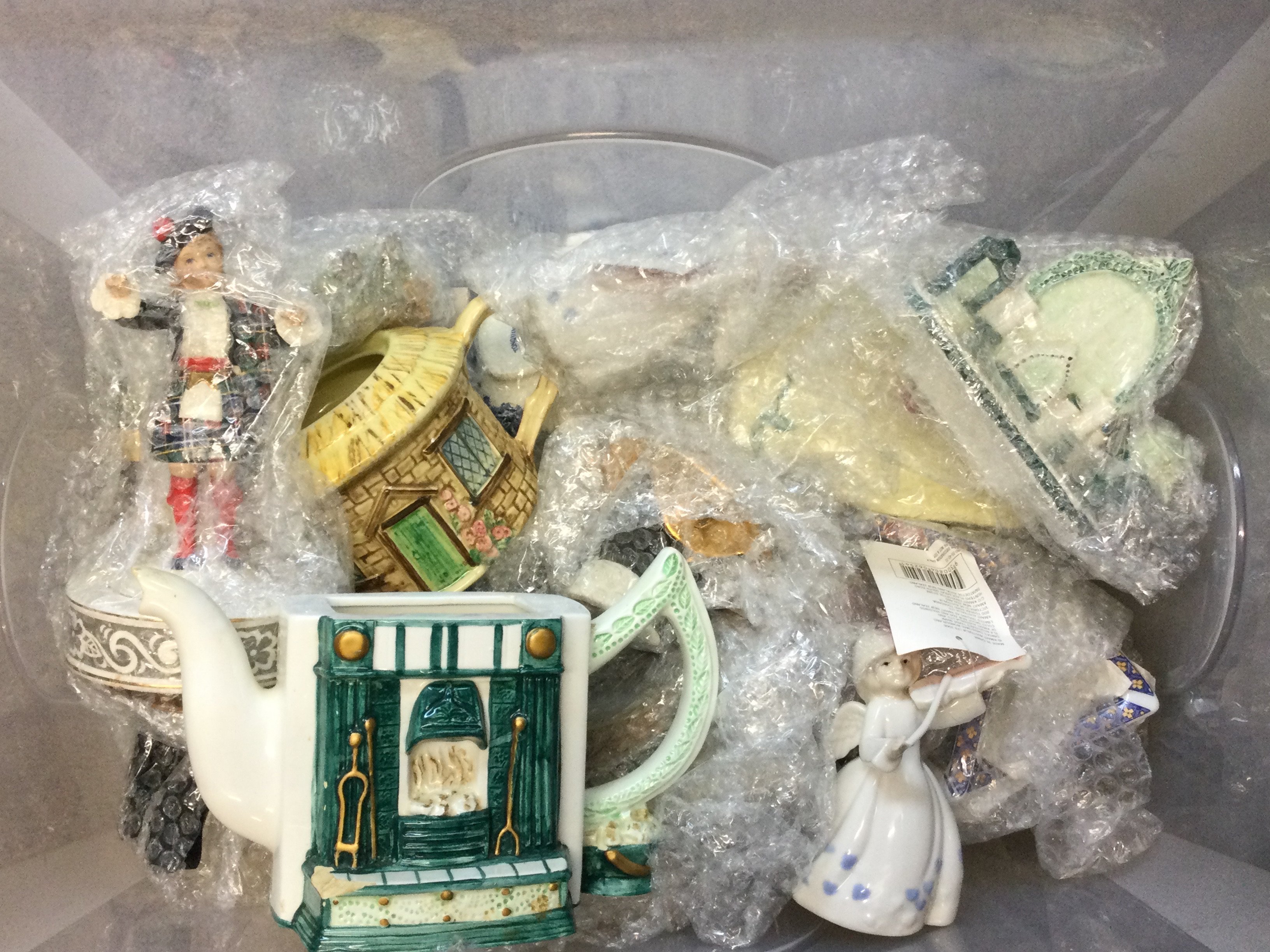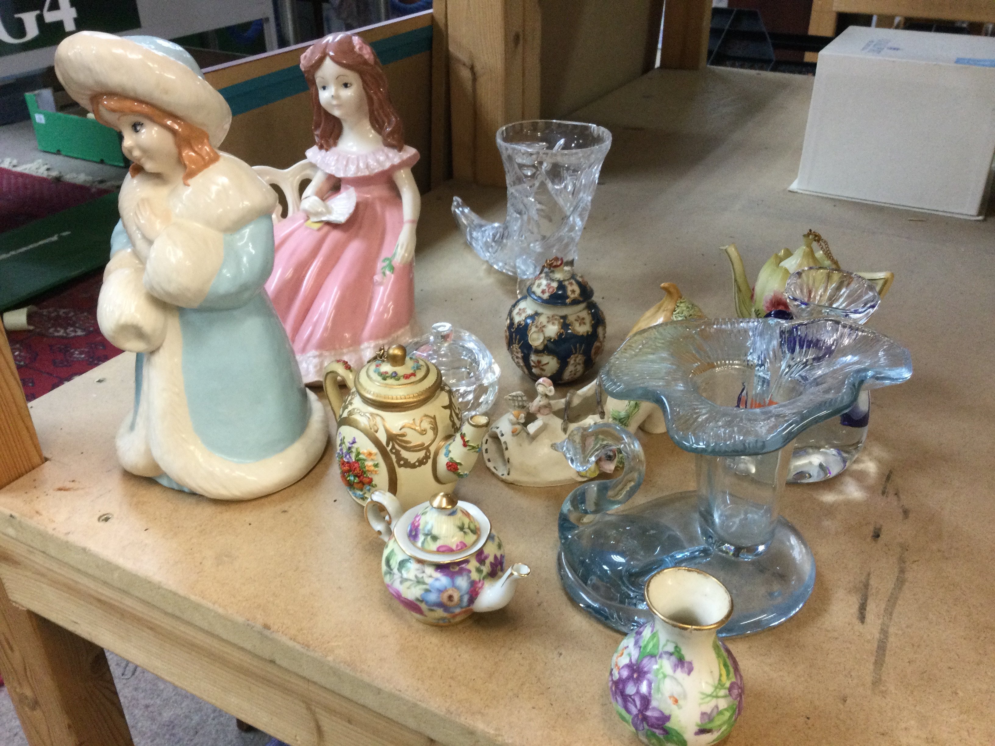 Three boxes of ceramics including Coalport , Royal Albert etc flower vases, ceramic animal figures, porcelain figures etc