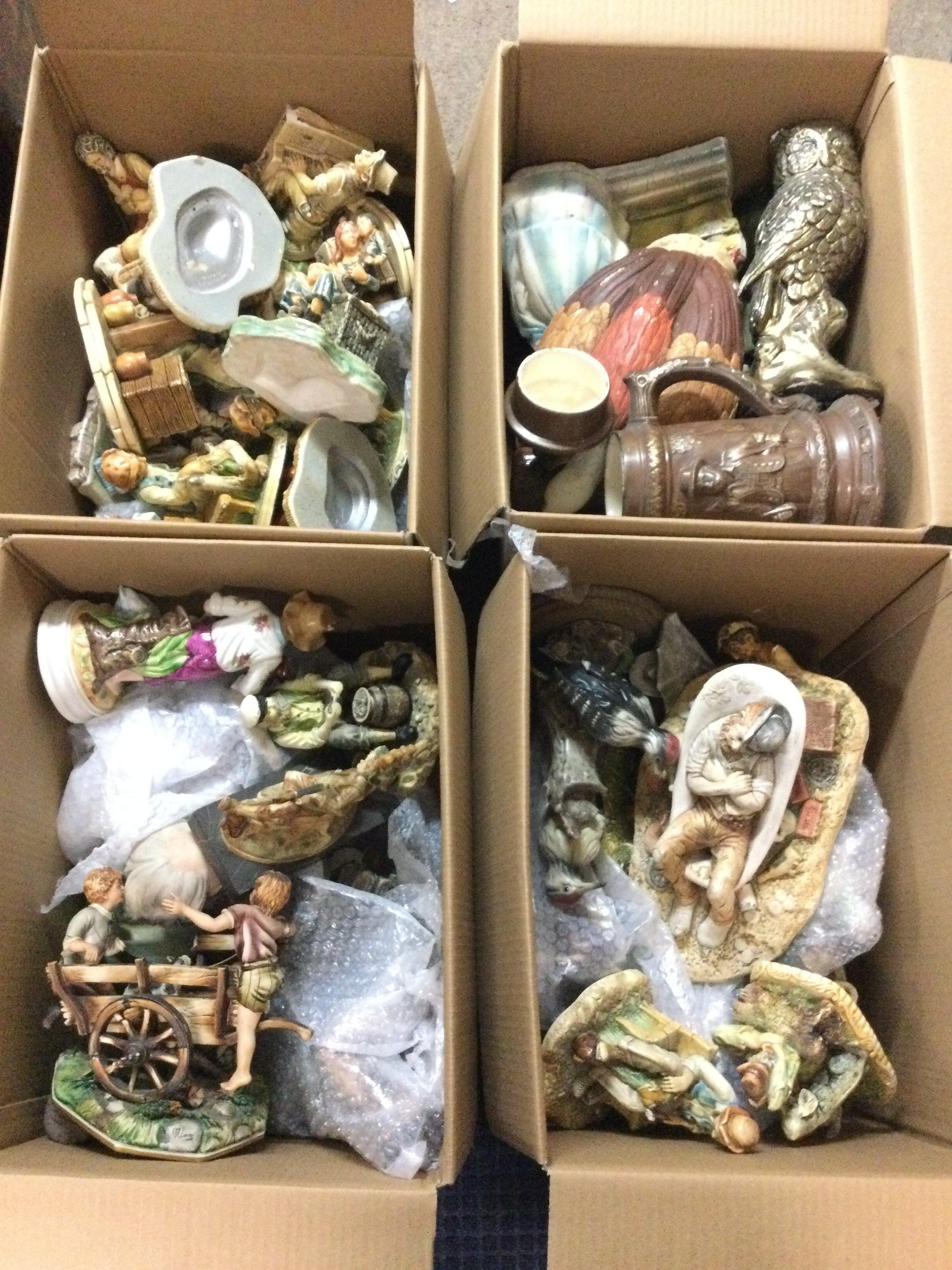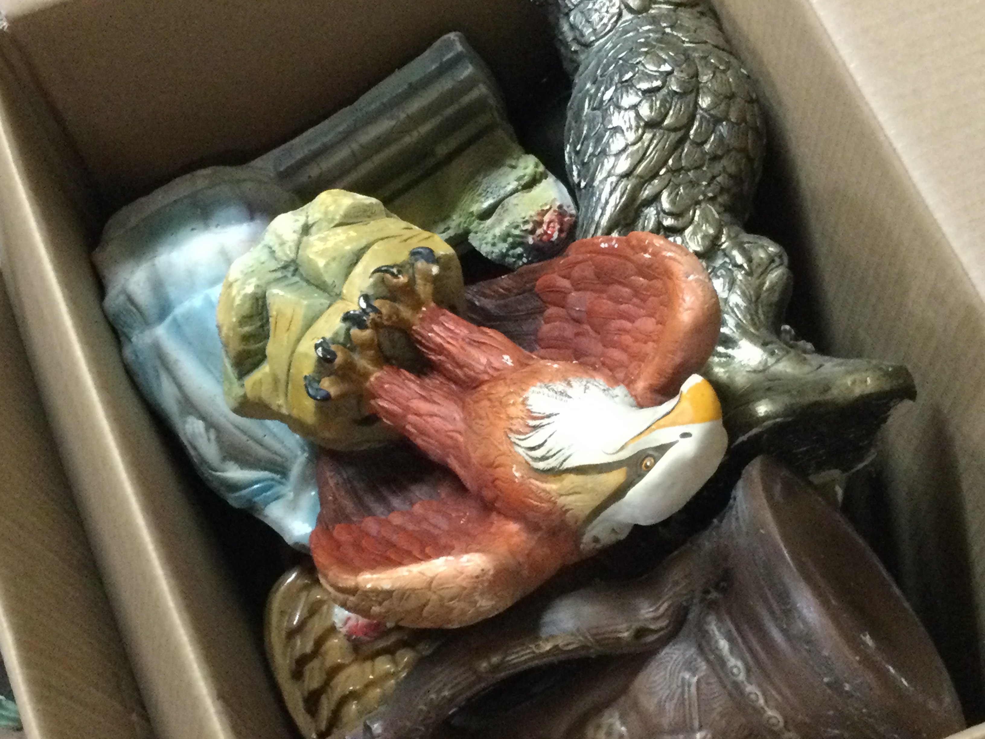 Four boxes of various ceramics including Congleton , eagle figure etc . This lot cannot be posted