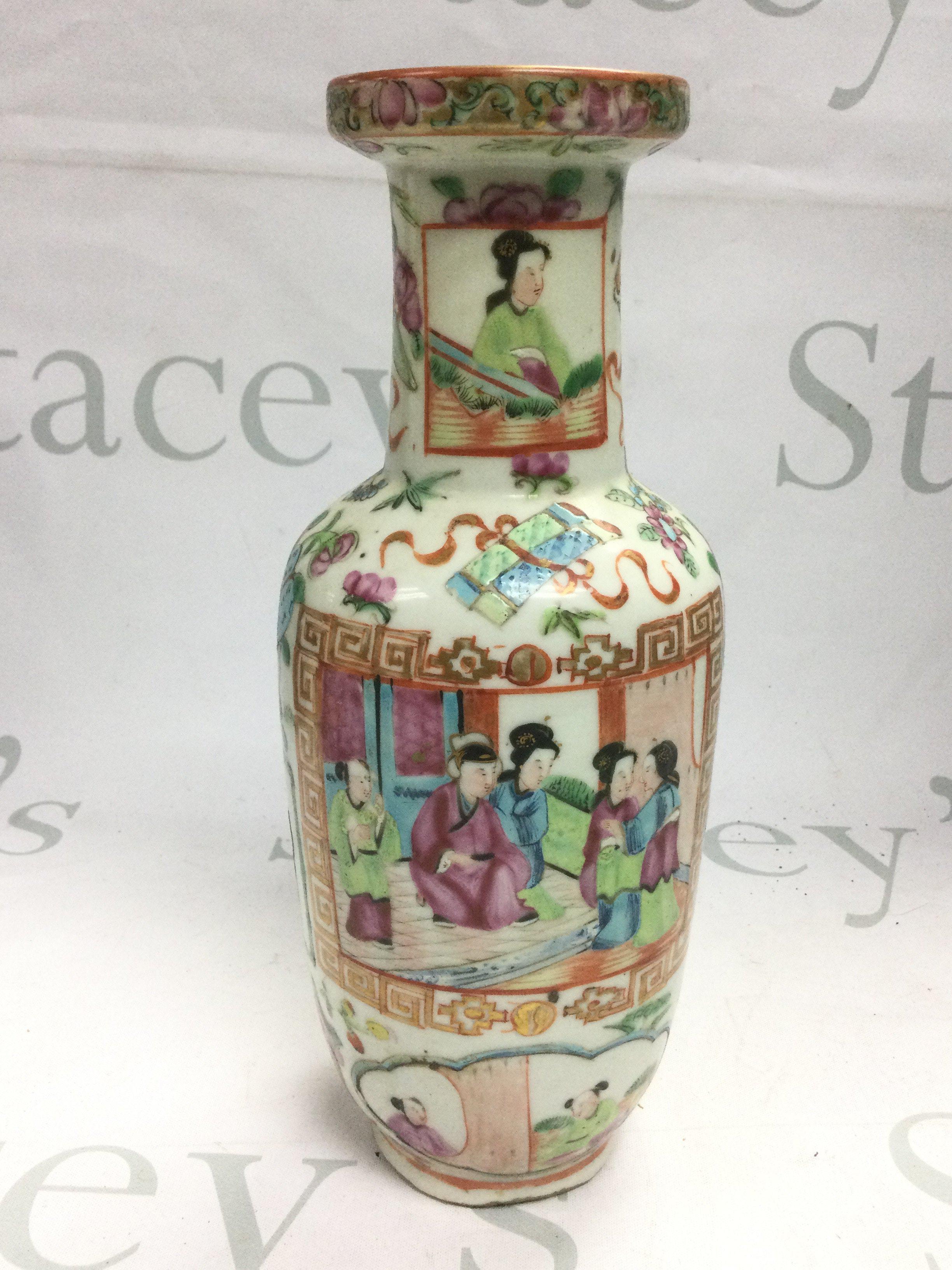 A Cantonese vase with handpainted figures, approx height 23.5cm. Shipping category D.