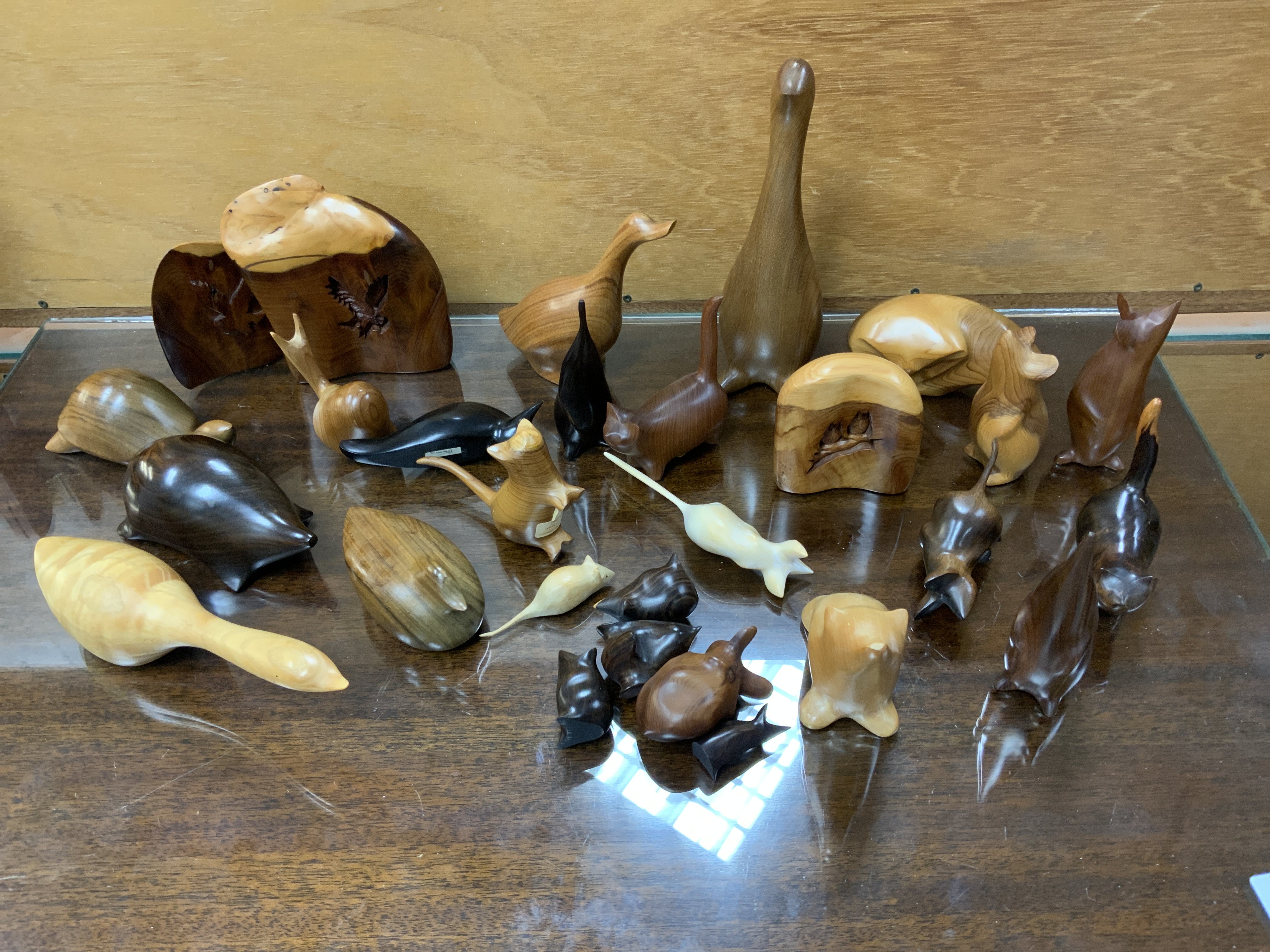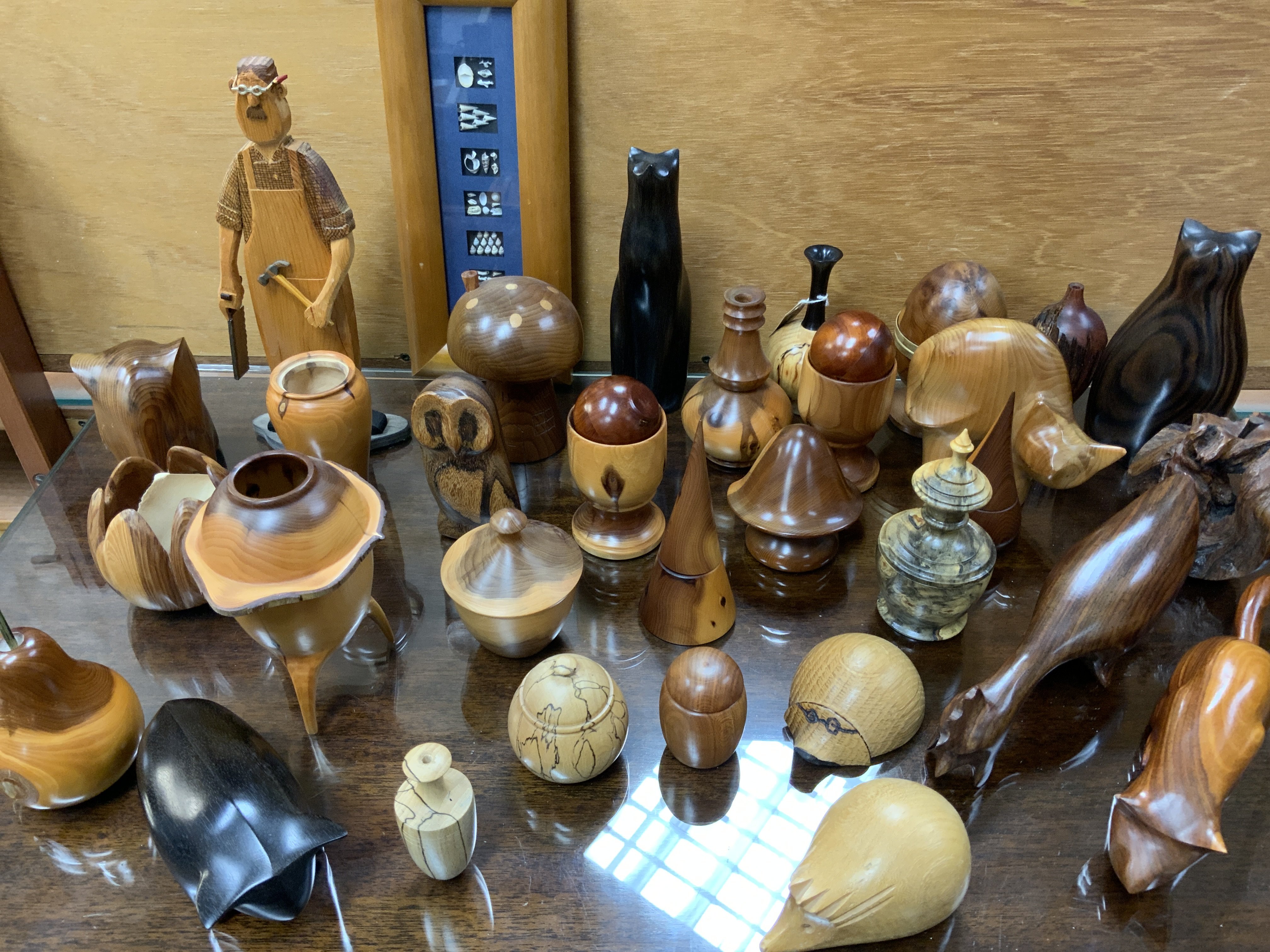 An extensive collection of carved treen ornaments.