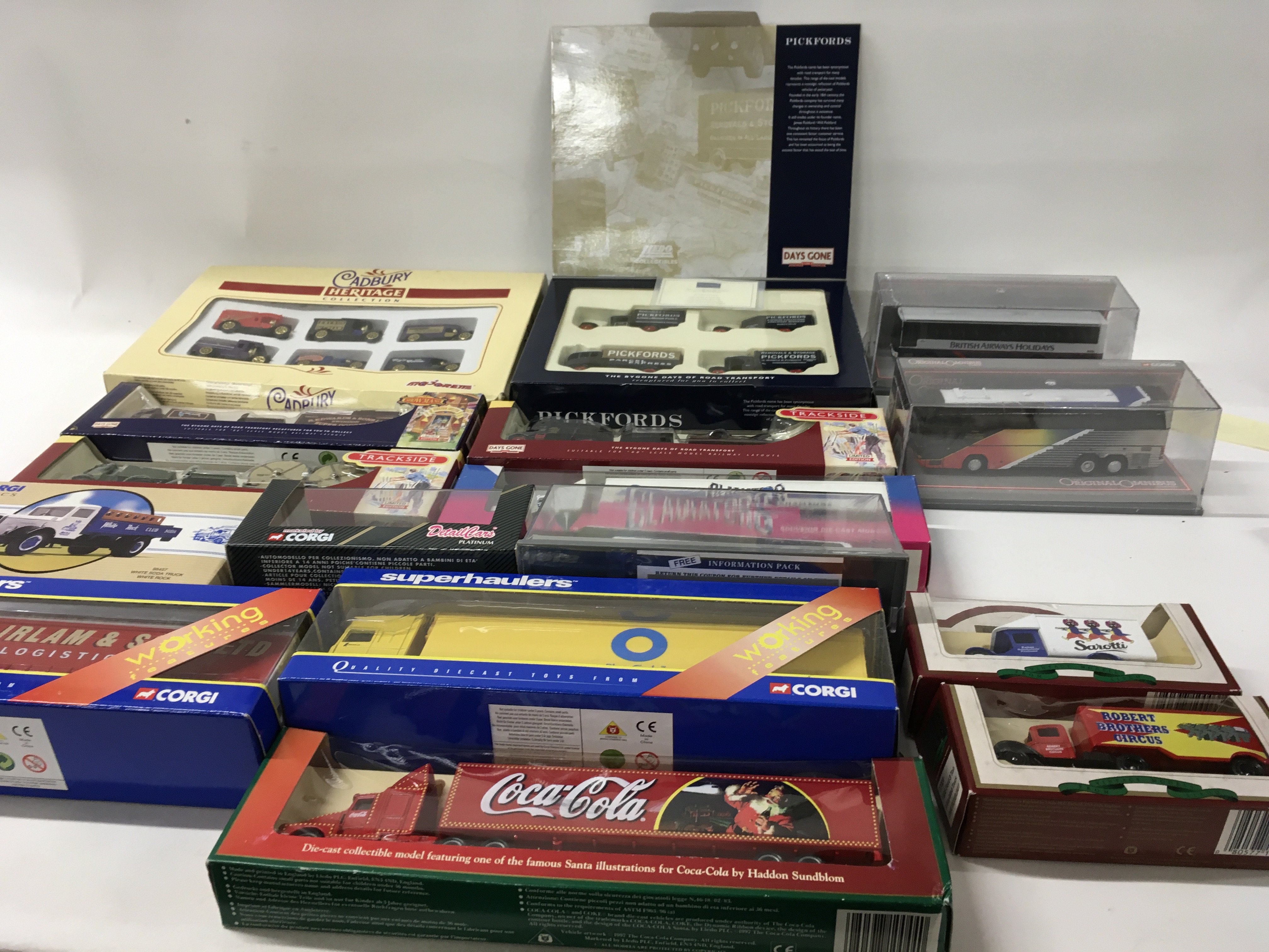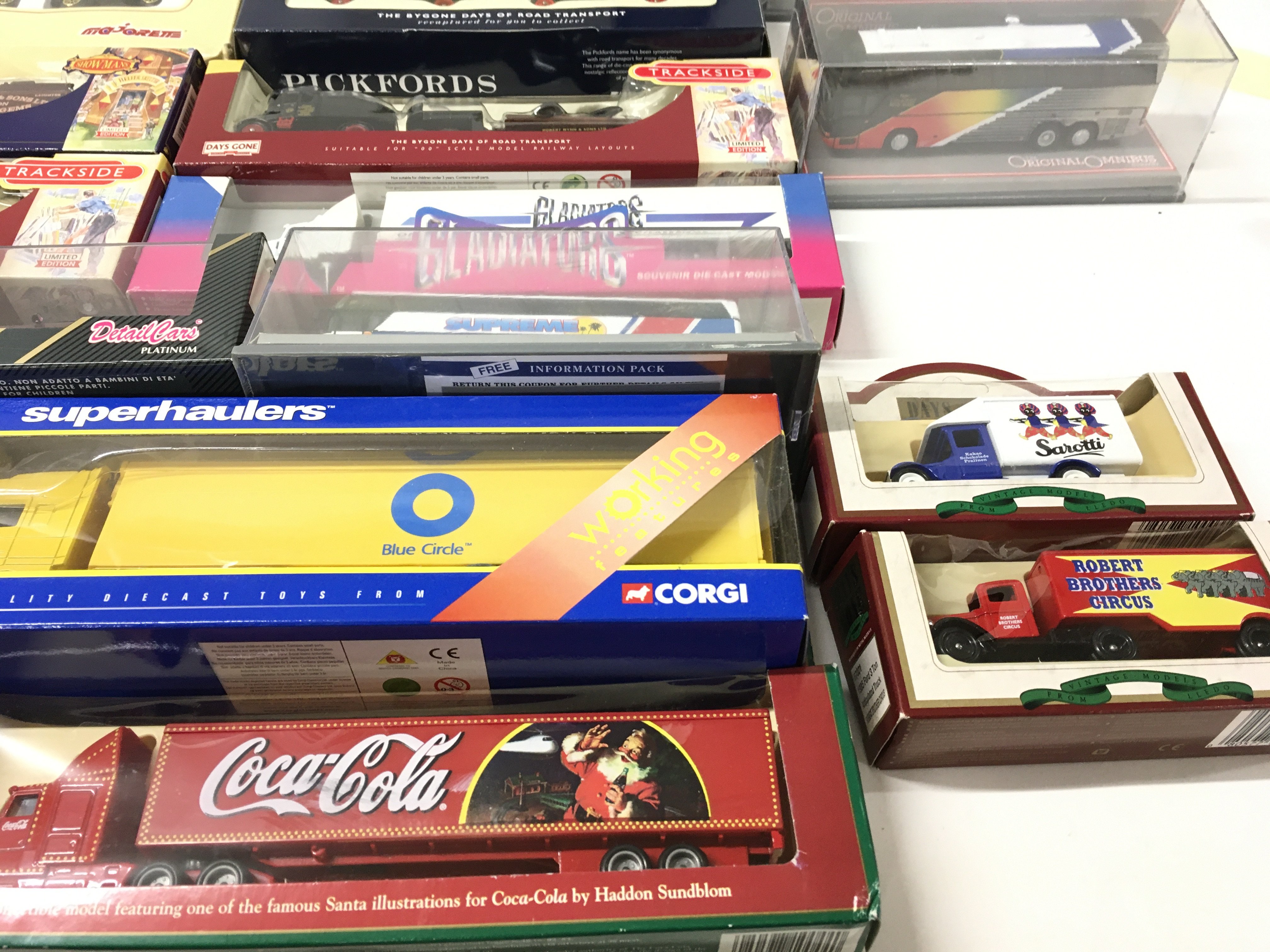 An assorted collection of model diecast vehicles manufactured by Corgi..Lledo etc. mainly a commercial group of vehicles. No reserve
