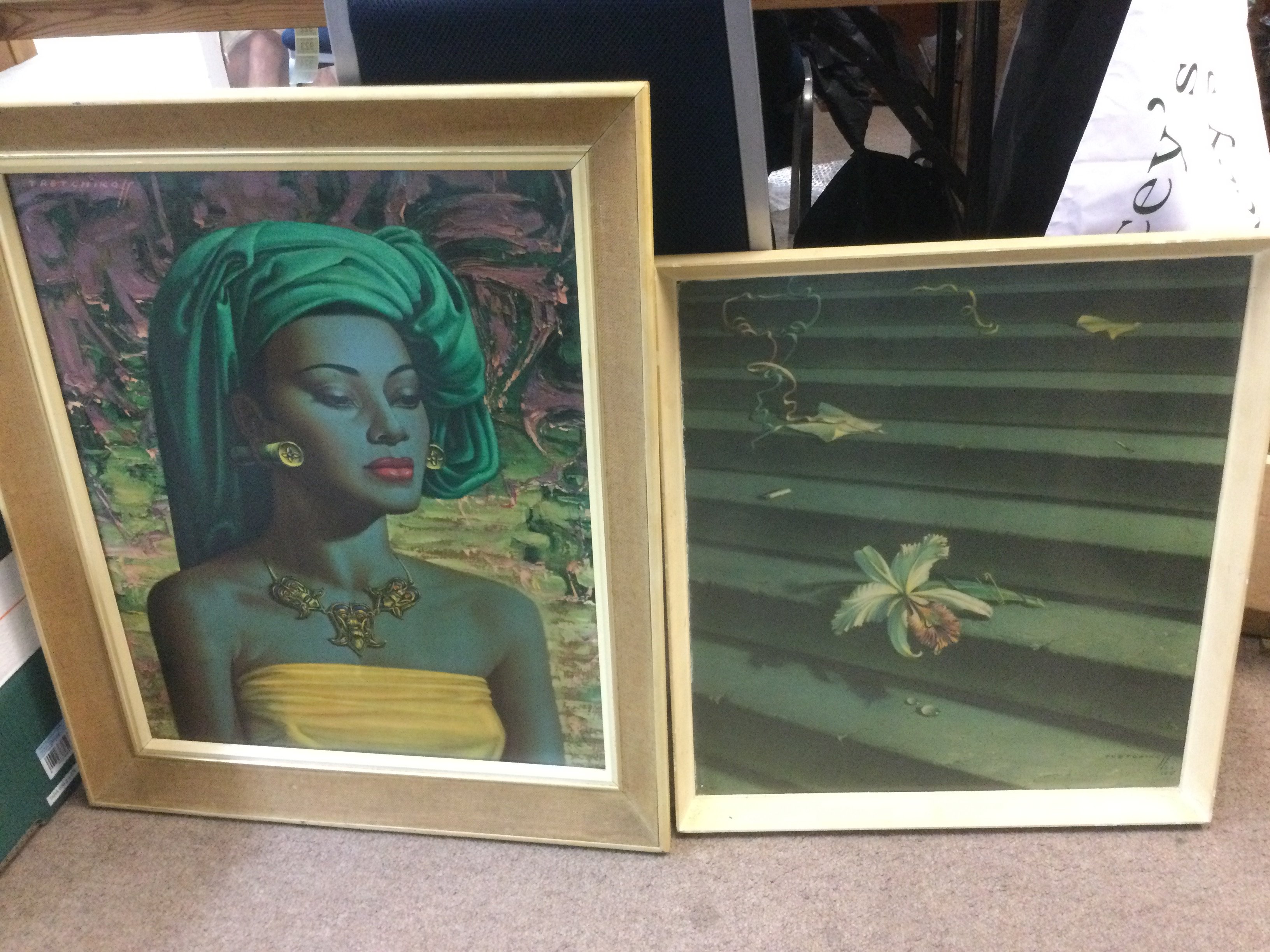 Two Tretchikoff prints comprising Balinese Girl, approx 62cm x 73cm and The Lost Orchid, approx 52cm x 58cm. Shipping category D.