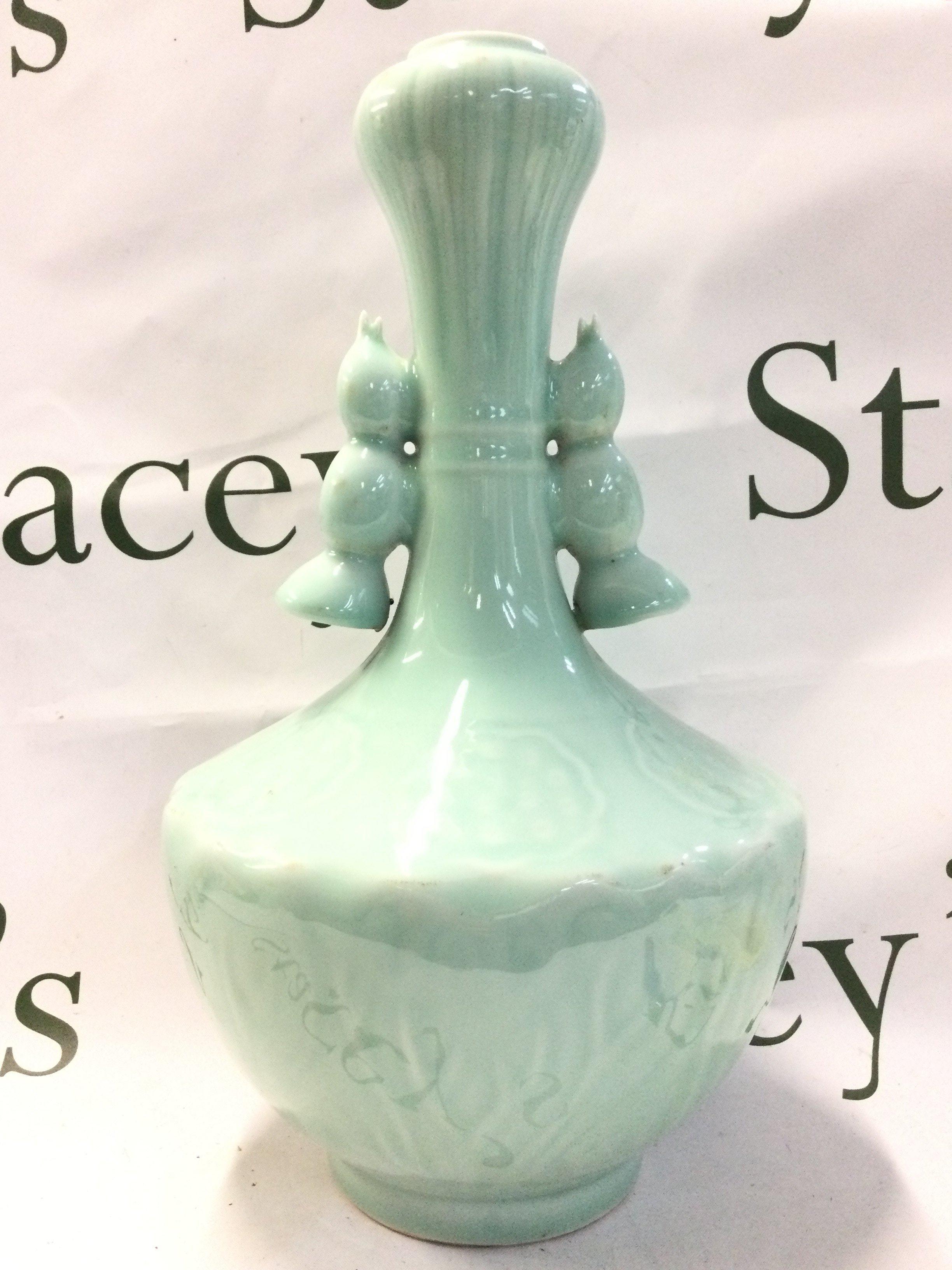 A Chinese porcelain cyan glaze Lotus root vase, this lot cannot be posted in house