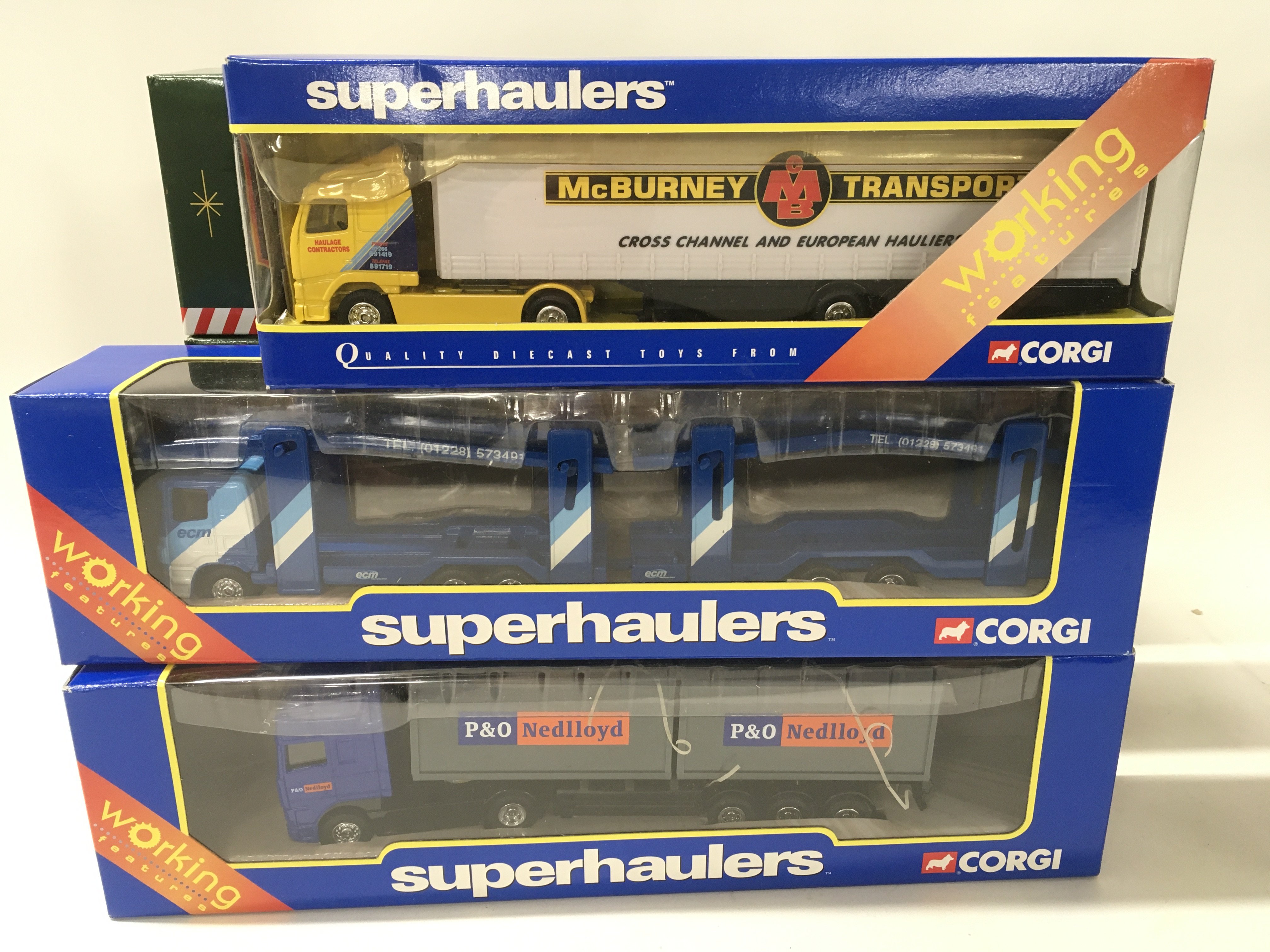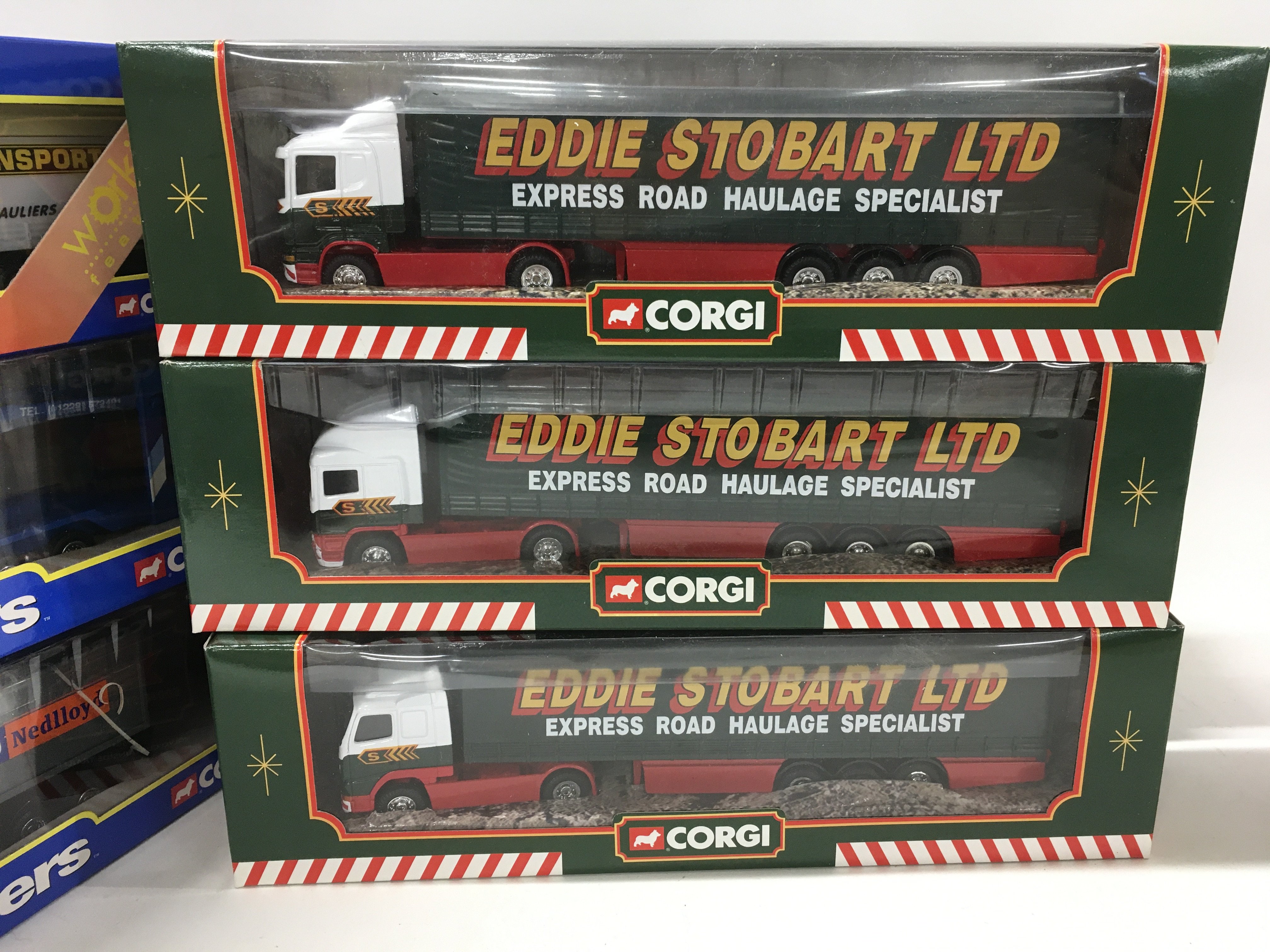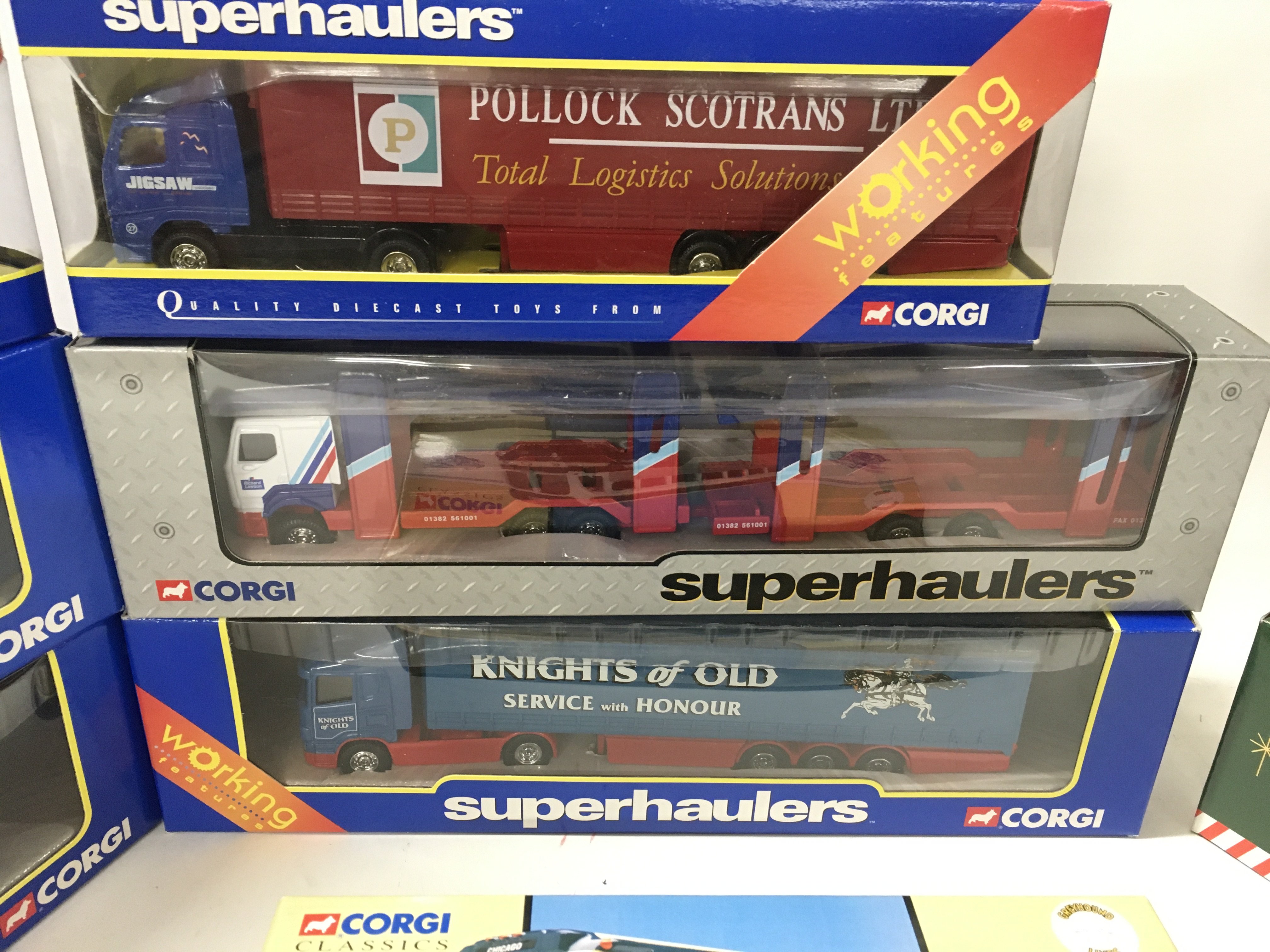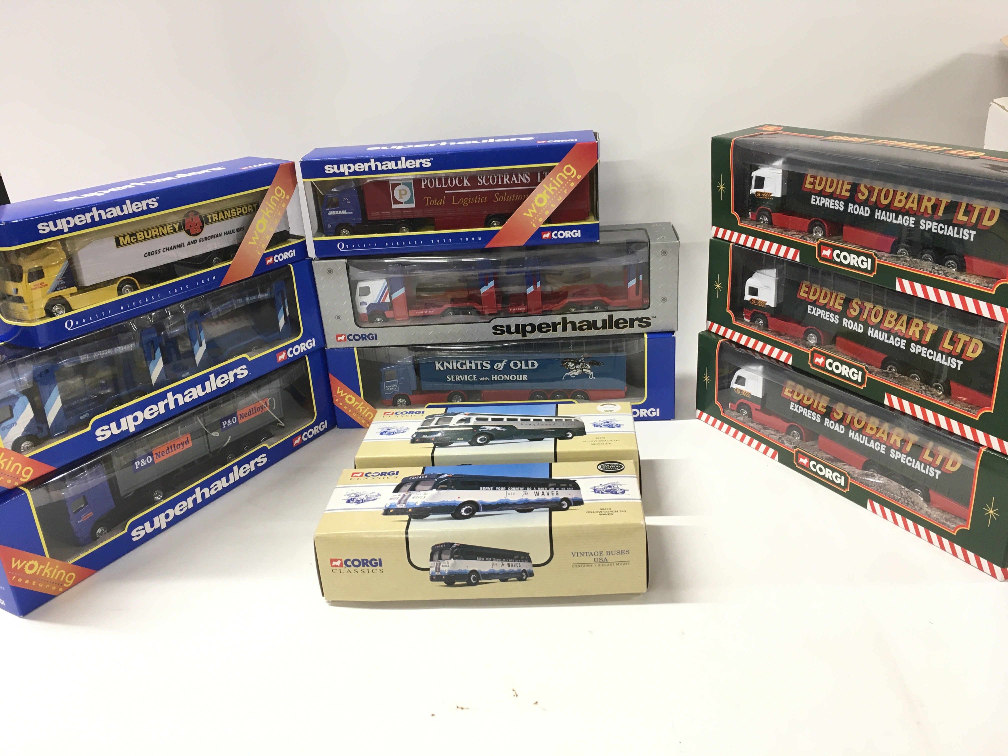 A boxed collection of 11 diecast commercial vehicles manufactured by Corgi in the Superhaulers series..plus Eddie Stobart and 2 coaches in the classics range. No reserve (2)