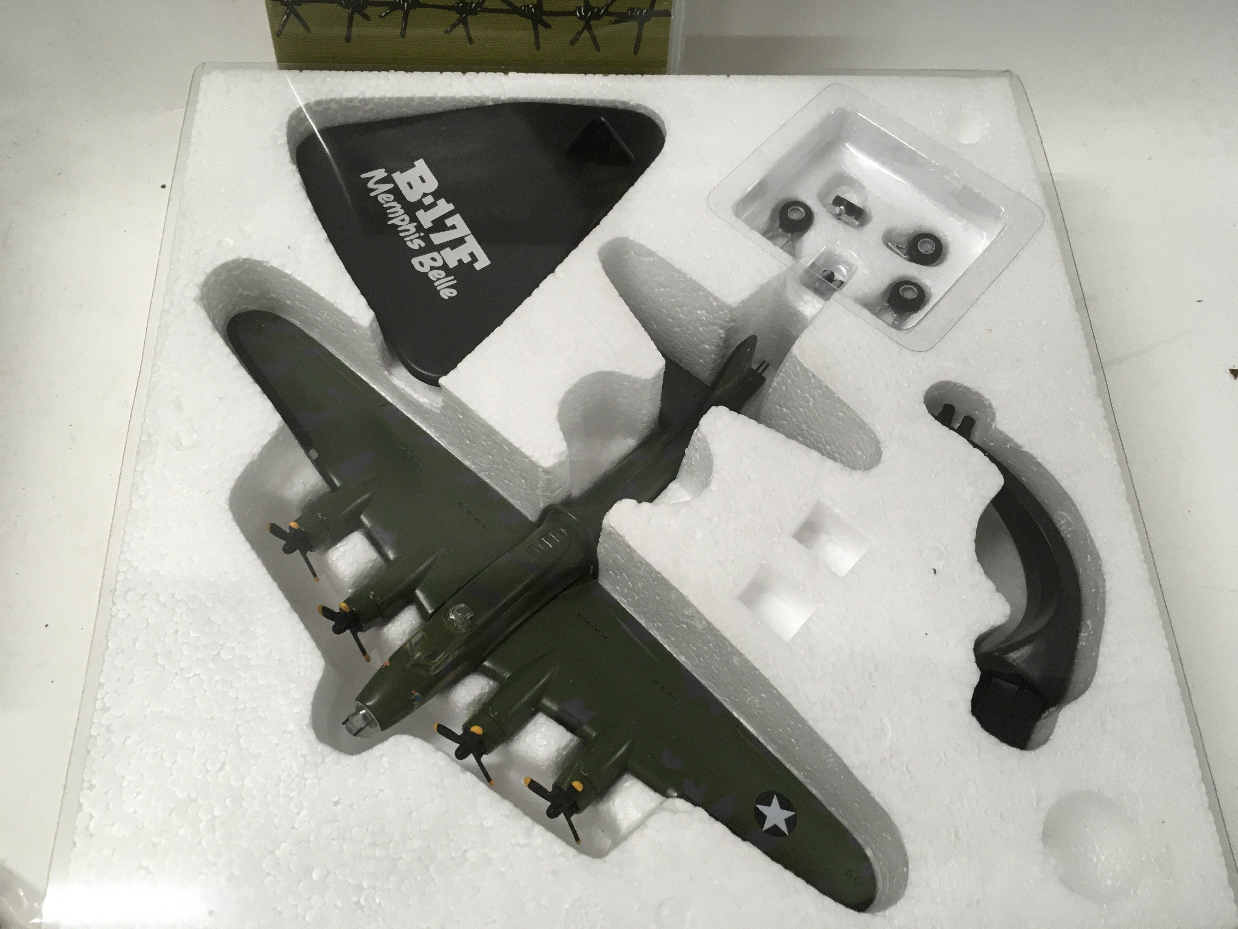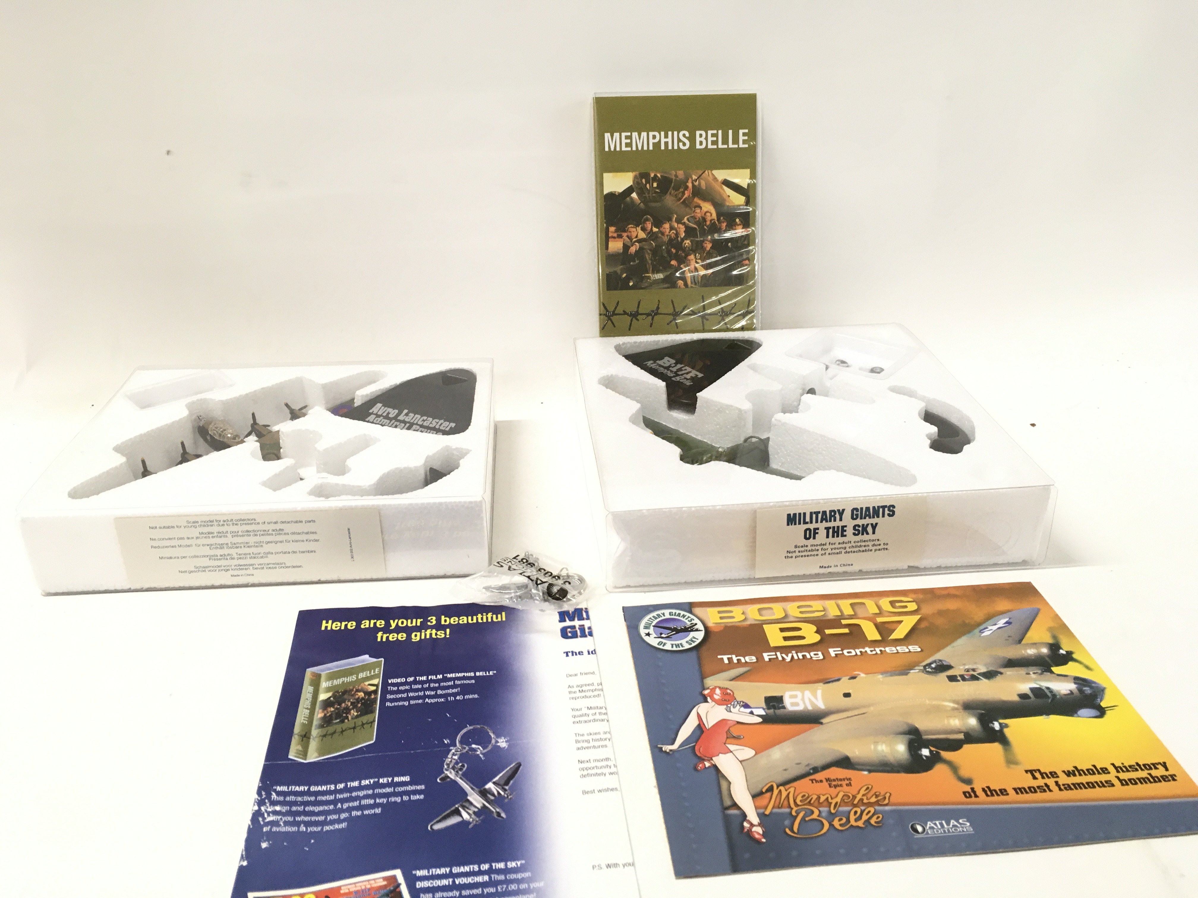 Two model Aircraft by Atlas featuring 2 of the most well known aircraft from World War 2. Includes An Avro Lancaster named Admiral Prune which was Guy Gibsons .. also a B17 Memphis Belle know for dropping the nuclear bomb . This includes a vhs video and key ring. No reserve