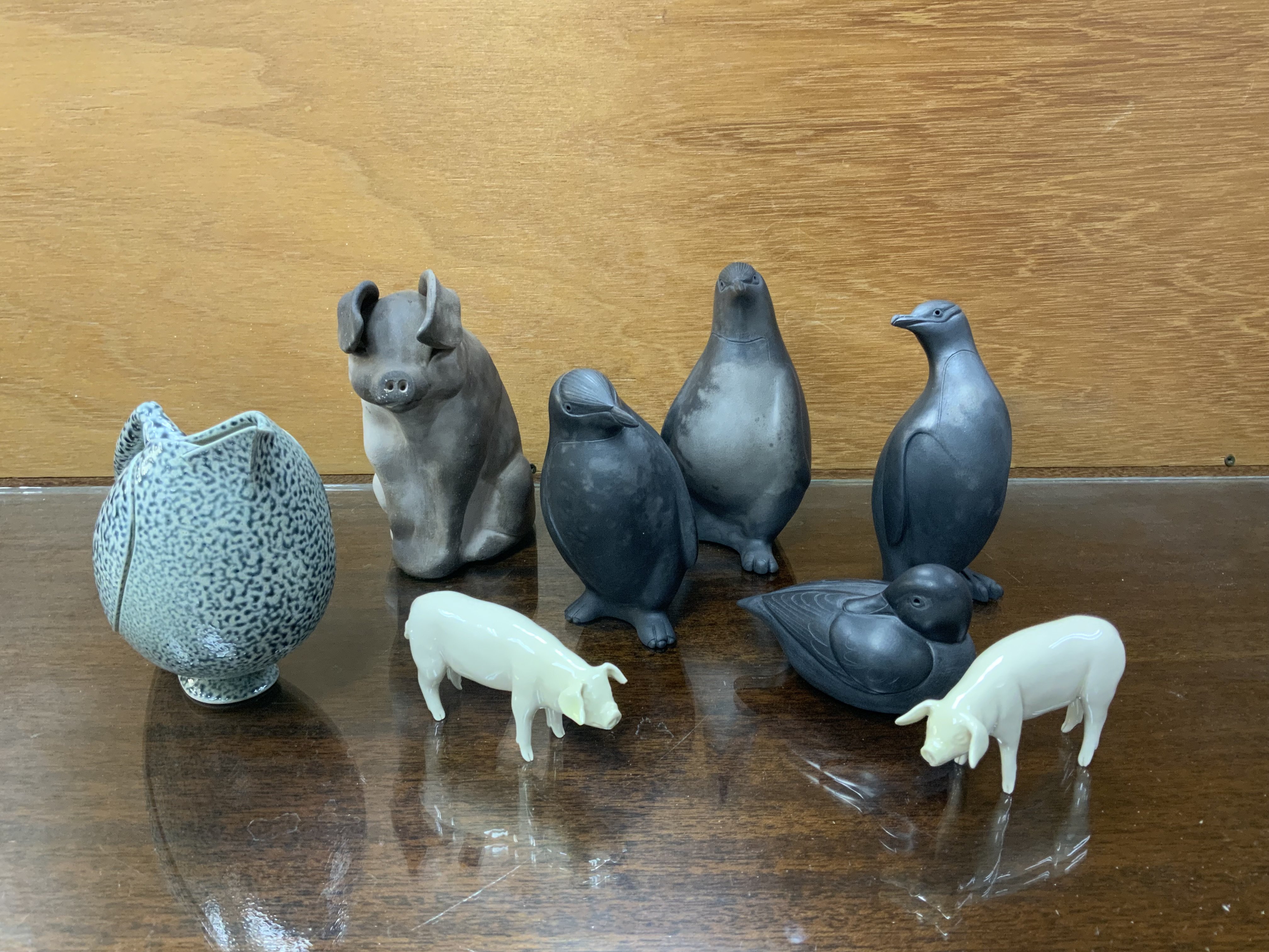 a small collection of studio ceramic animals including Karen Lainson seated pig. (8)