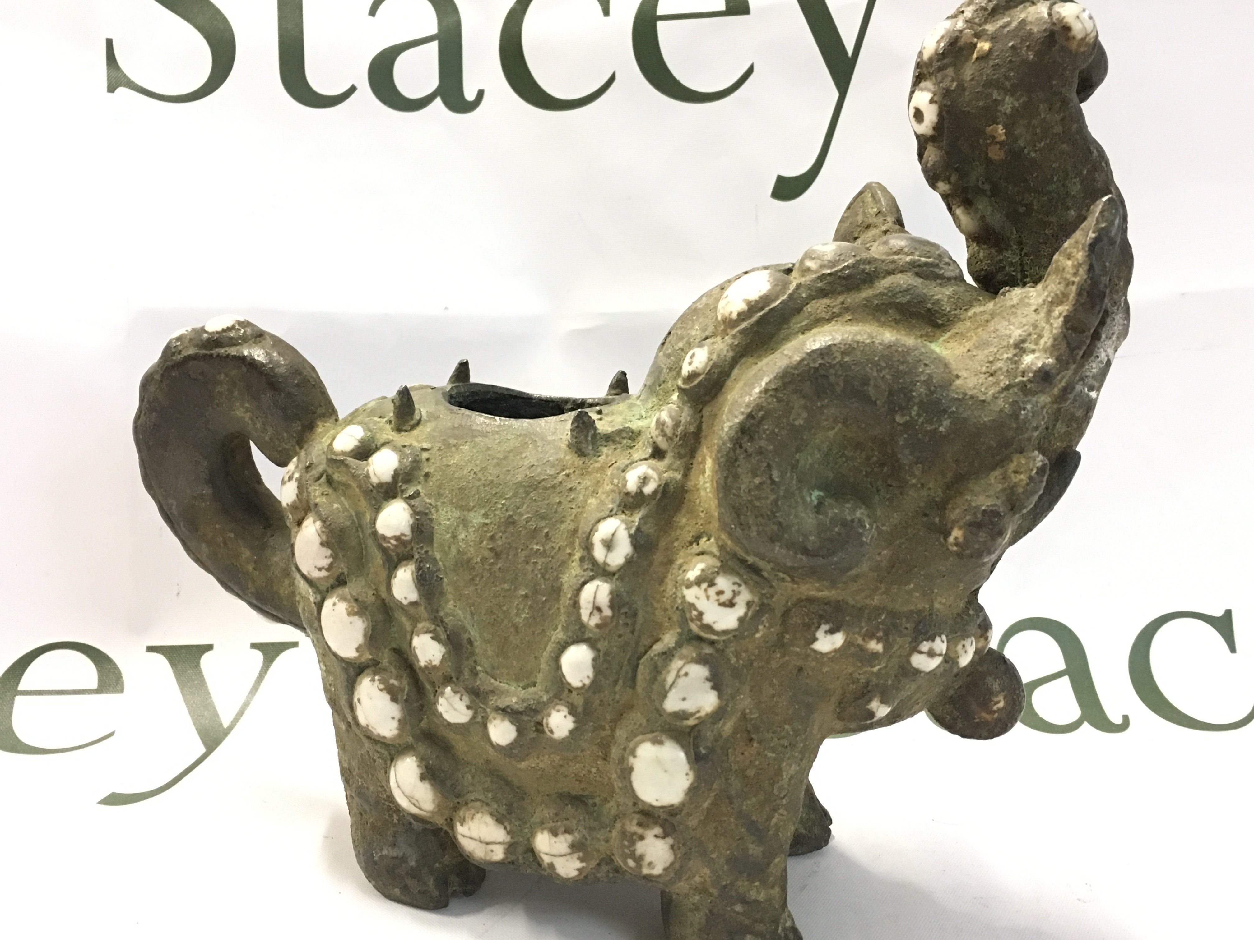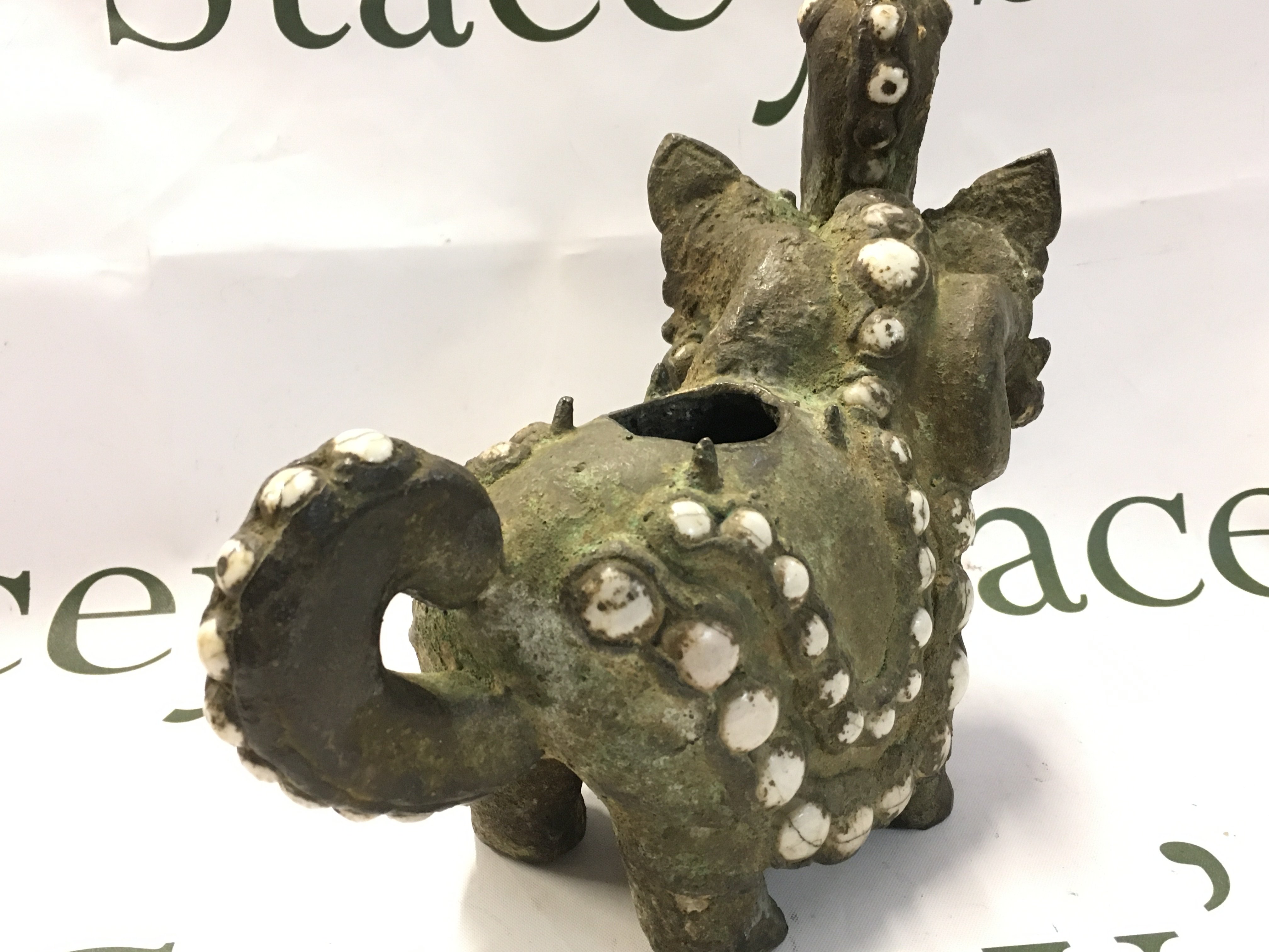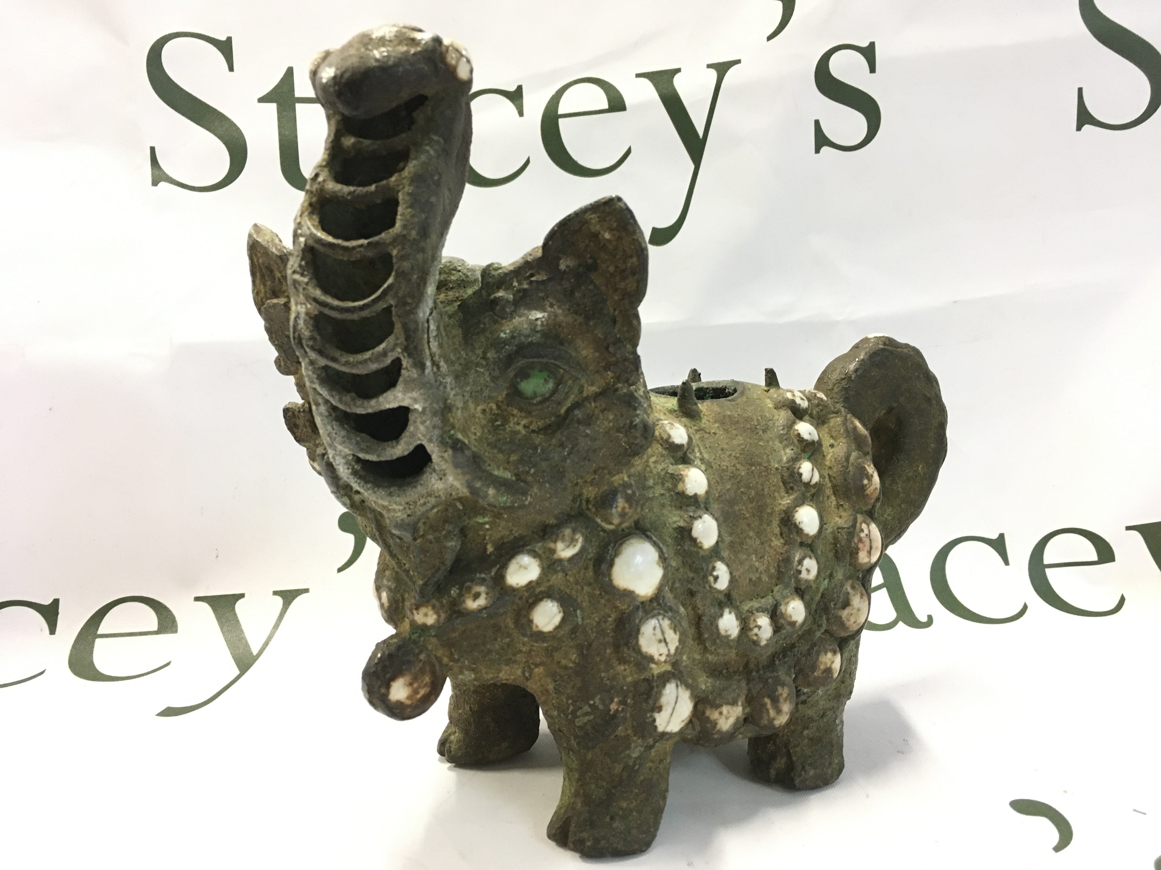 An Asian elephant bronze censer , 19cm tall . Postage category B
