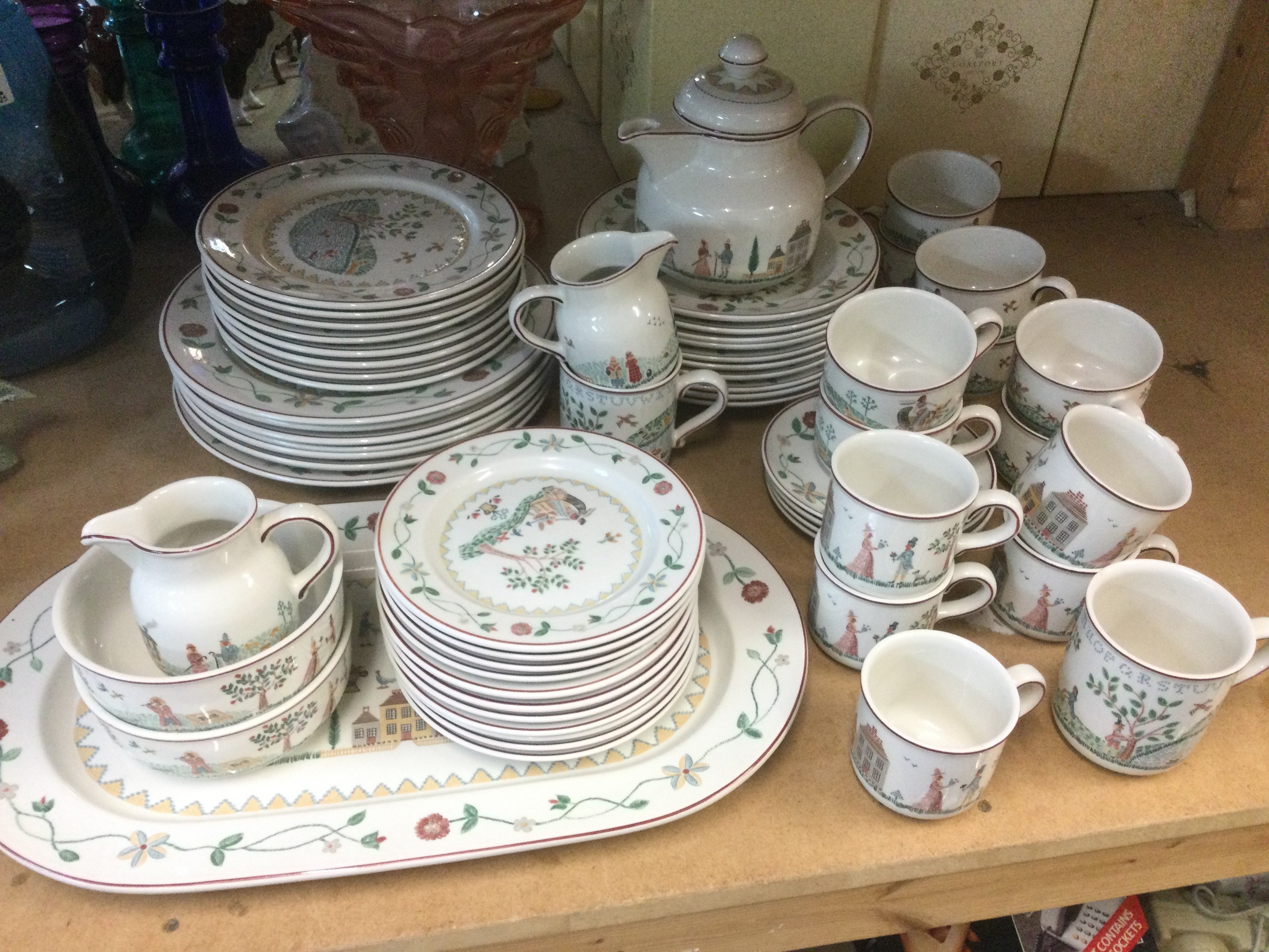 A Villeroy & Boxh dinner service in American Sampler pattern. Shipping category D.