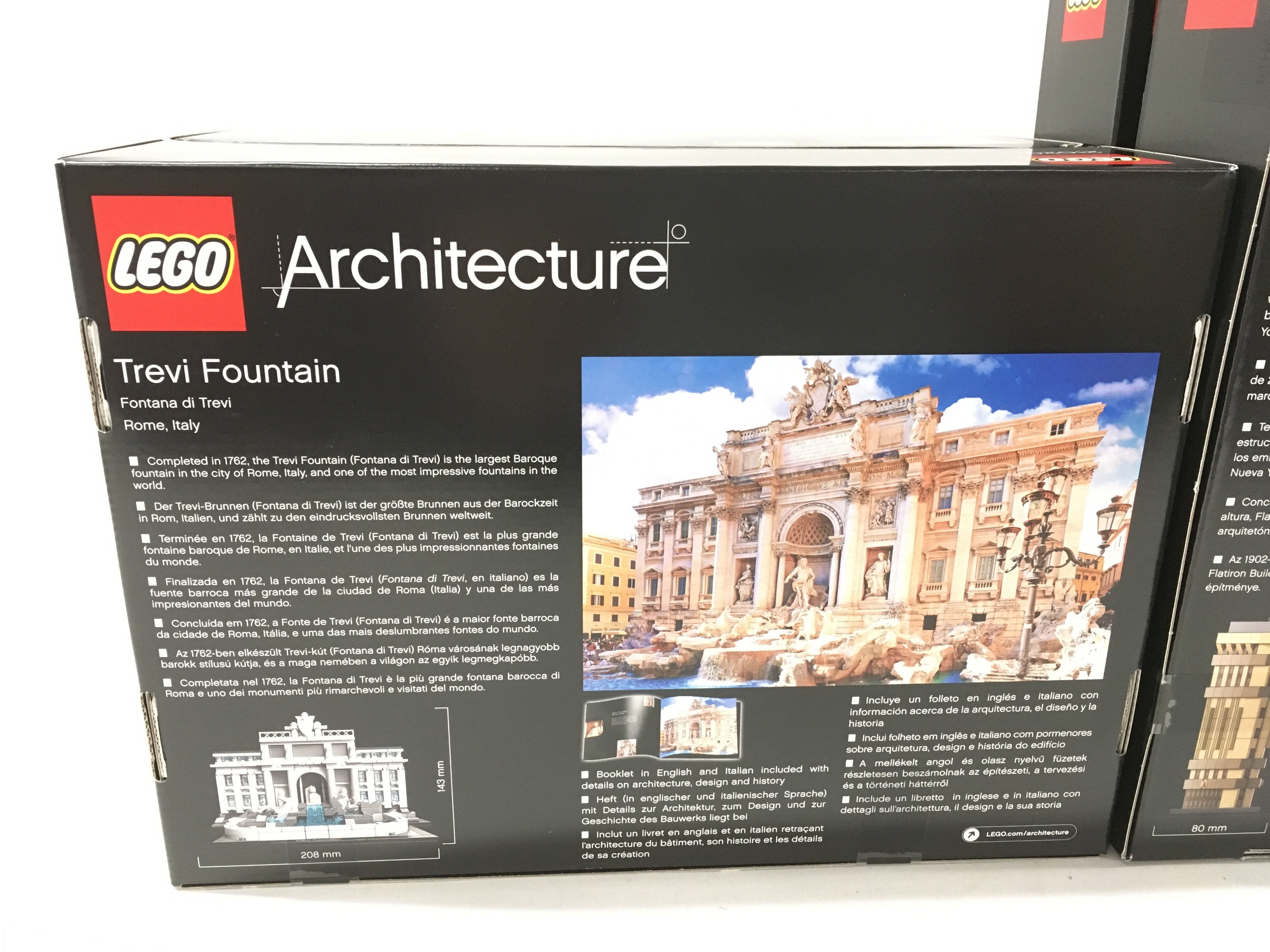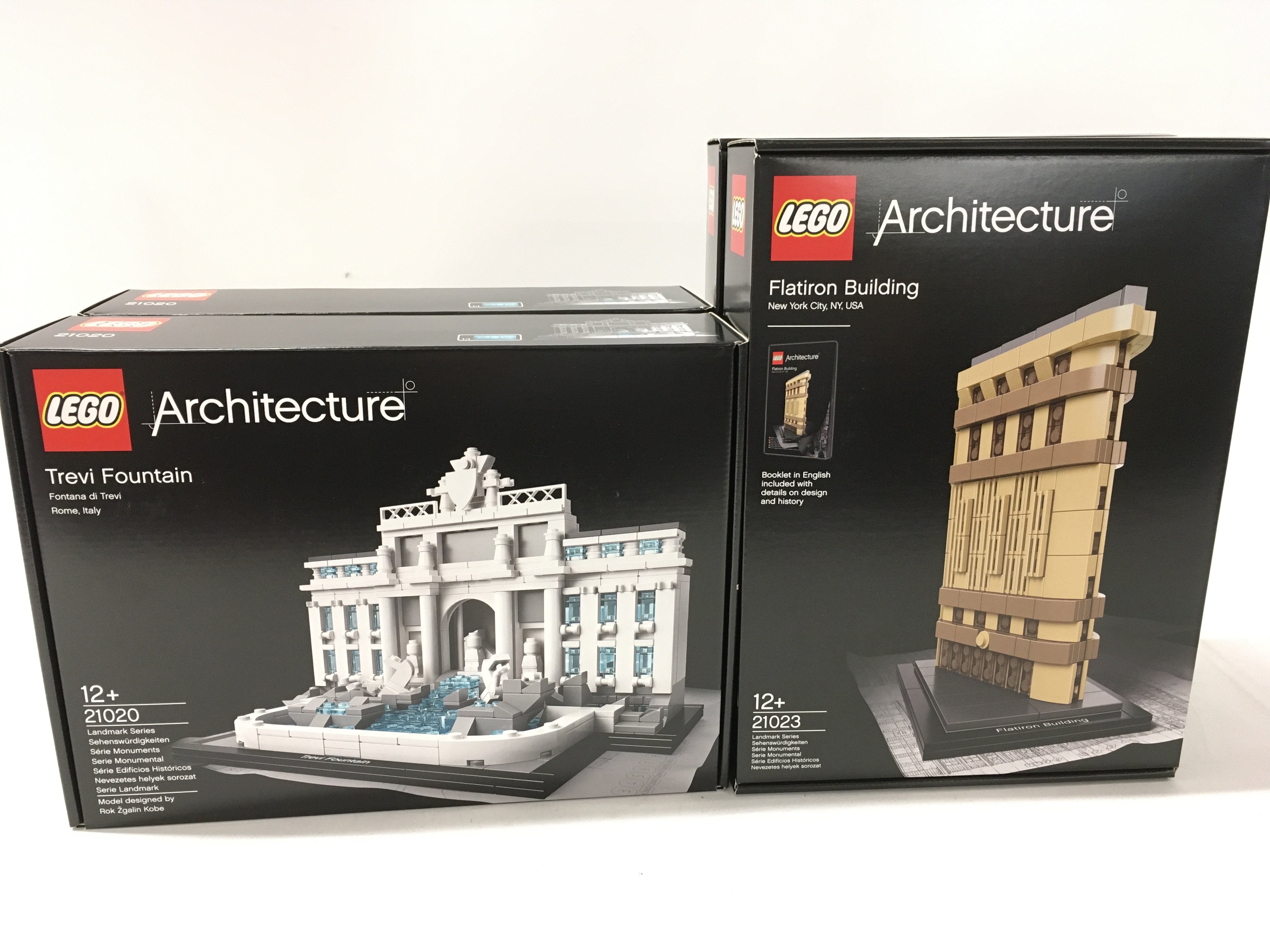 A collection of of 3x sealed boxed Lego Architecture sets 2x #21023 Flatiron Building. Plus #21020 Trevi Fountain. No reserve